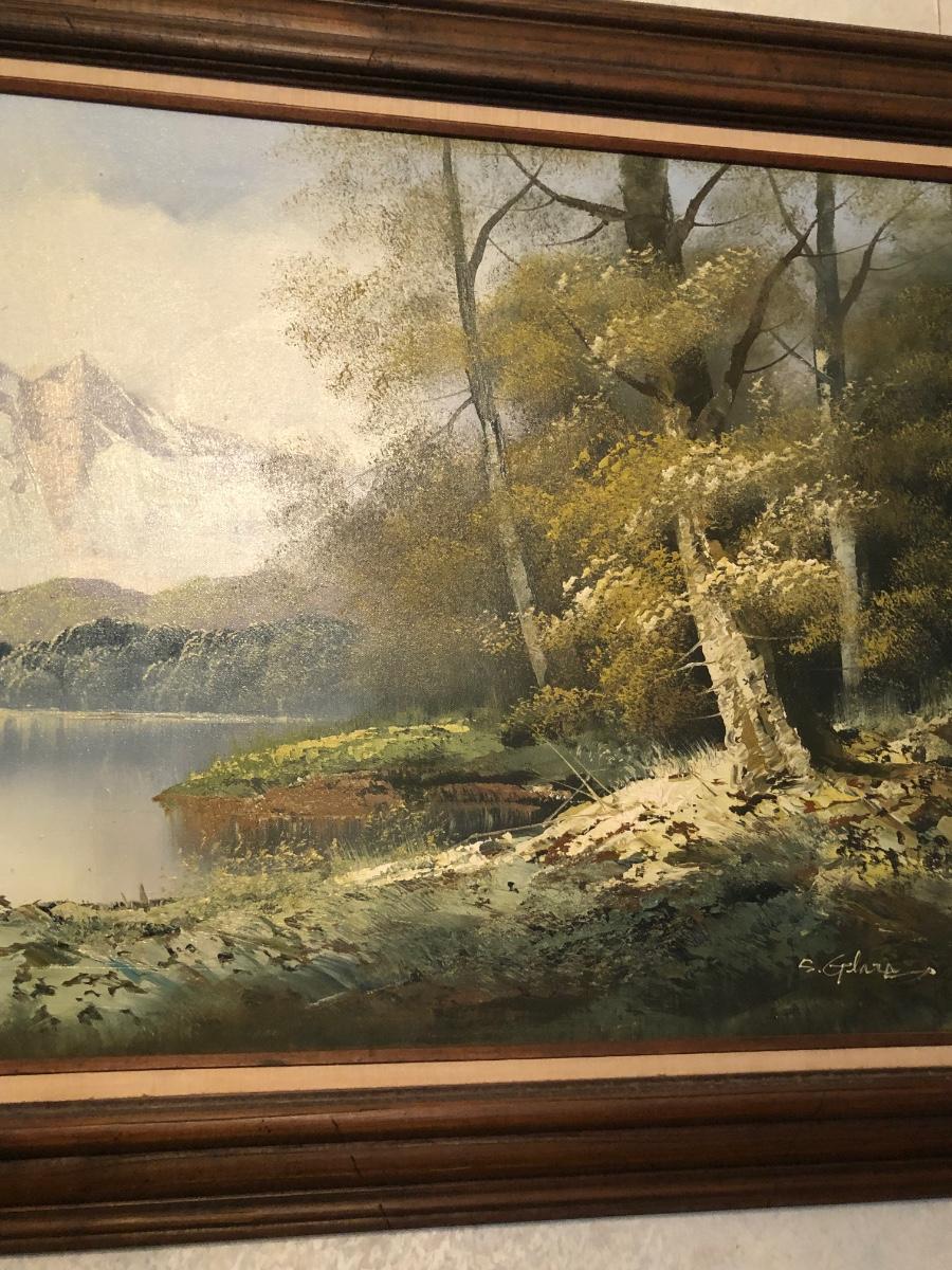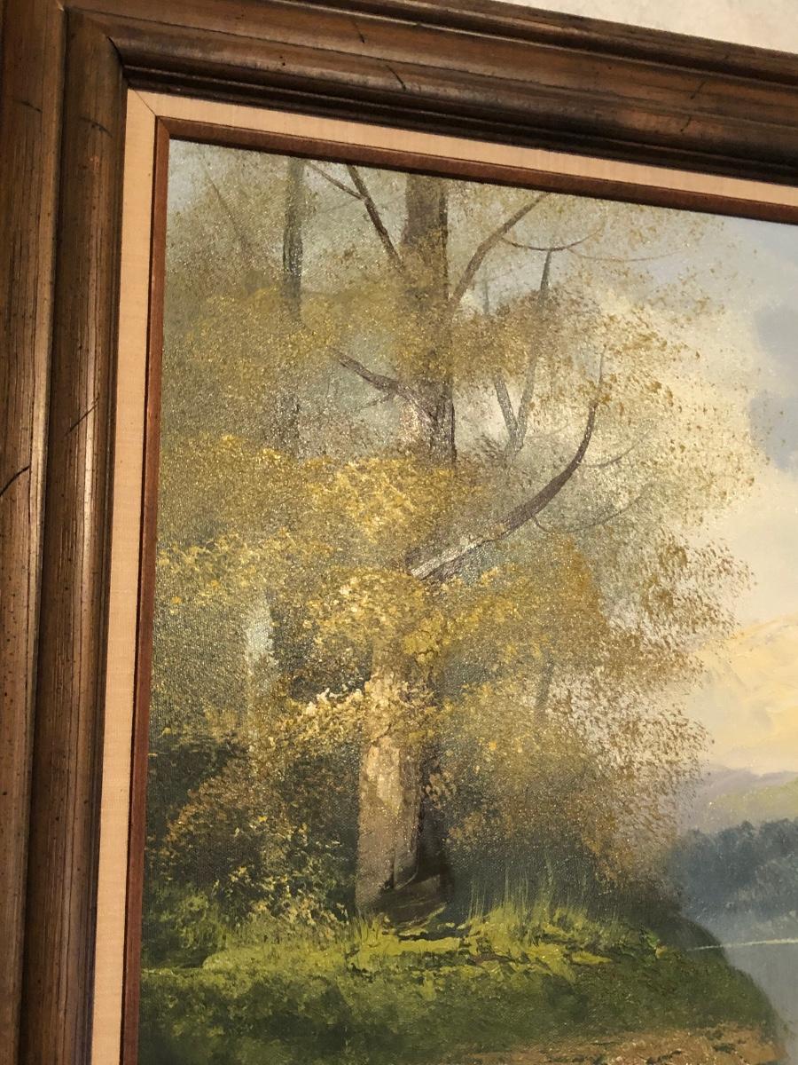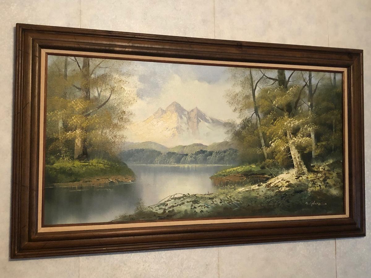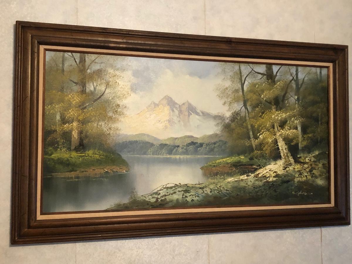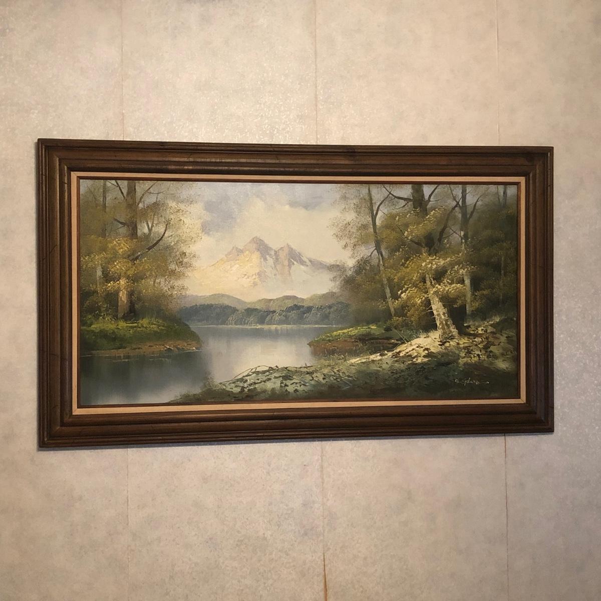 LOT 41W: Framed & Signed Mountain River Woodland Landscape Painting