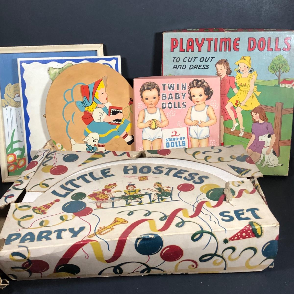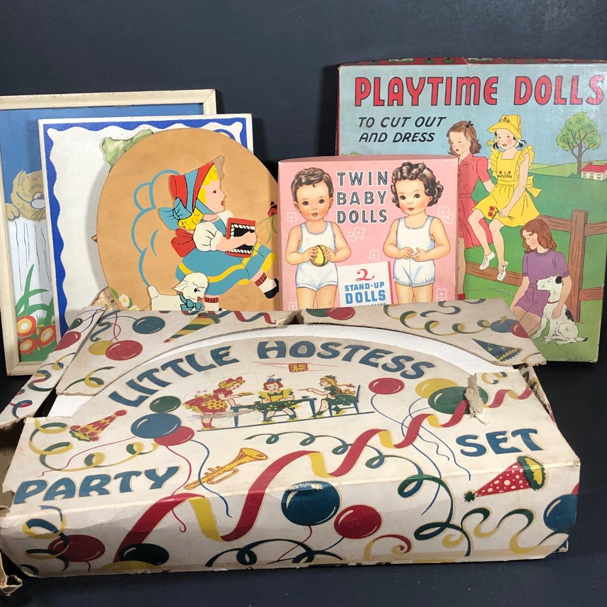 LOT 47L: Vintage Little Lady Collection - Twin Baby & Playtime Paper Dolls, Little Hostess Party Set (Box Damaged) & Decor