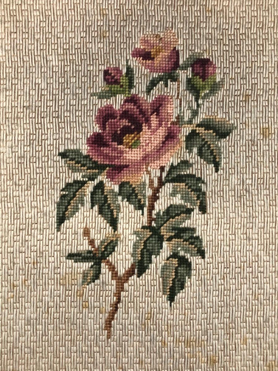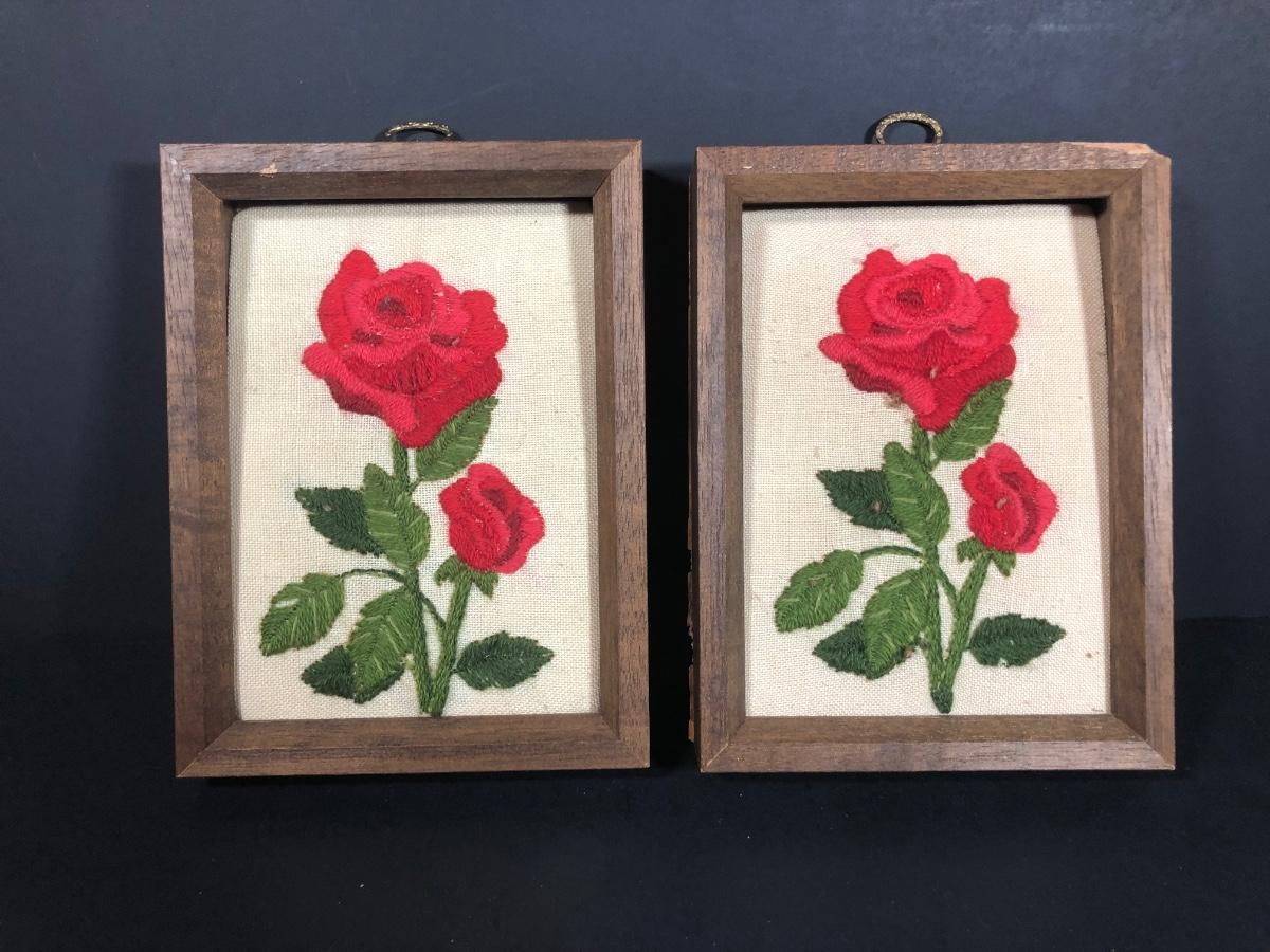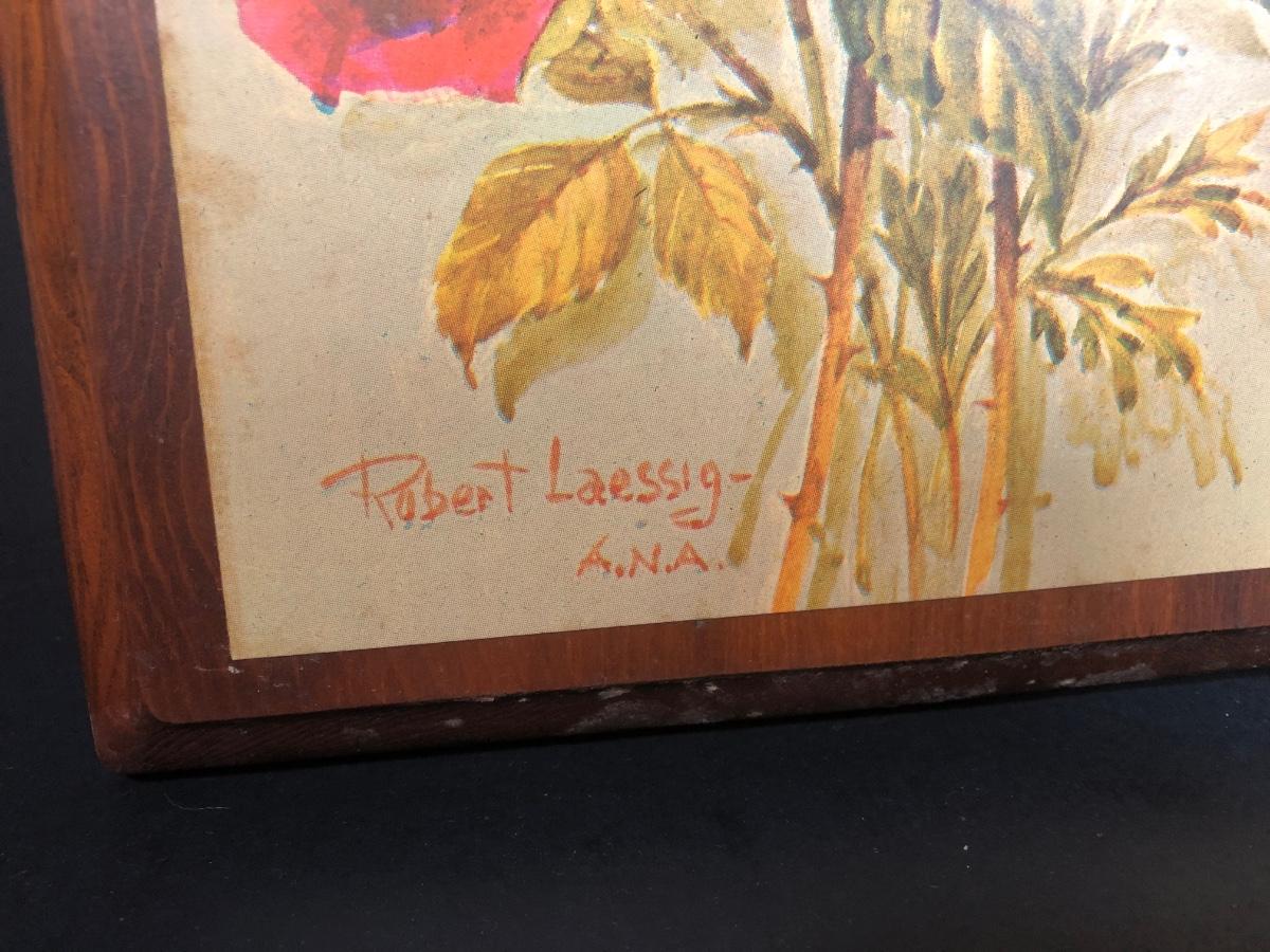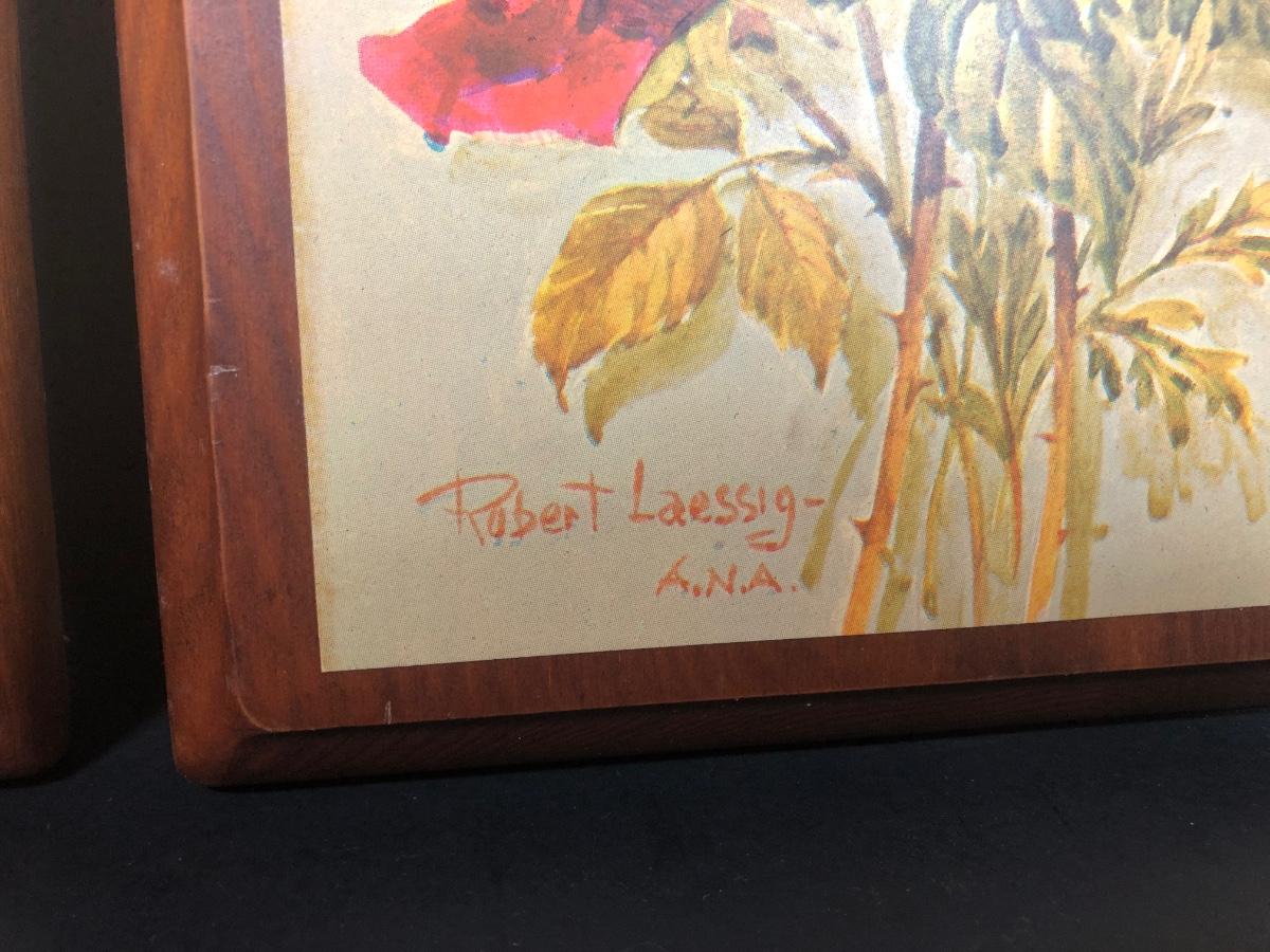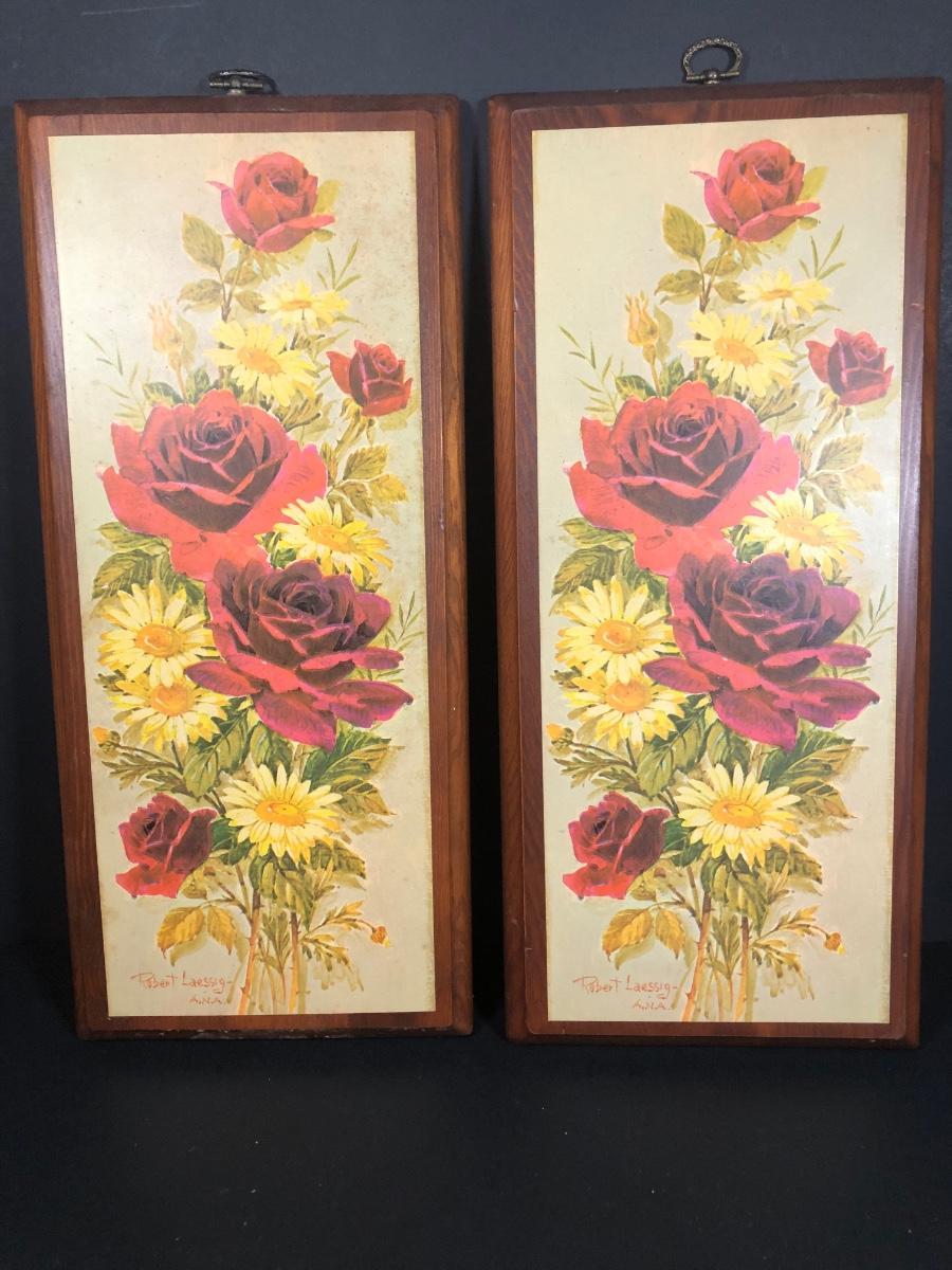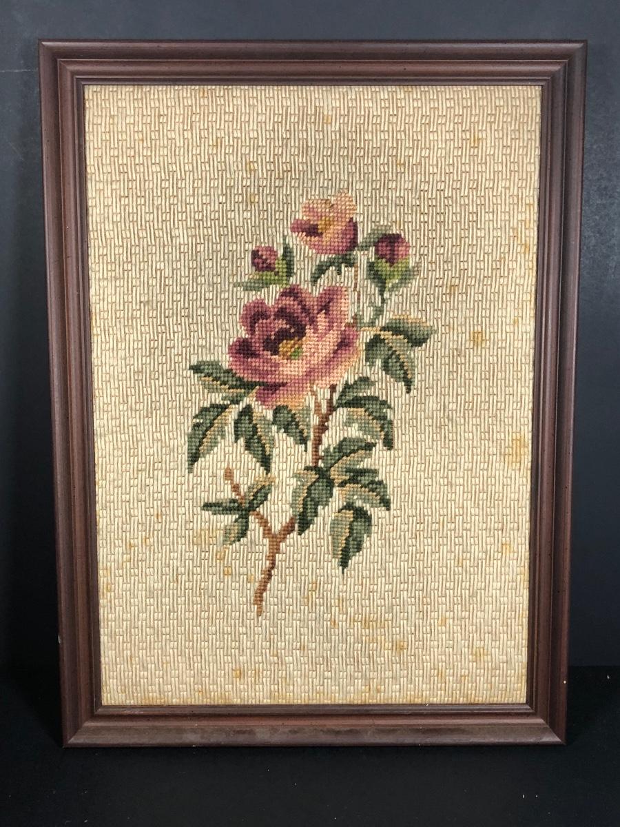 LOT 48L: Vintage Floral Wall Decor - Embroidery, Needlepoint & Wood Panels signed Robert Laessig