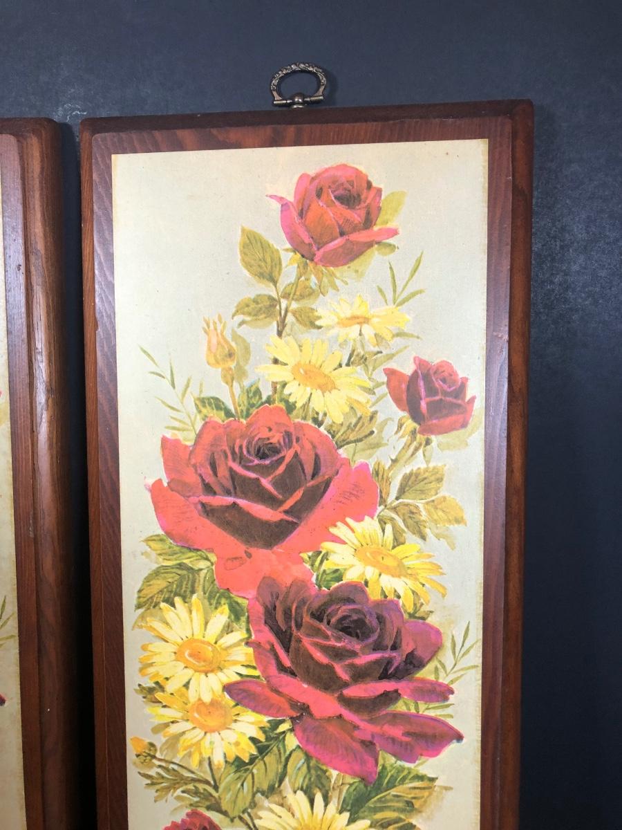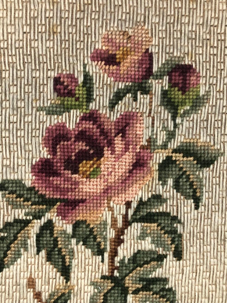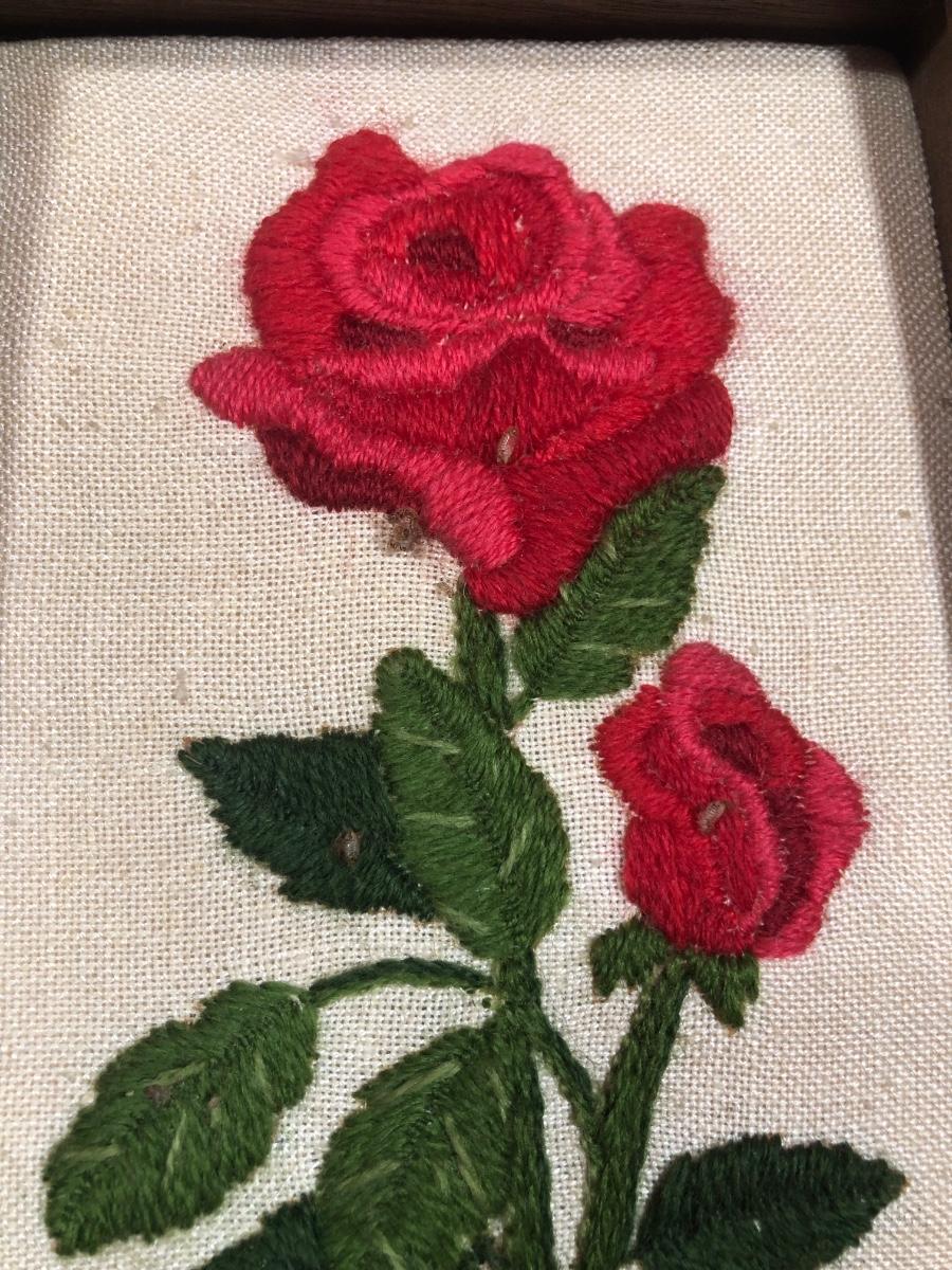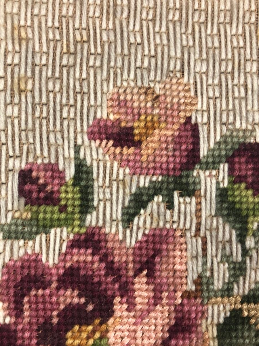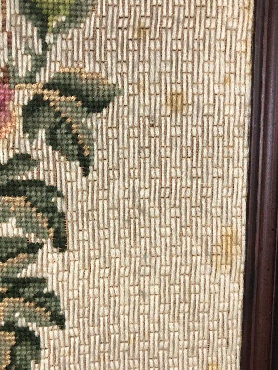 LOT 48L: Vintage Floral Wall Decor - Embroidery, Needlepoint & Wood Panels signed Robert Laessig