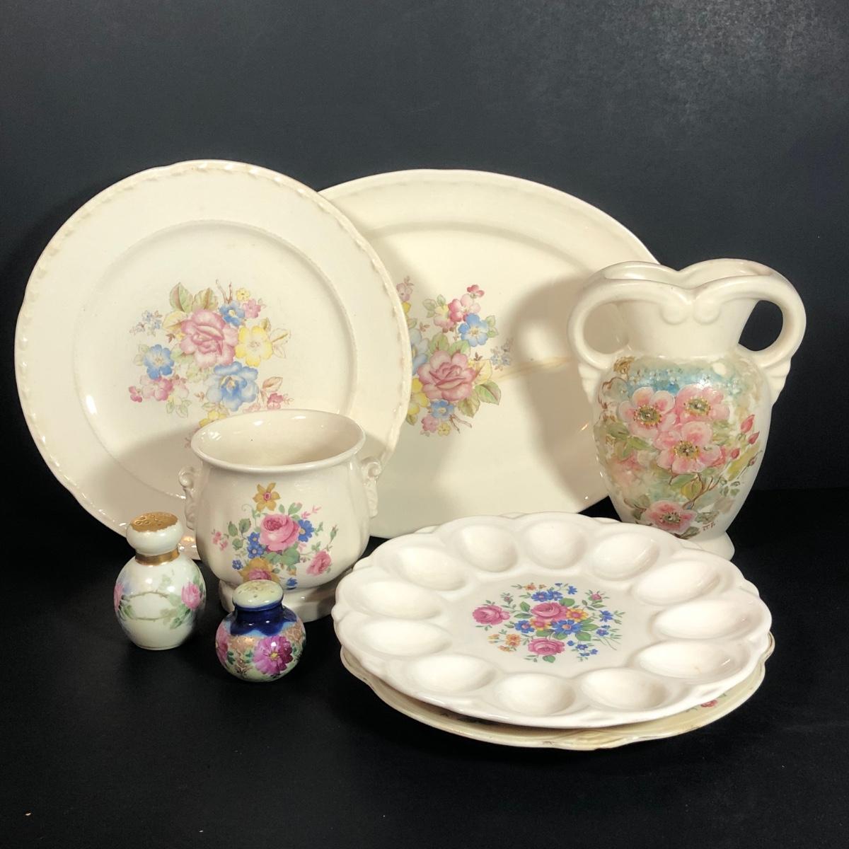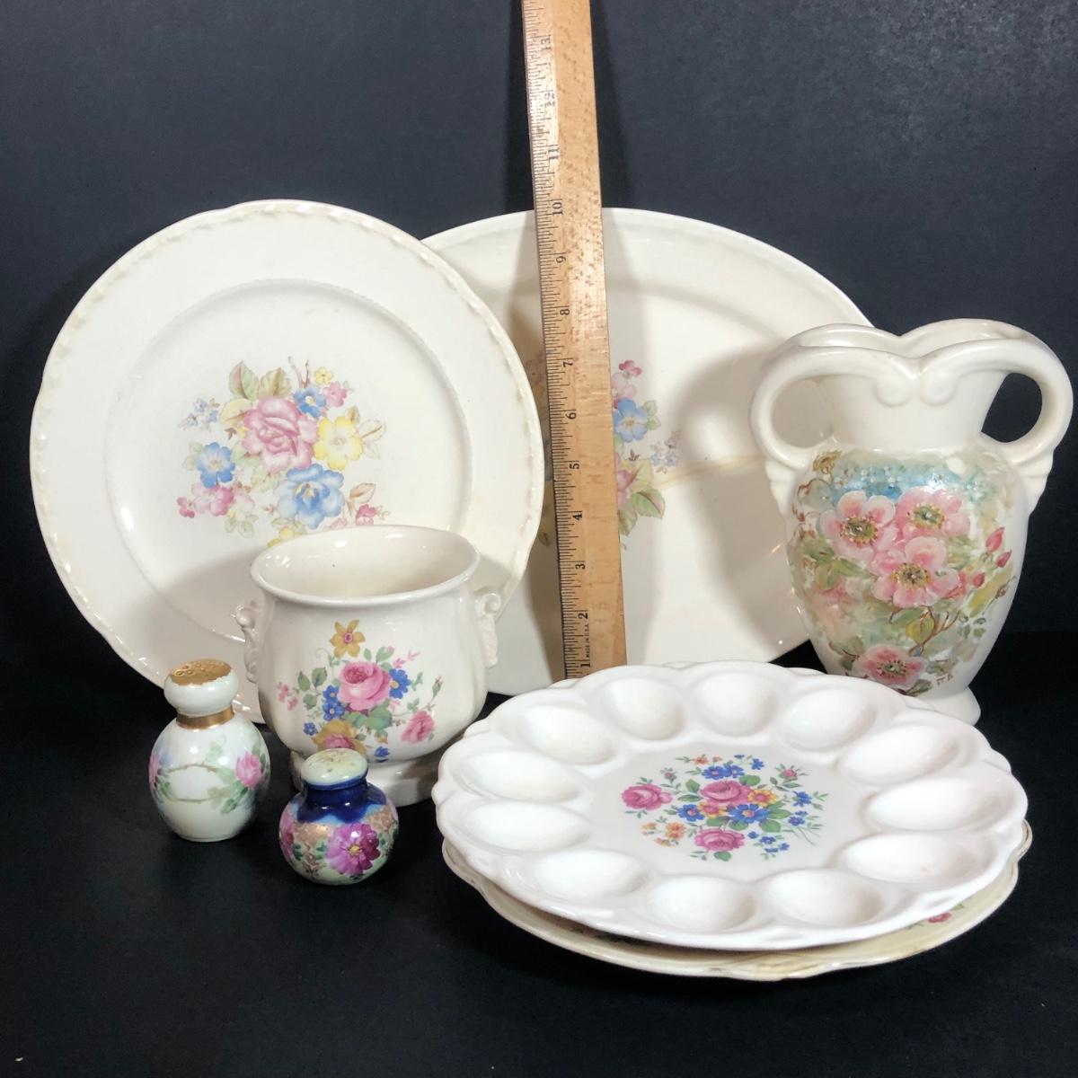 LOT 49L: Vintage Floral China - Homer Laughlin, Crooksville, Royal Copley, USA Pottery, E&R American Artware & Unmarked