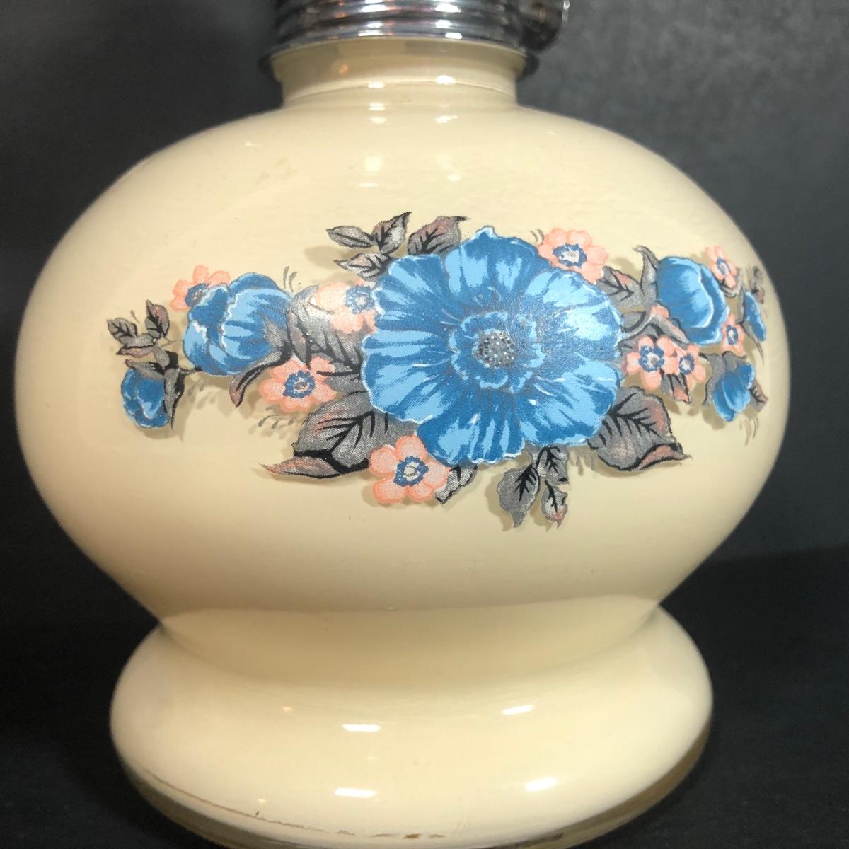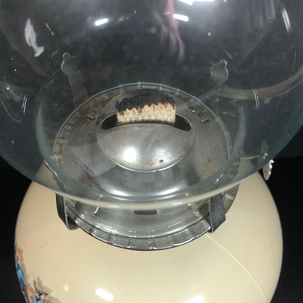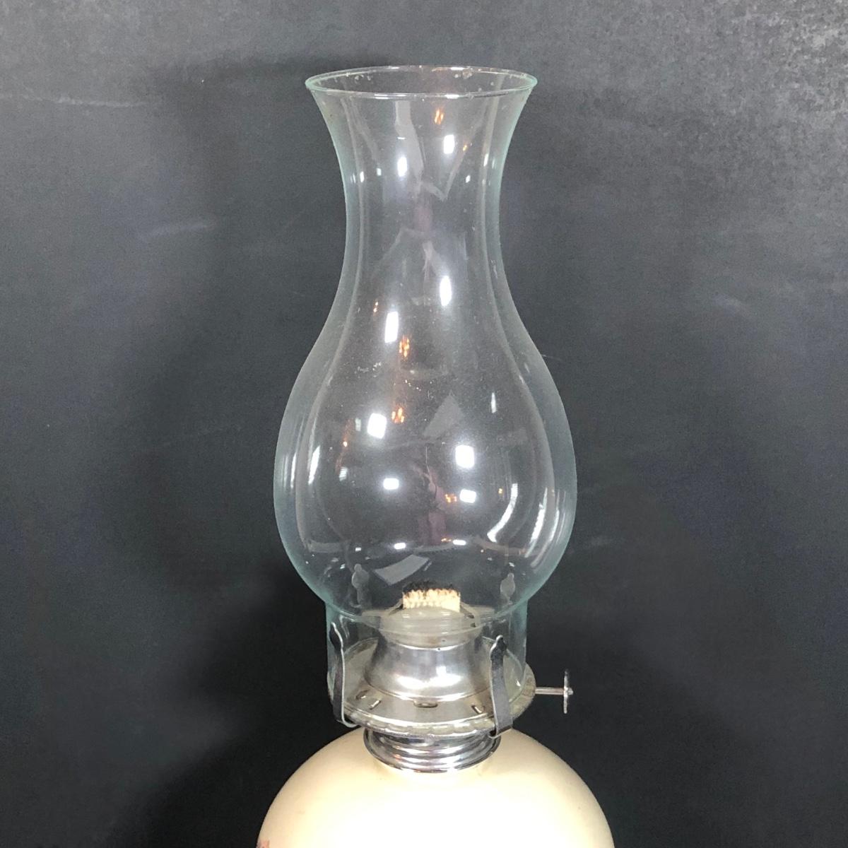 LOT 58L: Vintage Lamplight Farms White Floral Print Glass Oil Lamp