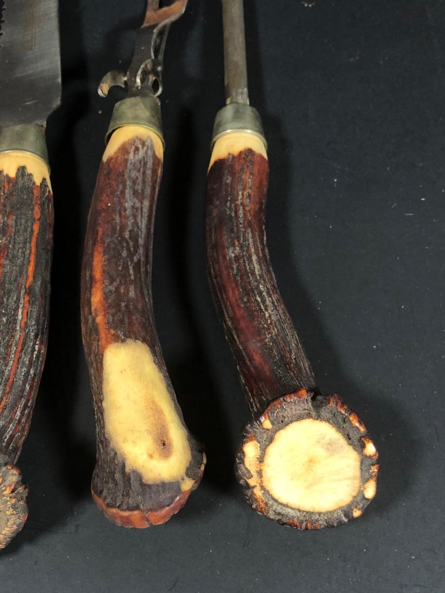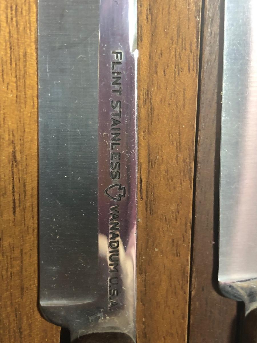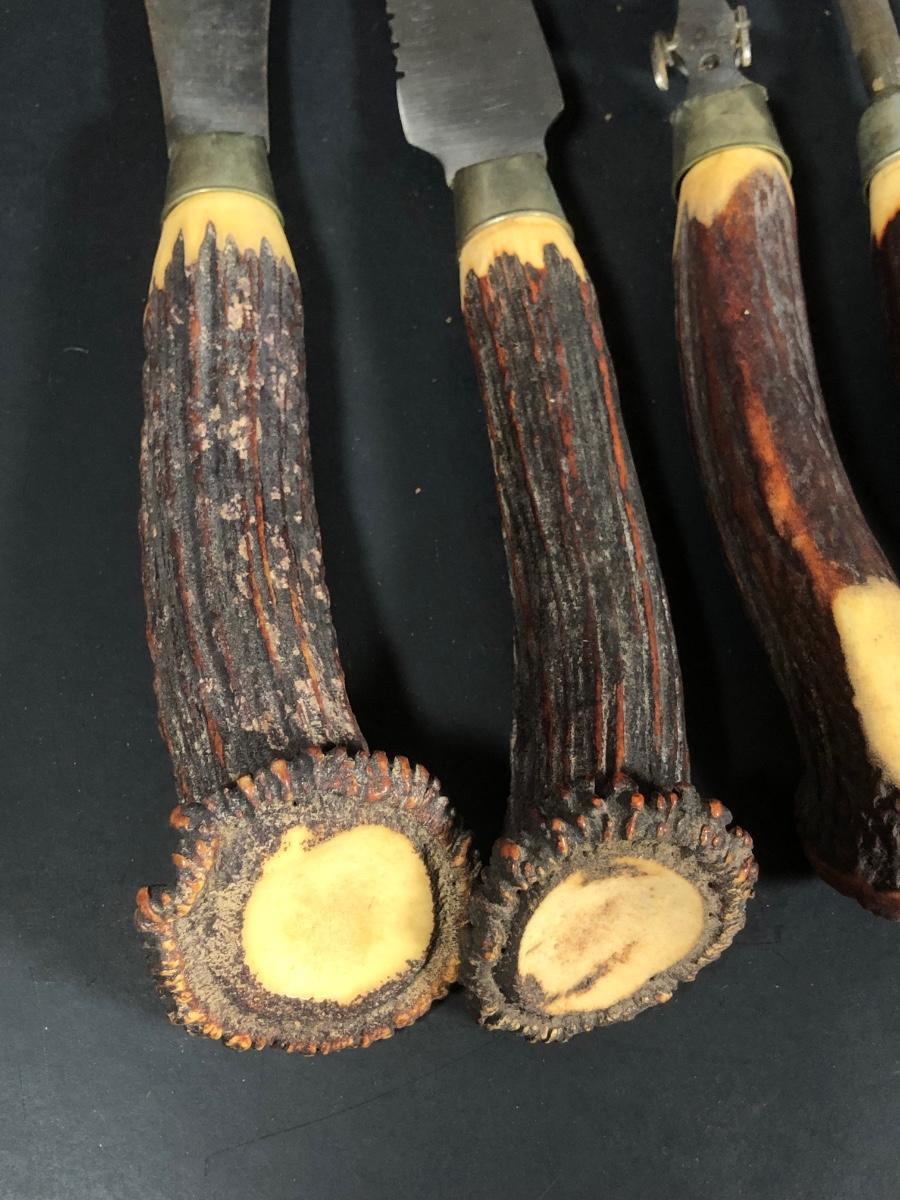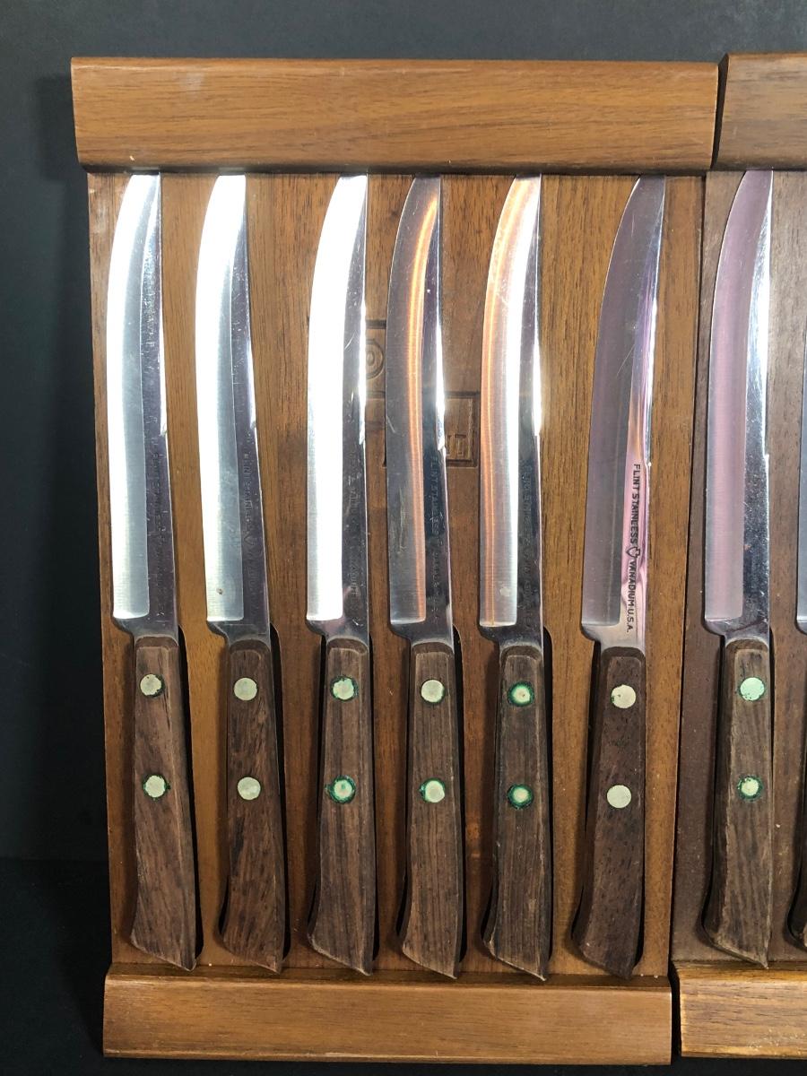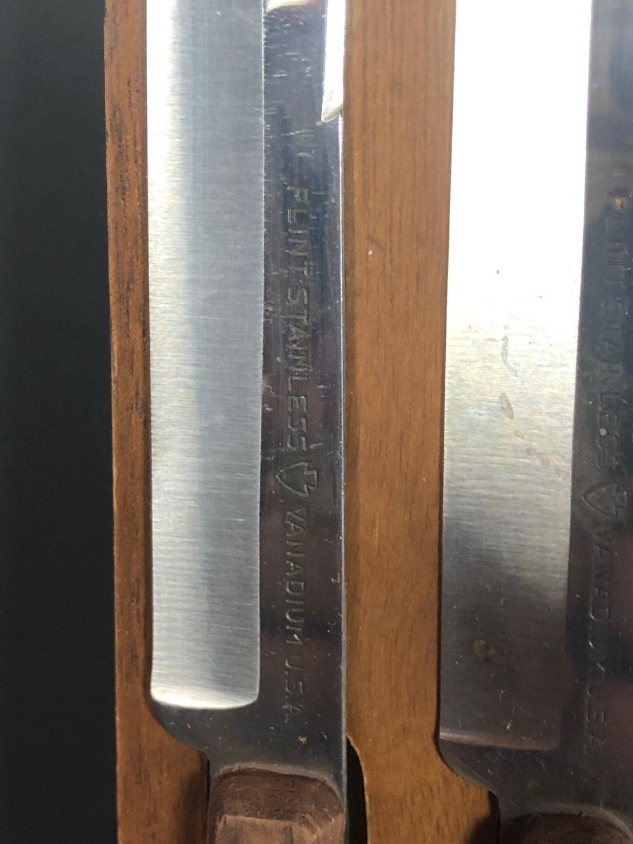 LOT 61L: Unique Handle Raw Wood Carving Set & Ecko Flint Stainless Steel Steak Knives
