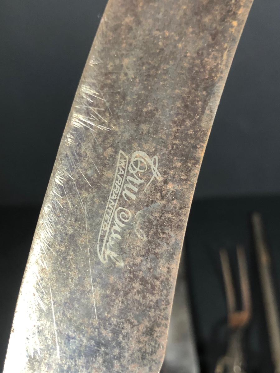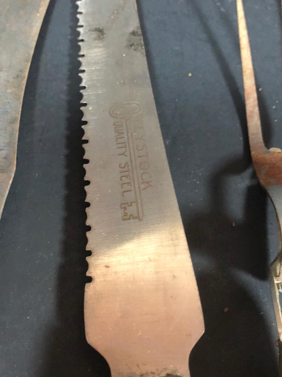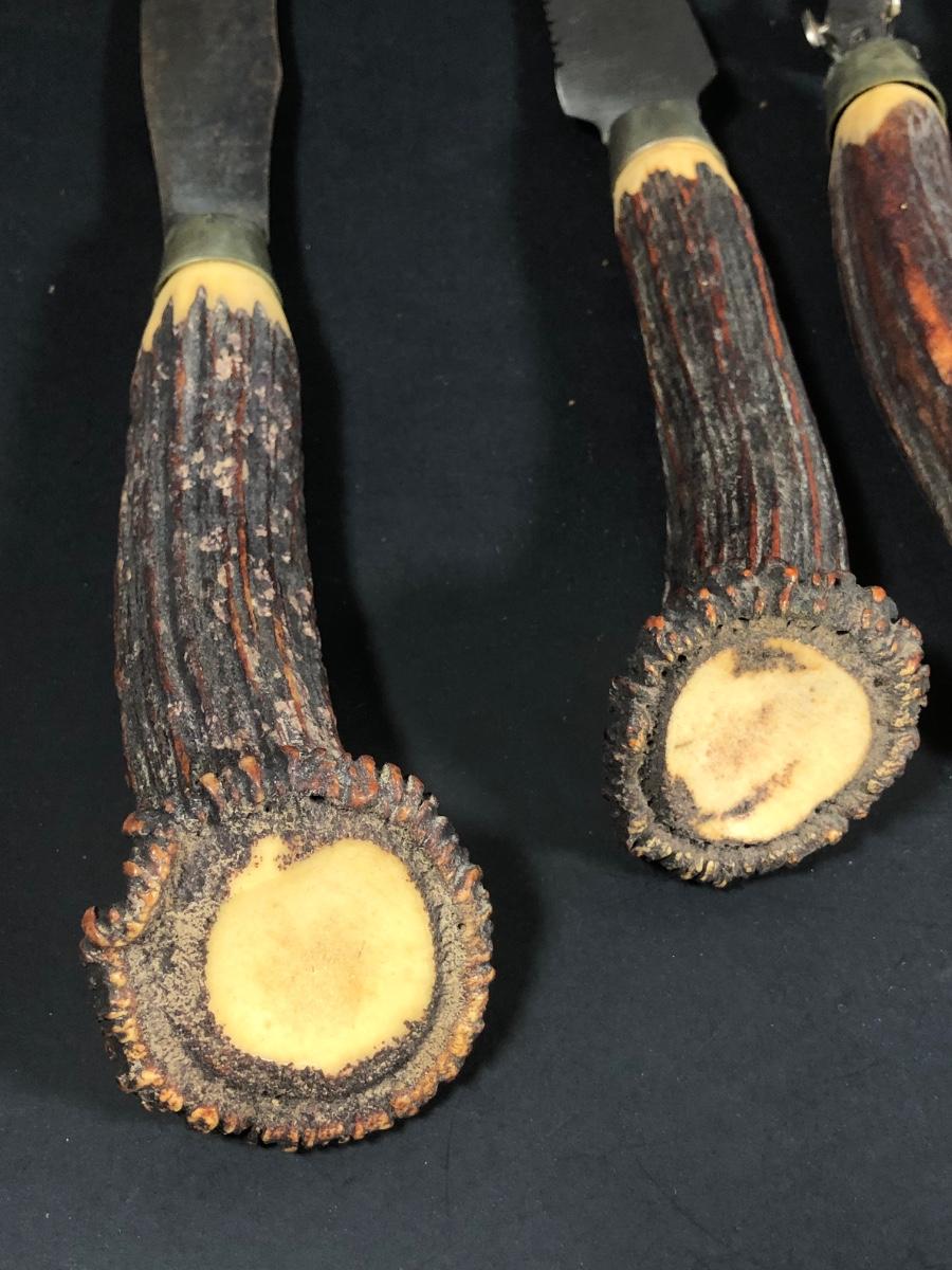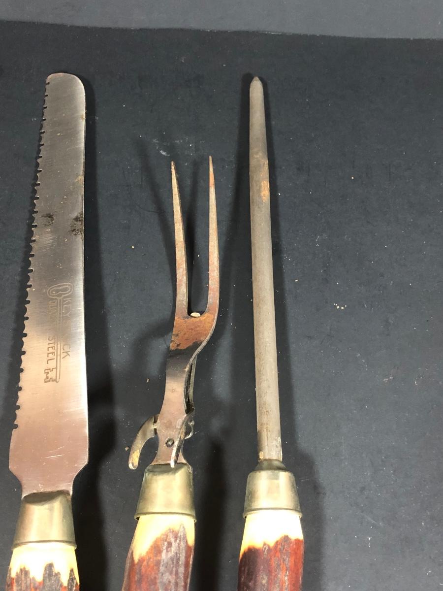 LOT 61L: Unique Handle Raw Wood Carving Set & Ecko Flint Stainless Steel Steak Knives