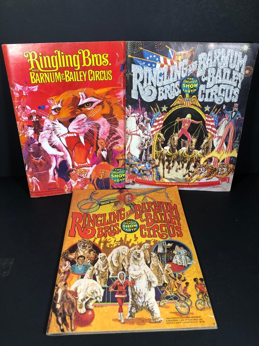 LOT 63W: Vintage 1975 & 1976 Ringling Bros Barnum & Bailey Circus Programs incl. Bicentennial Edition w/ Glitter Cover