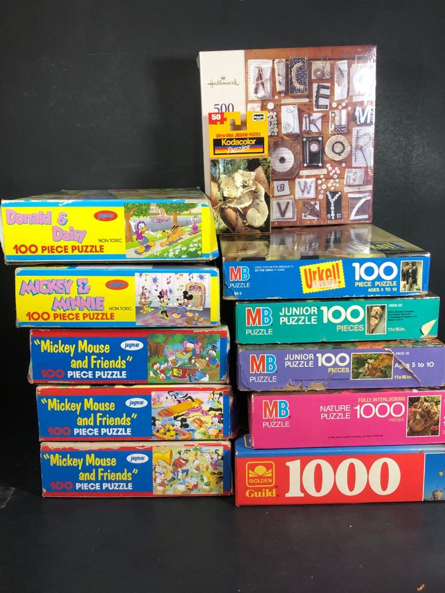 LOT 77L: Puzzles including Vintage Disney, 3 Unopened & Miniature Kodak