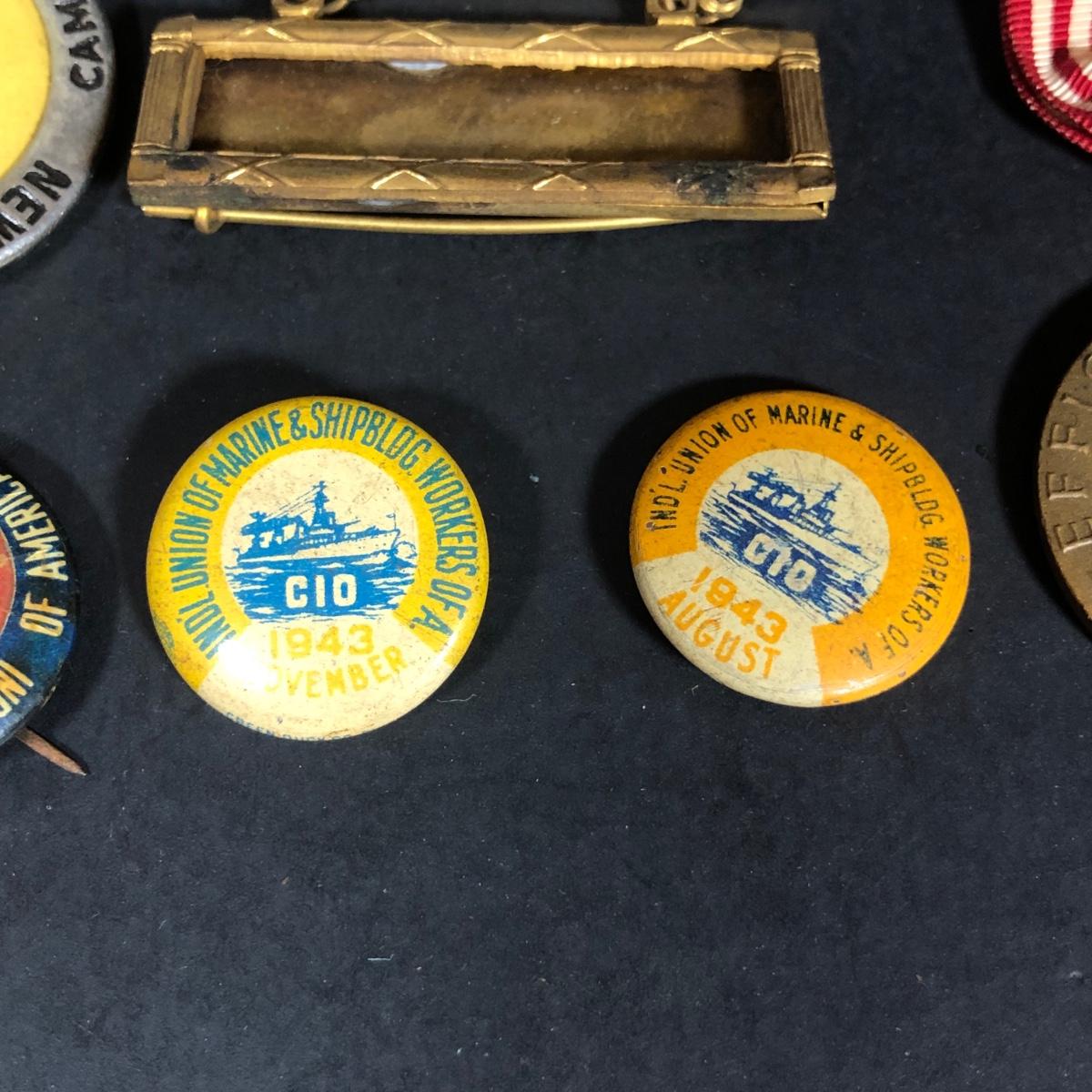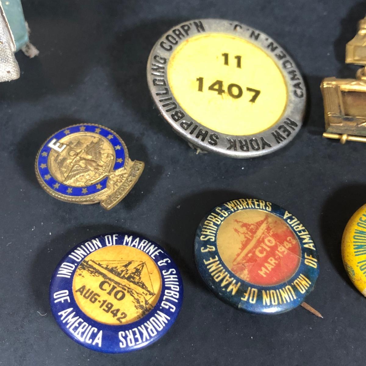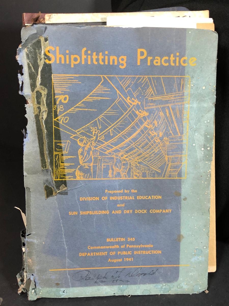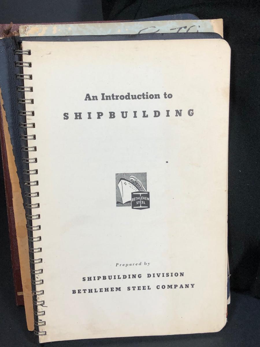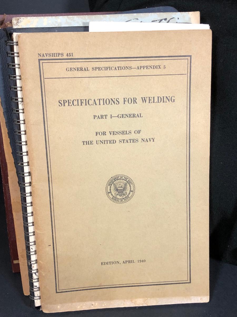 LOT 79L: Vintage US Navy Jacket w/ Shipbuilding Books & Medals / Pins