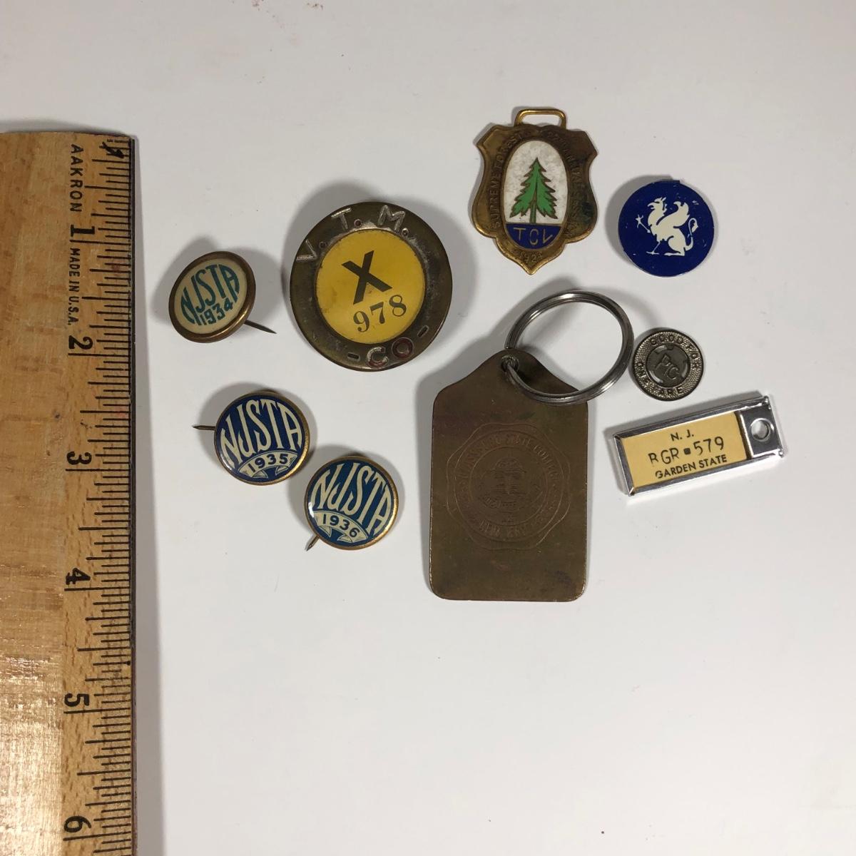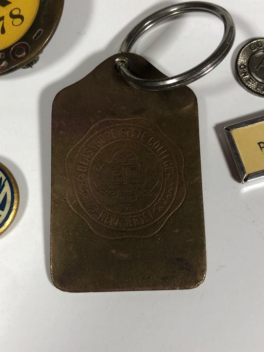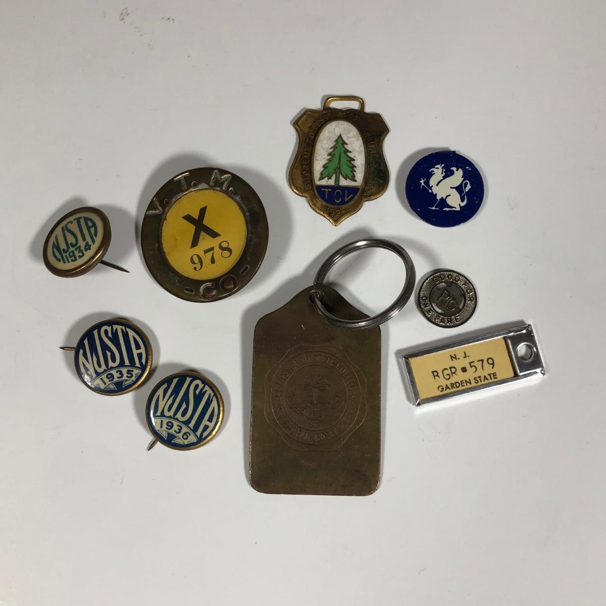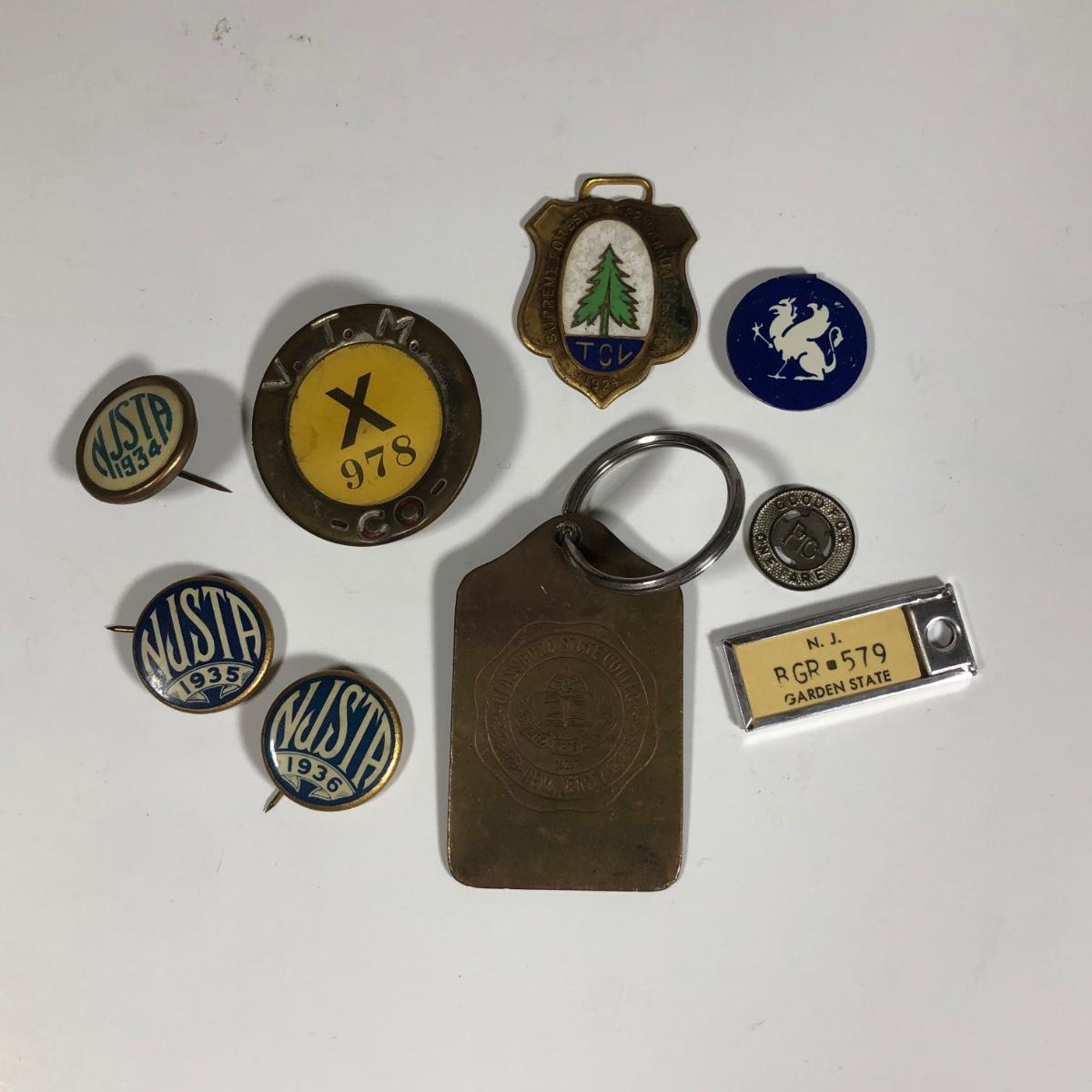 LOT 80L: New Jersey Science Teacher's Association (NJSTA) Buttons (1934-1936), Glassboro State College Key Chain, 1924 TCL Supreme Forest 22nd Annual Session Token & More