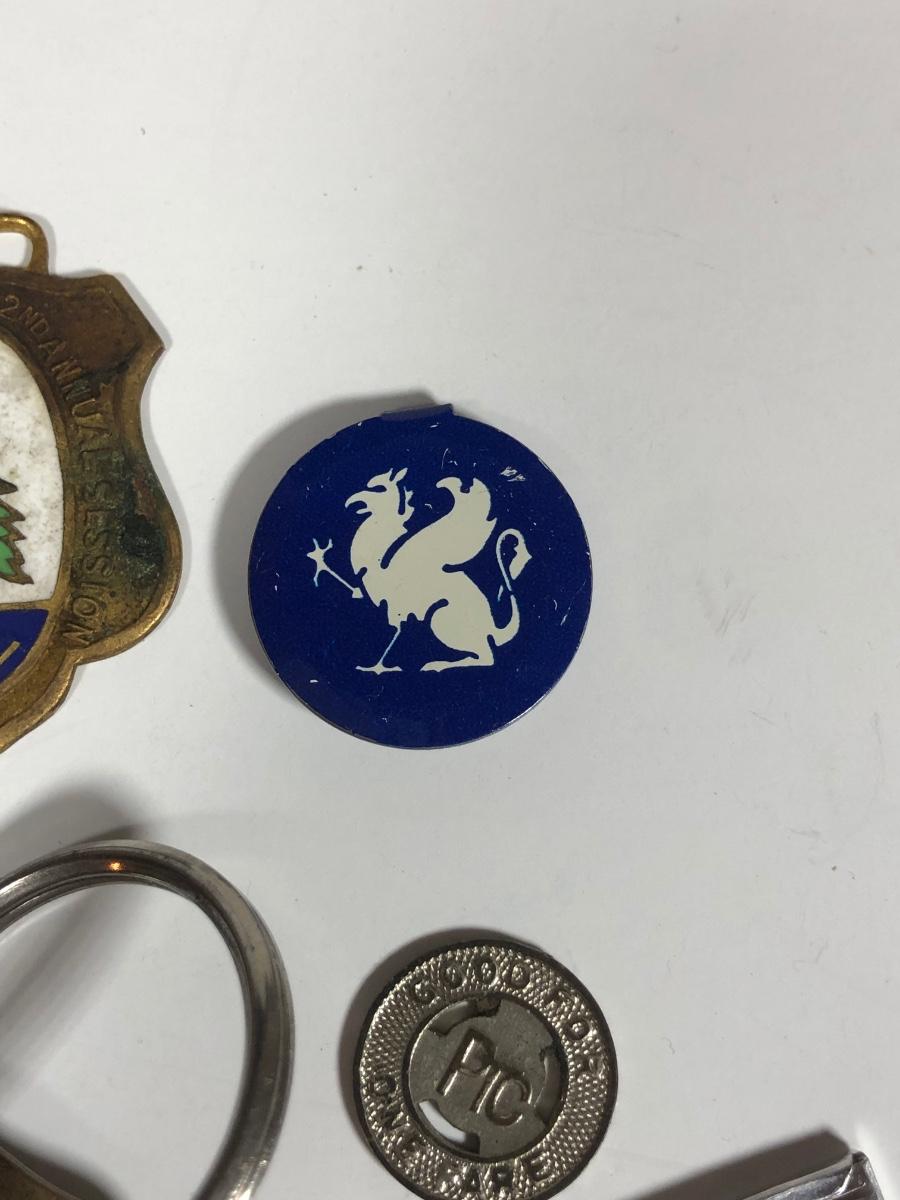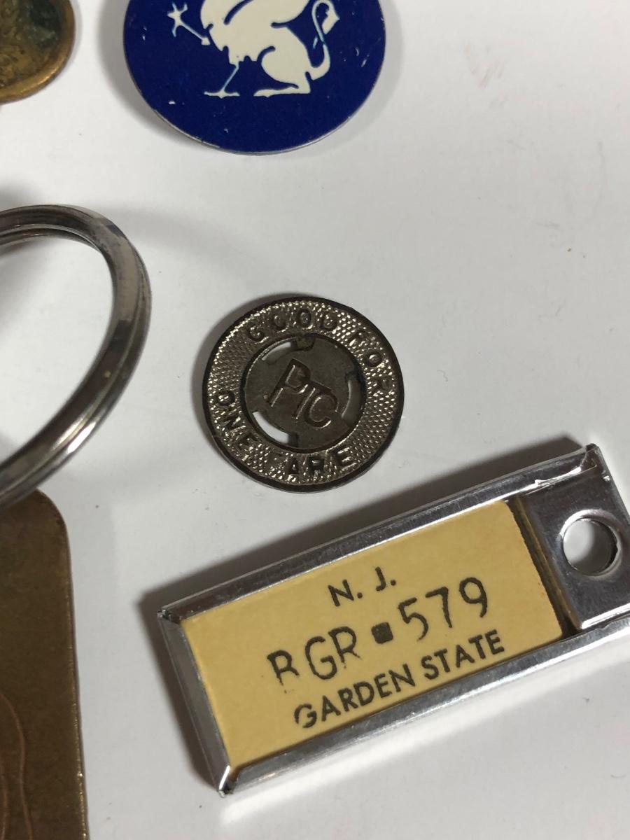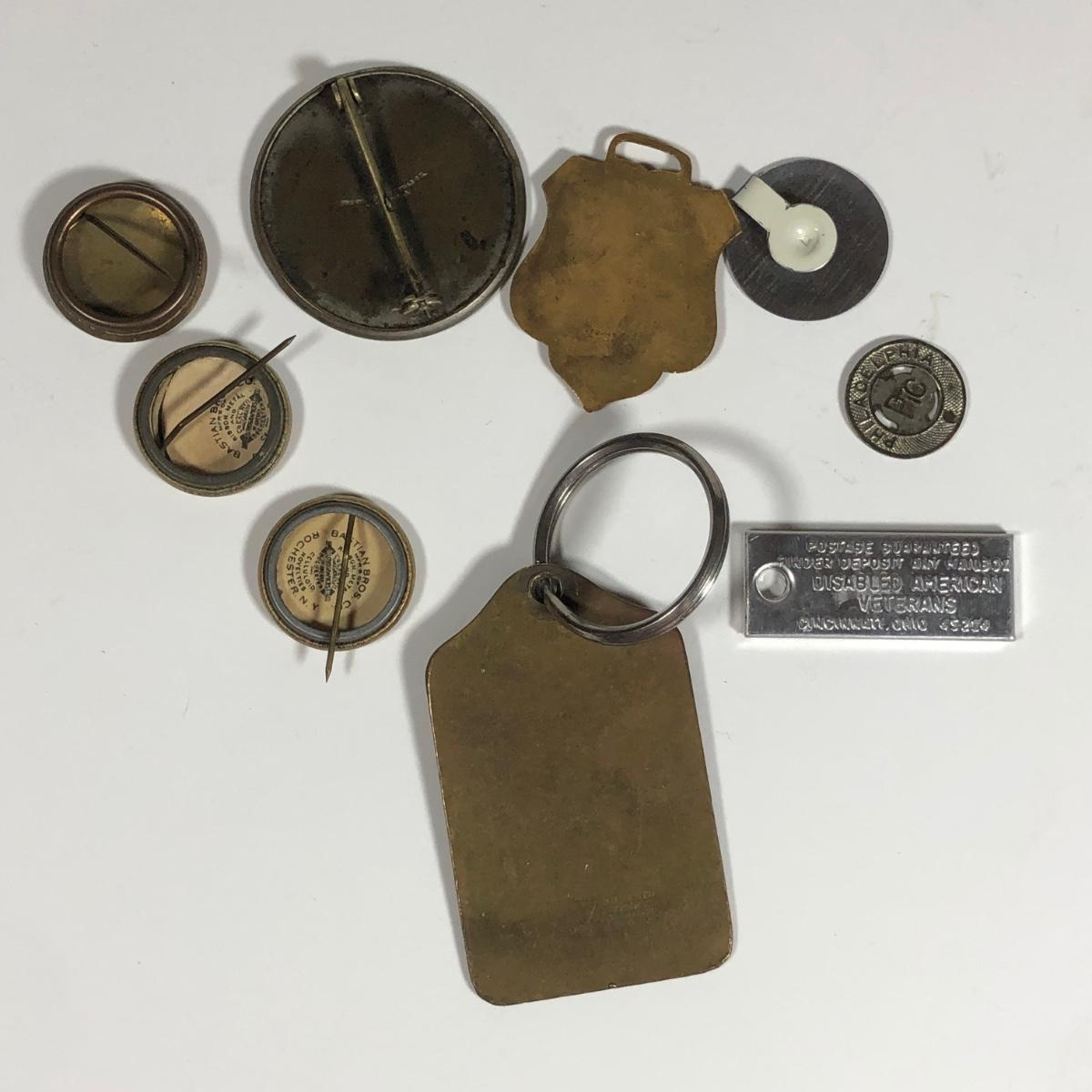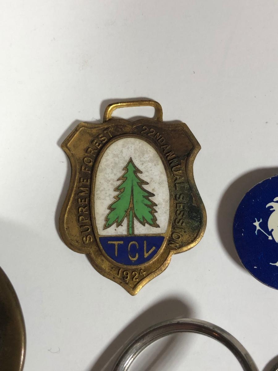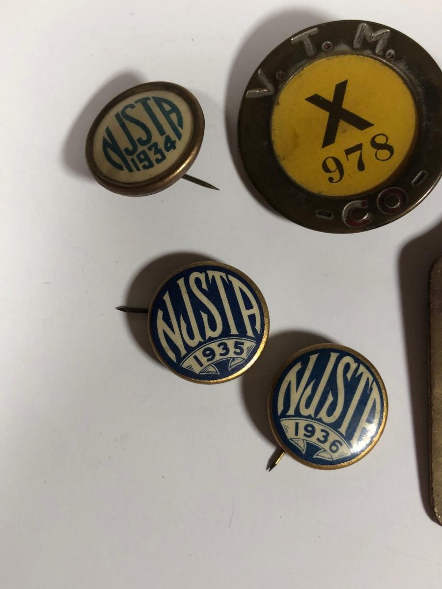 LOT 80L: New Jersey Science Teacher's Association (NJSTA) Buttons (1934-1936), Glassboro State College Key Chain, 1924 TCL Supreme Forest 22nd Annual Session Token & More