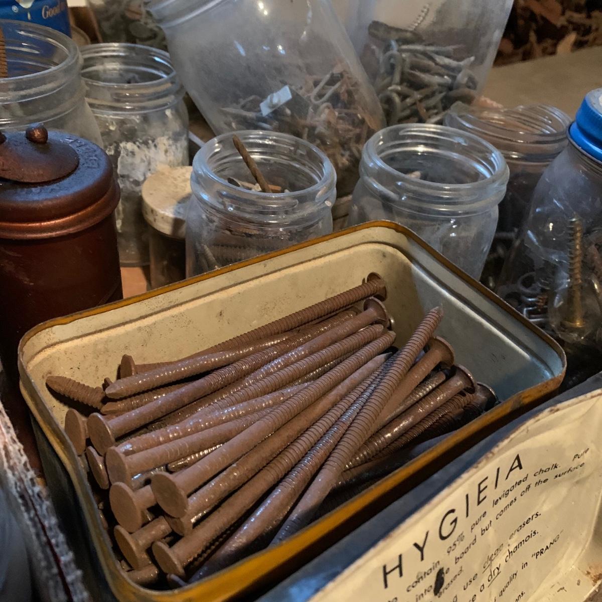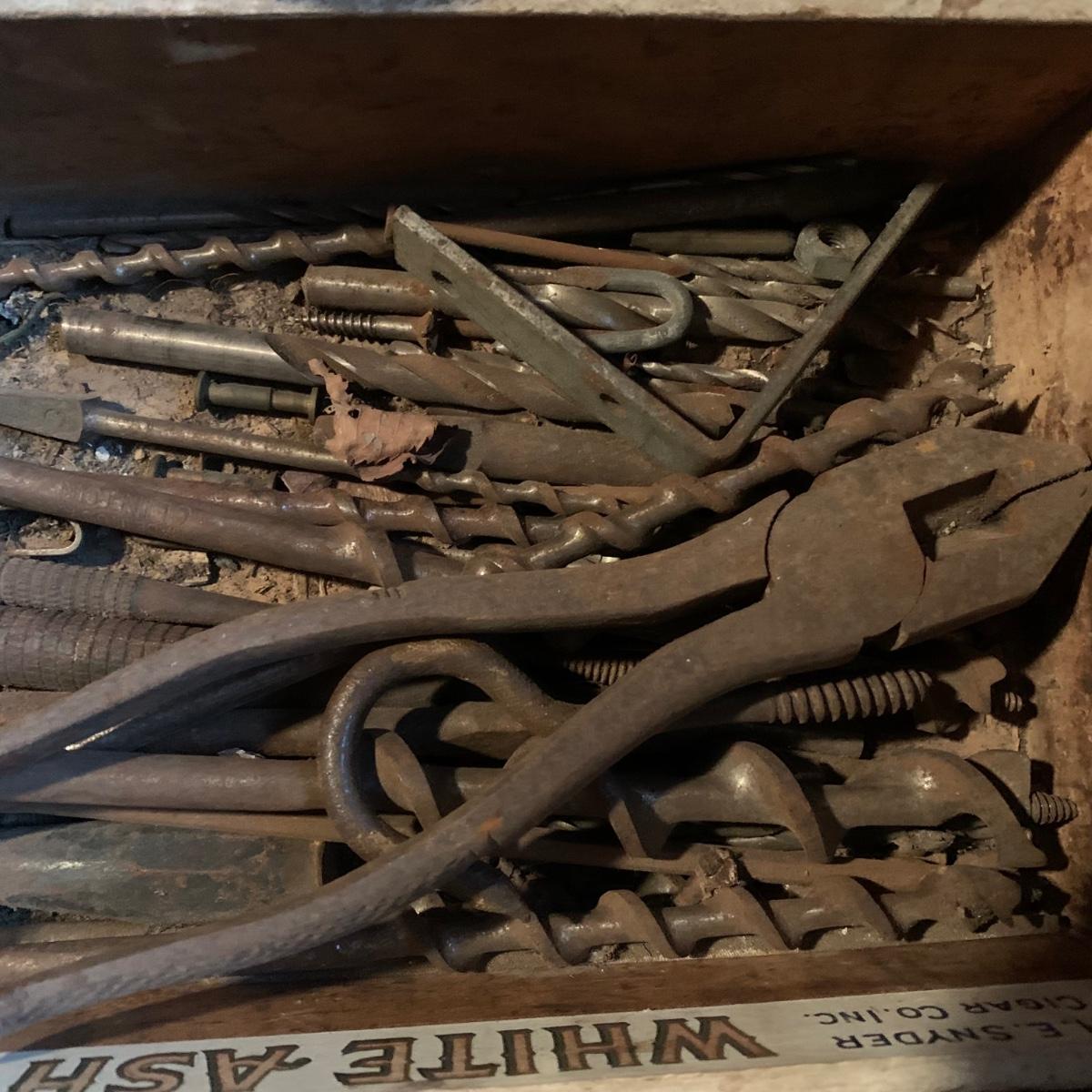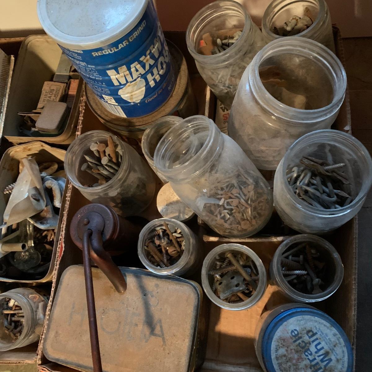 LOT 81 B: Little Tool Lot - Vintage Nails, Hinges, Drill Bits, Keys, Some Original Packaging, & More