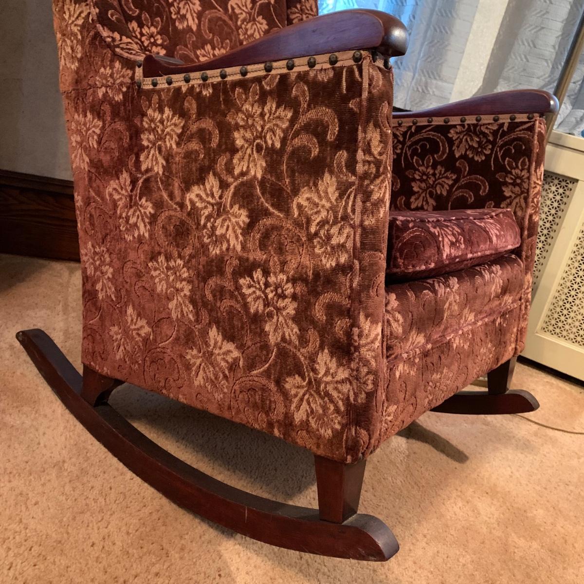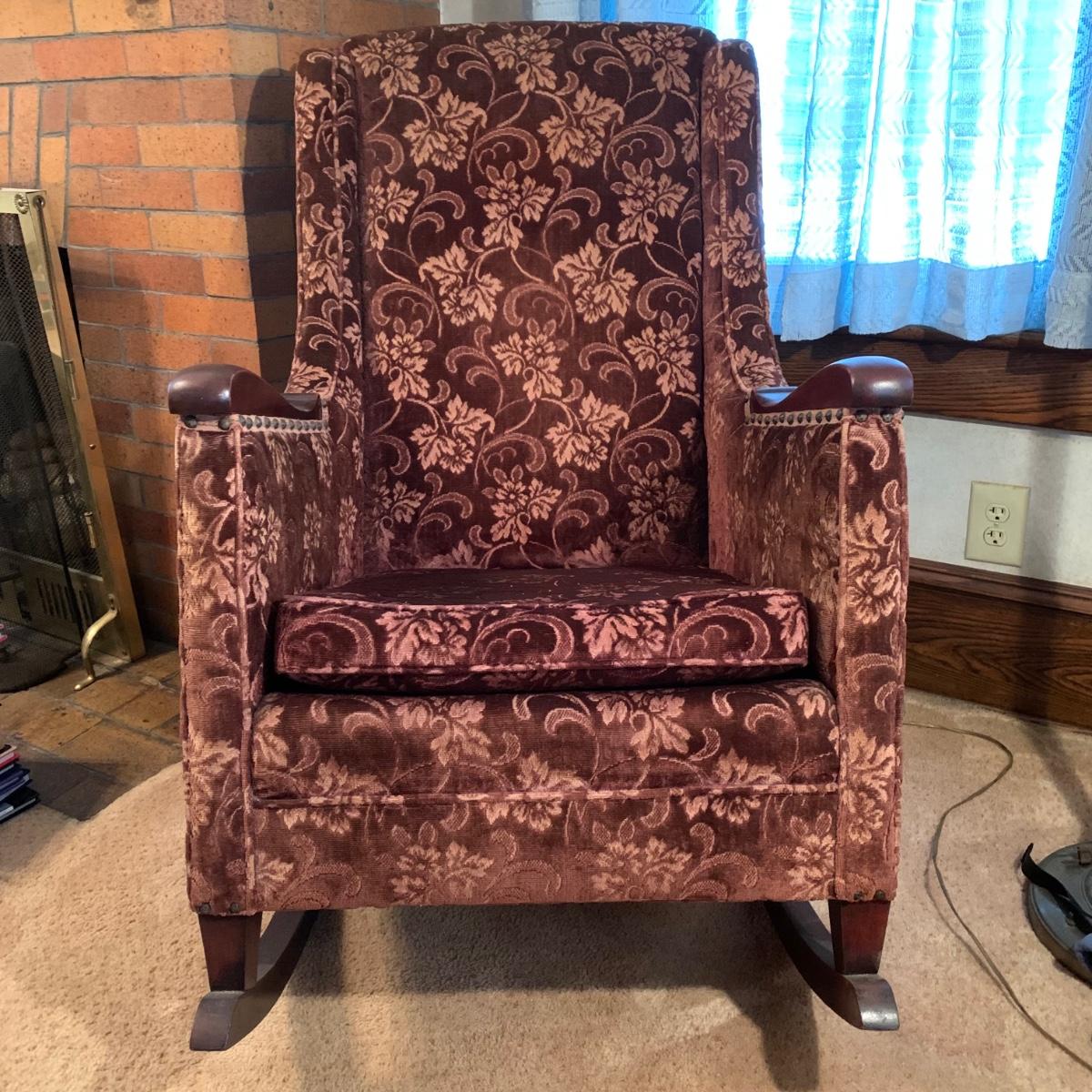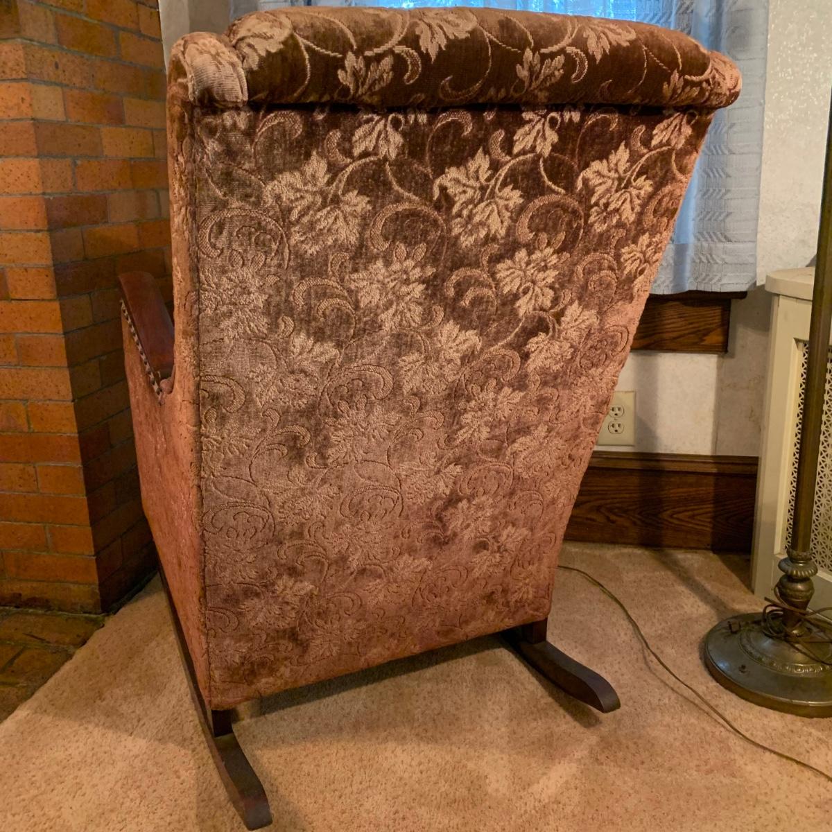 LOT 88 L: Vintage Wing Back Floral Print Upholstery Rocking Chair