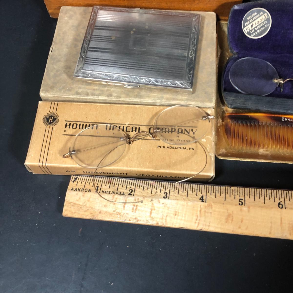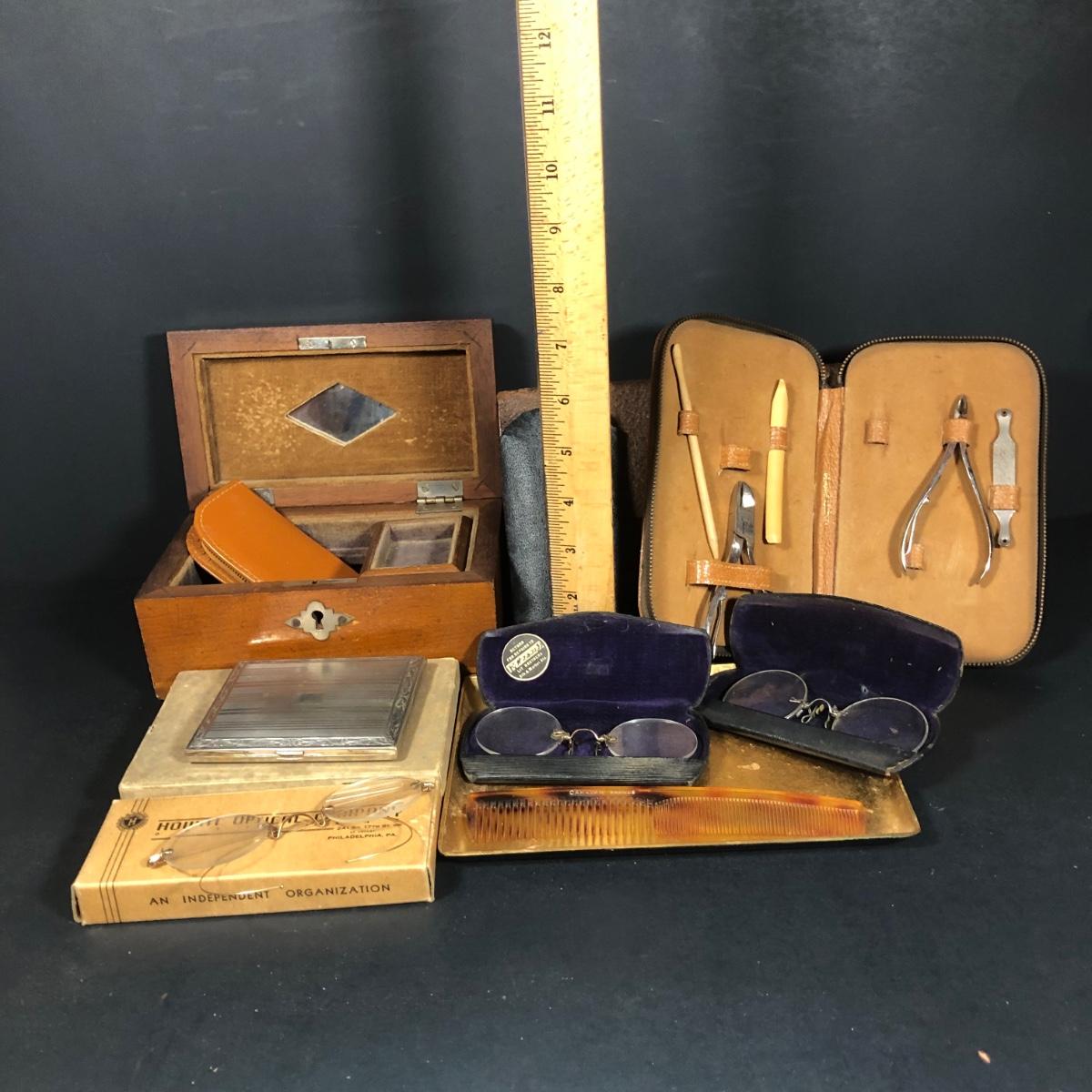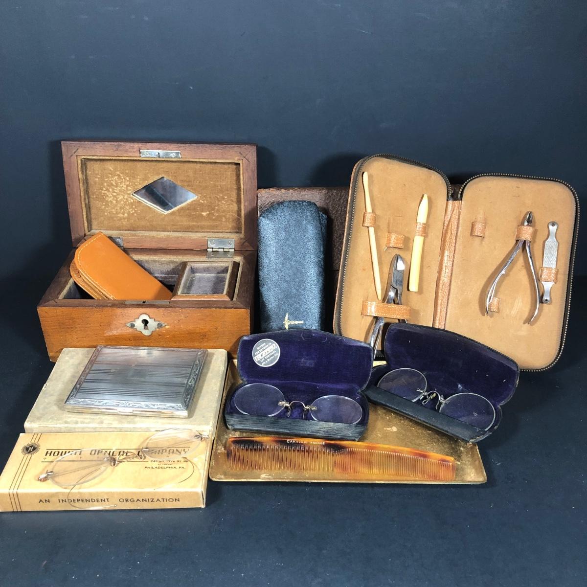 LOT 104K: Vintage Men's Collection - Glasses (Lit Brothers, Lubins Optometrists, Howitt Optical), Grooming Kits & More