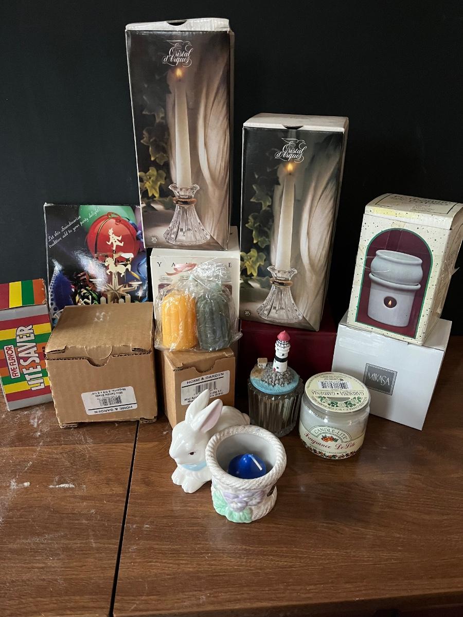 LOT 141Z: Collection of Candles and Candlesticks - Lenox, Cristal d'Arques, Gorham, Yankee Candle and More