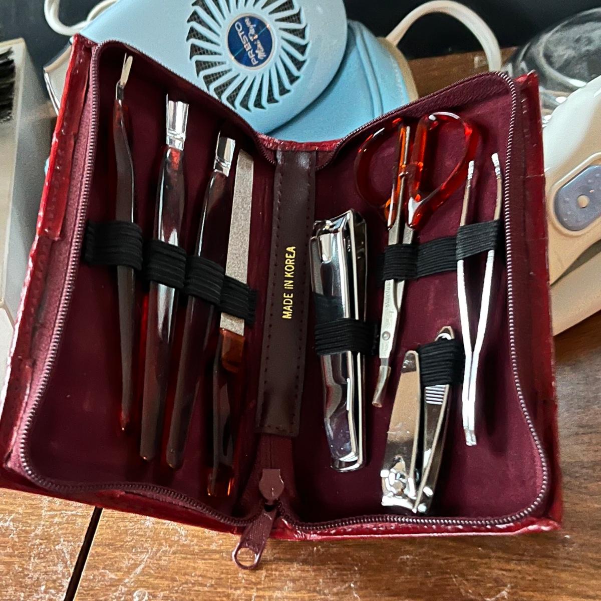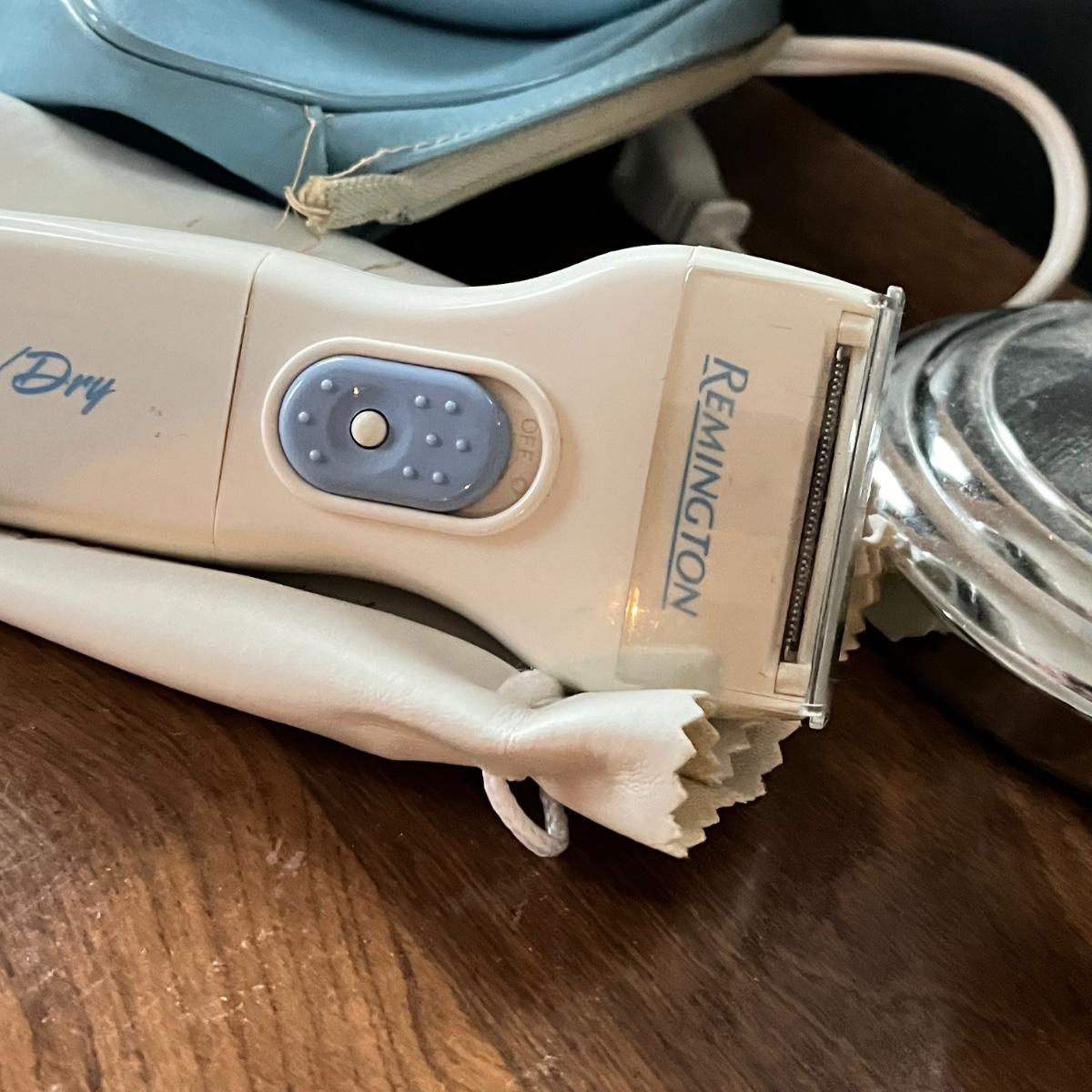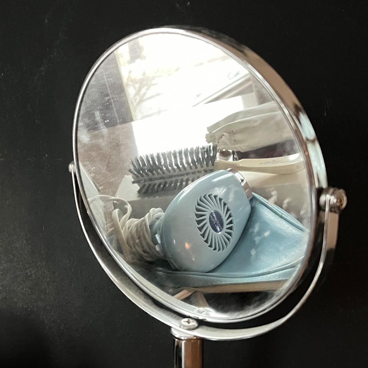 LOT 142Z: Women's Vanity Items, Makeup Mirror, Vintage Razor, Hairdryer and More