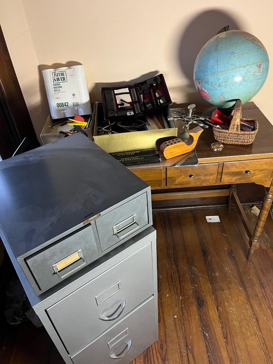 LOT 158Z: Office Lot - File Cabinets, Supplies, Tools, Decor, Globe