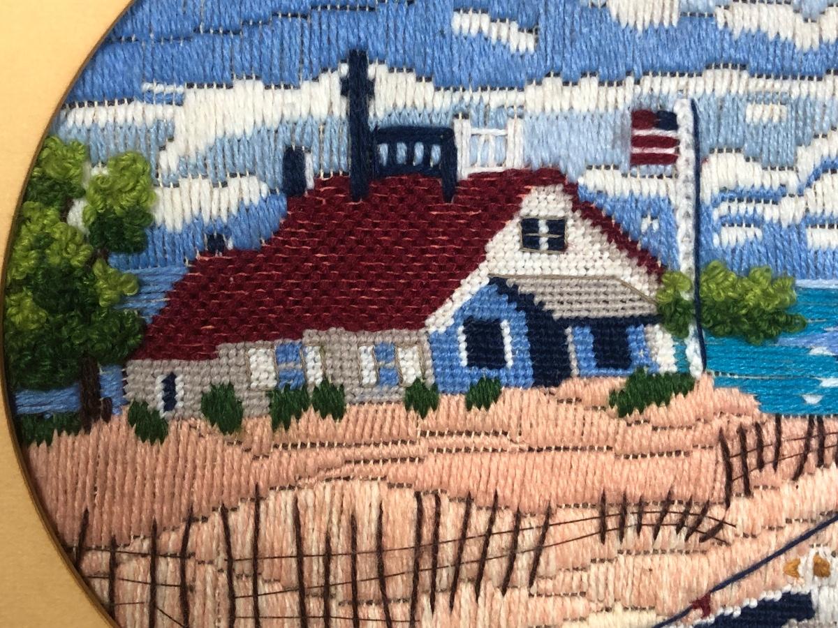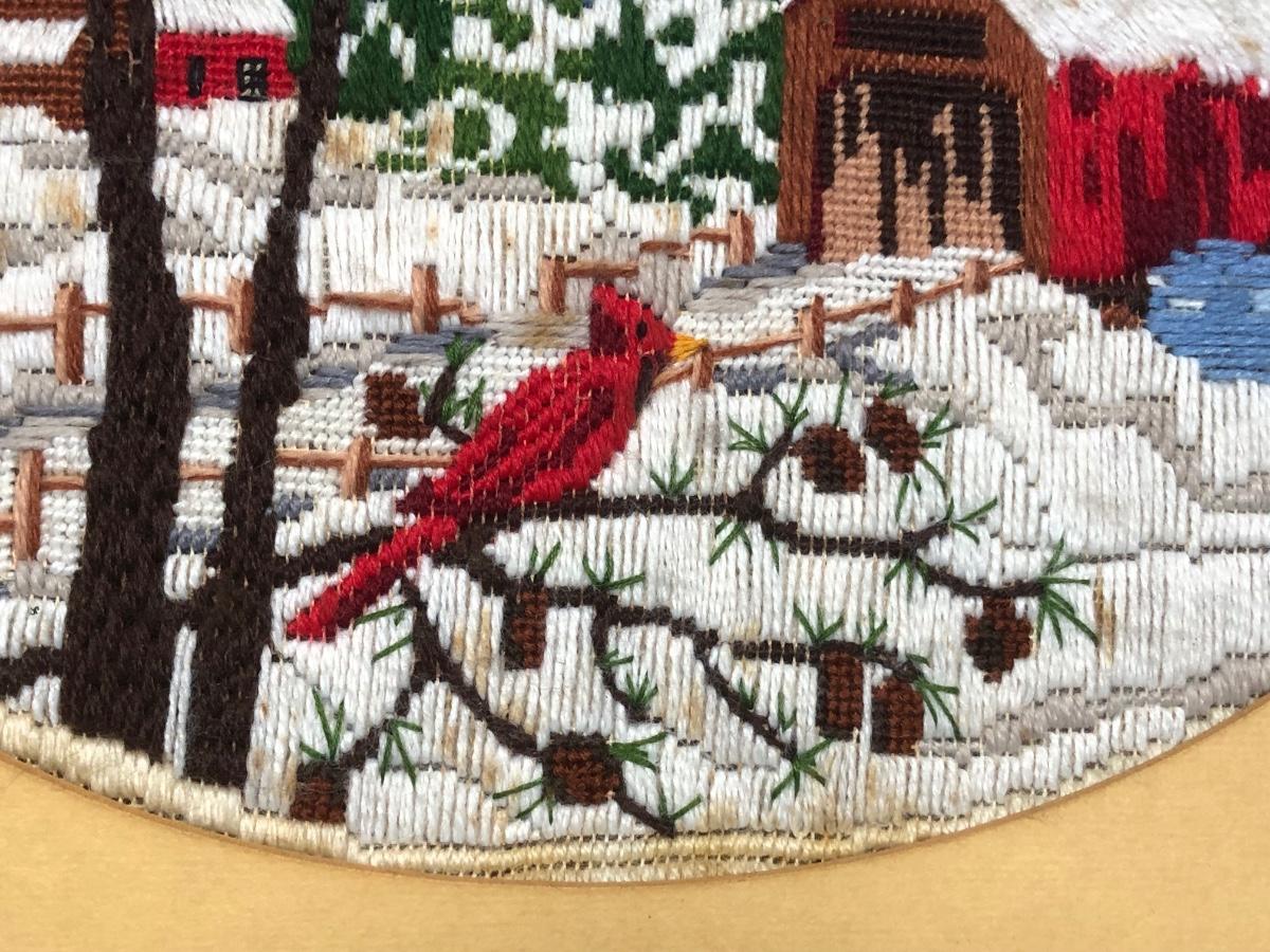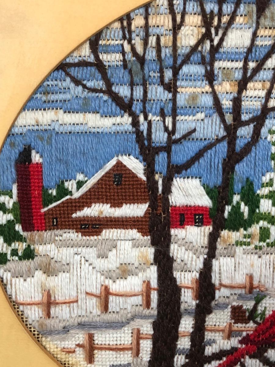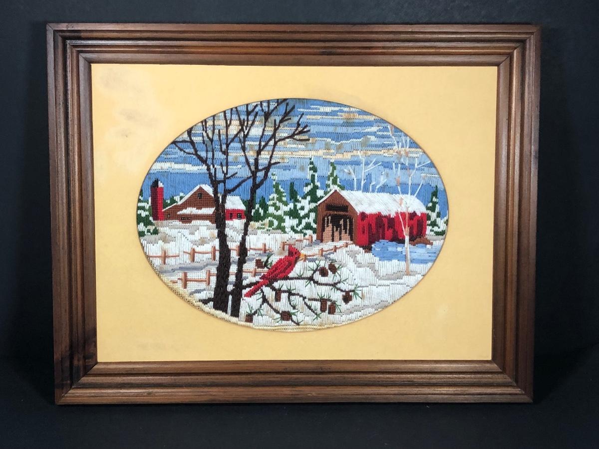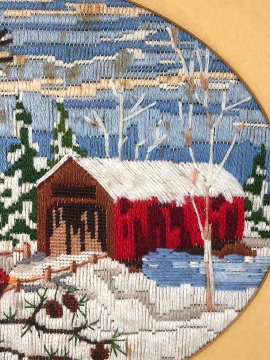 LOT 164L: Four 1980s Seasonal Landscape Embroidered / Needlepoint Art by Janet Davis