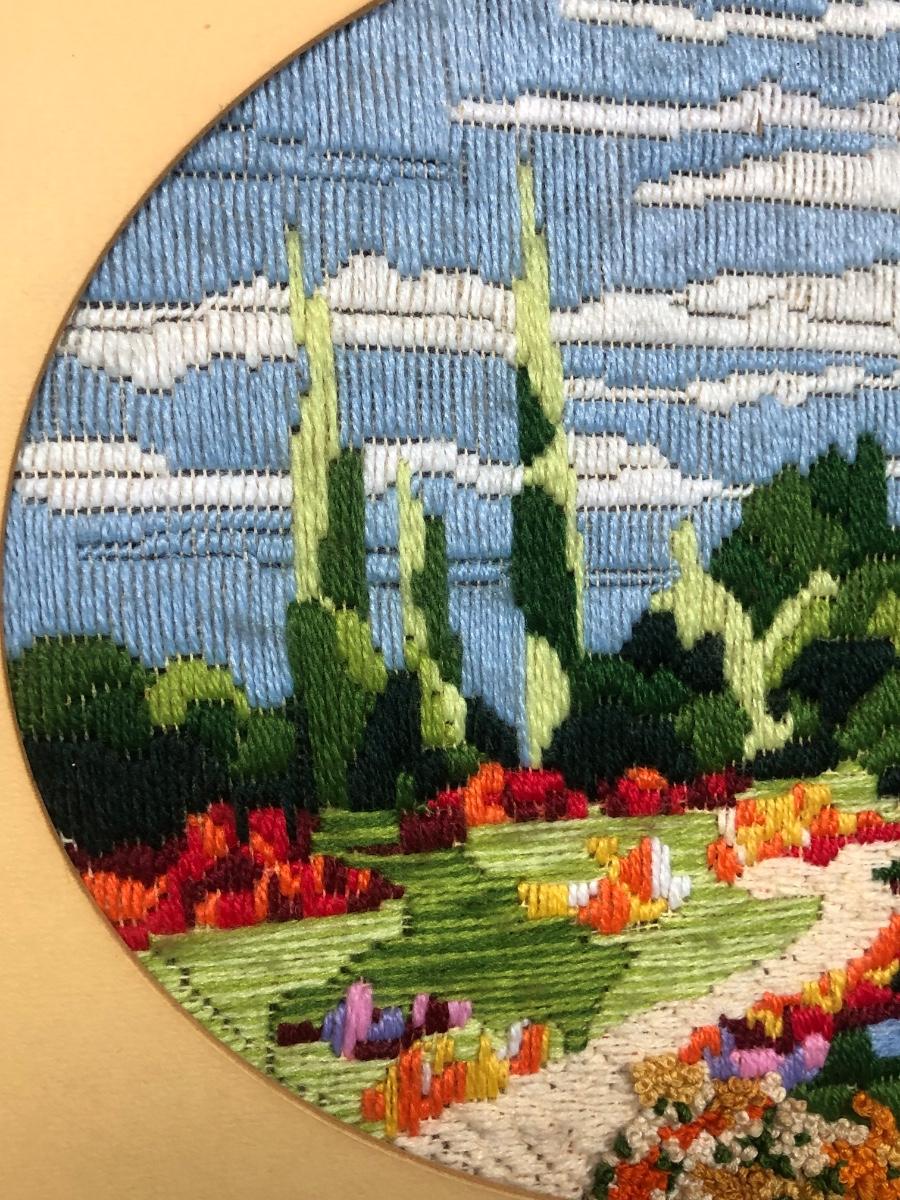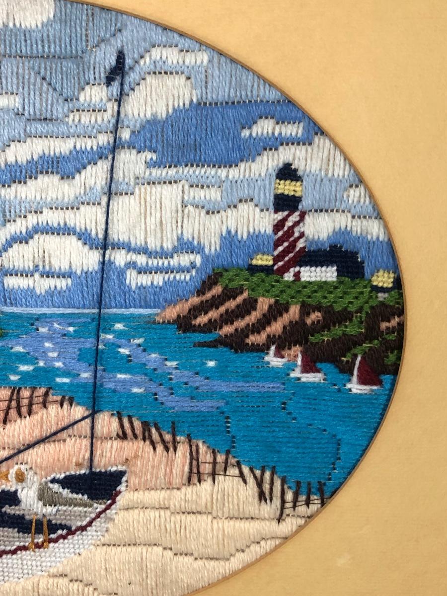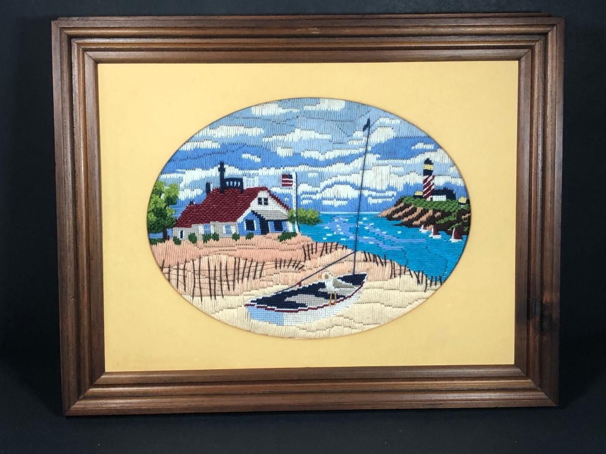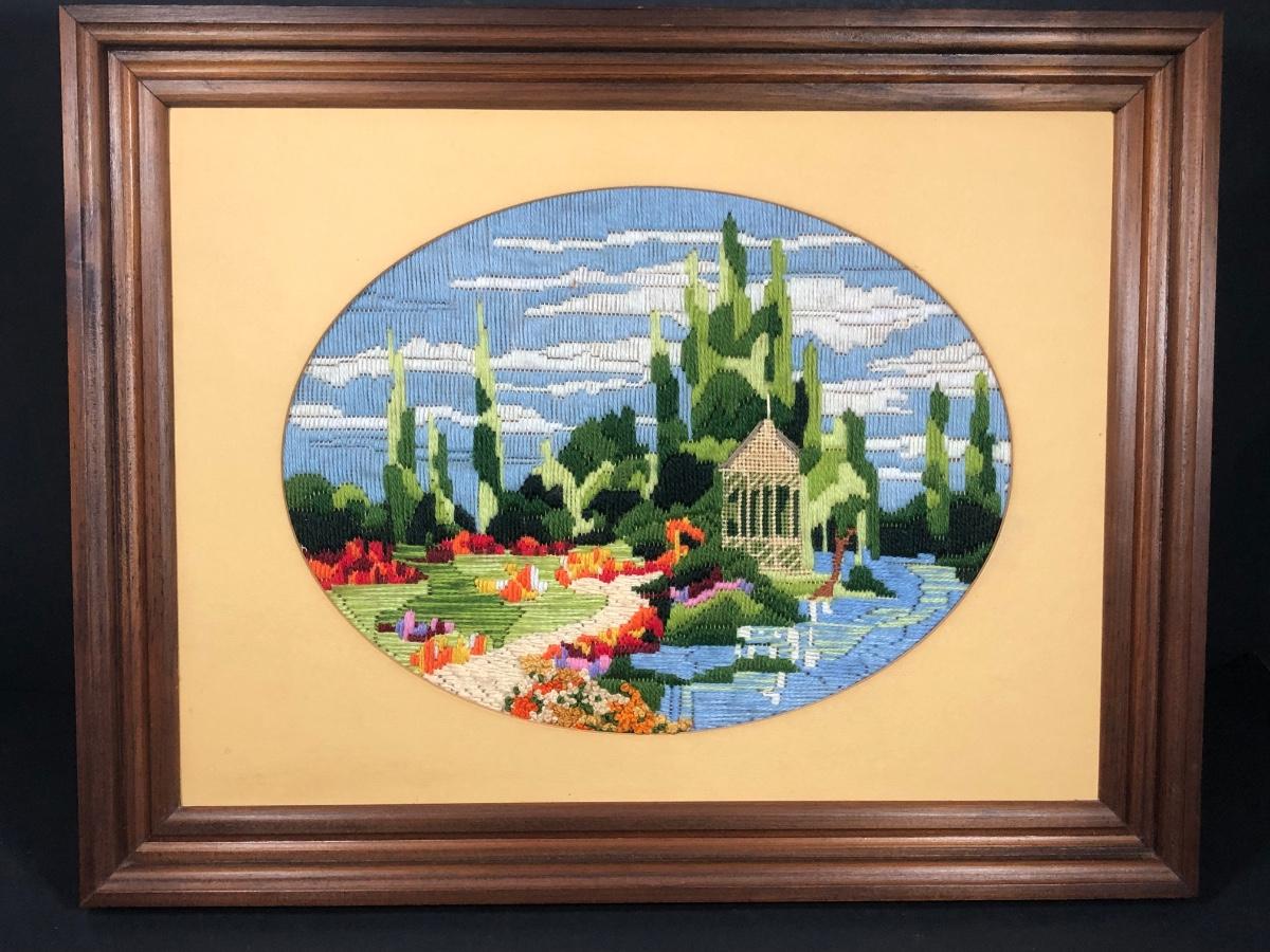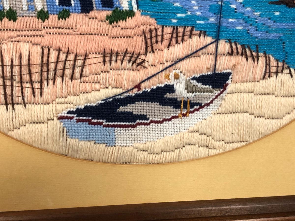 LOT 164L: Four 1980s Seasonal Landscape Embroidered / Needlepoint Art by Janet Davis