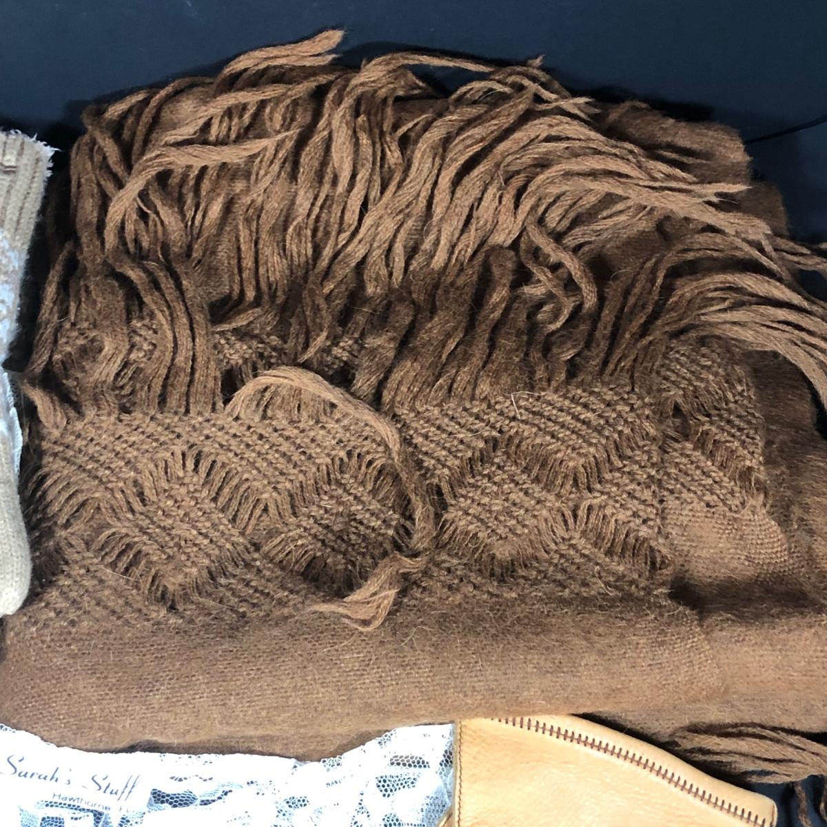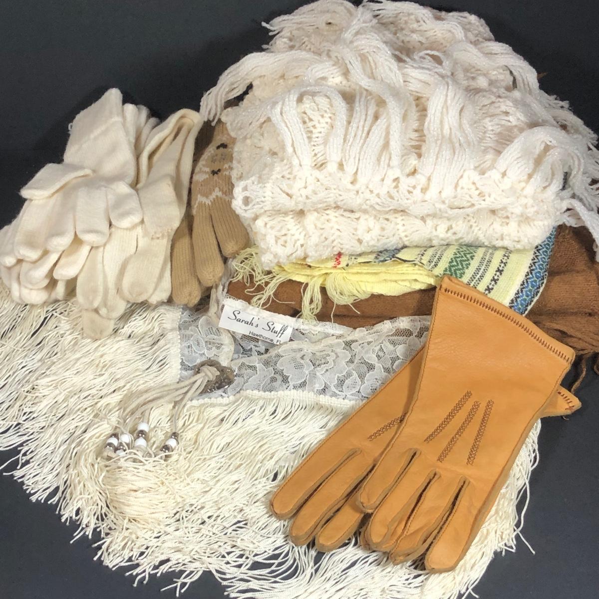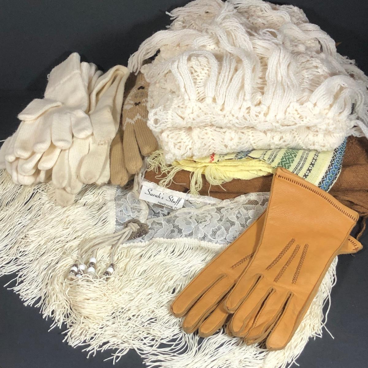 LOT 166L: Vintage Ladies' Leather Gloves, Lace Fringe Shawl, Scarves & Cotton Winter Gloves