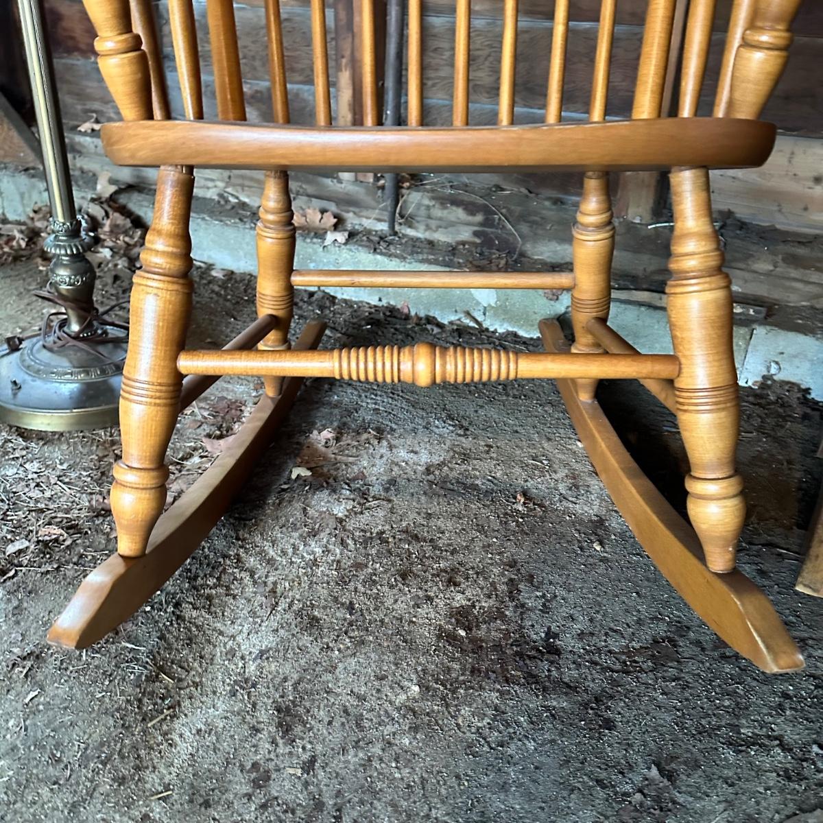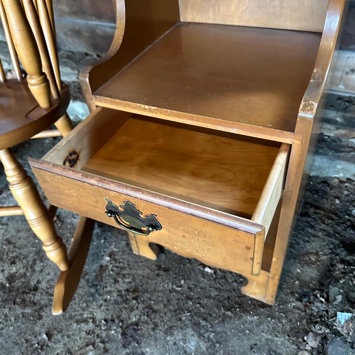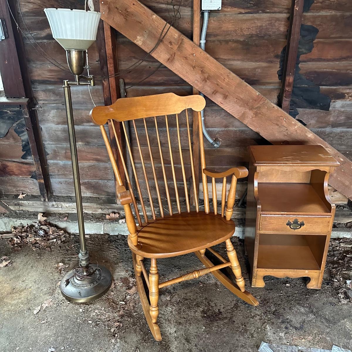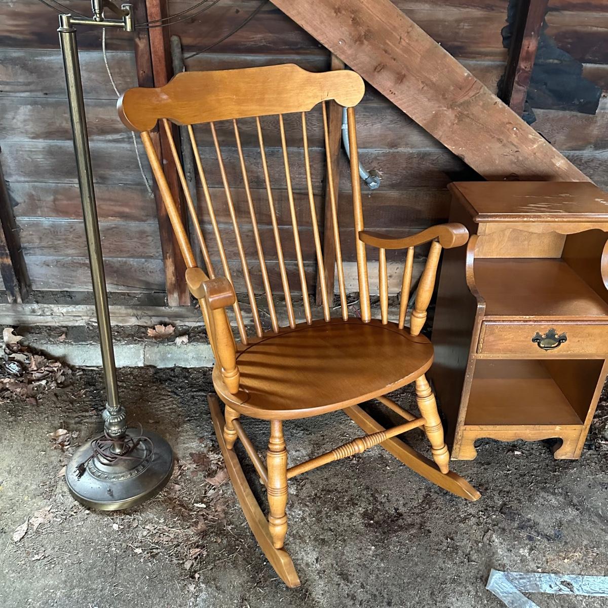 LOT 181G: Moosehead Furniture Rocking Chair w/ Beals Side Table & Brass Lamp