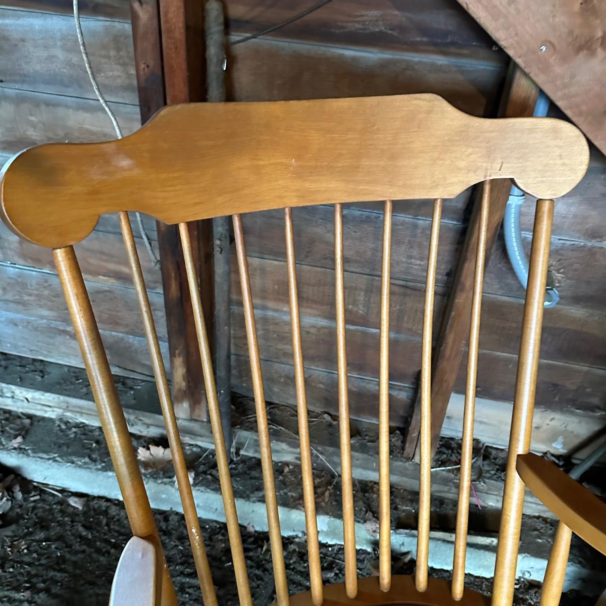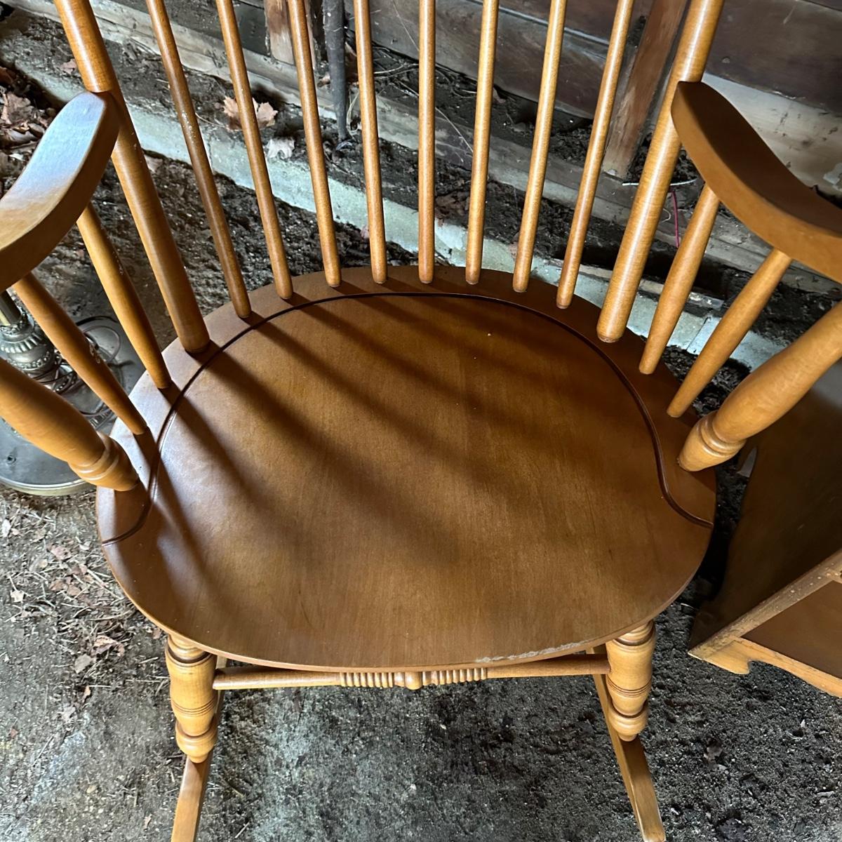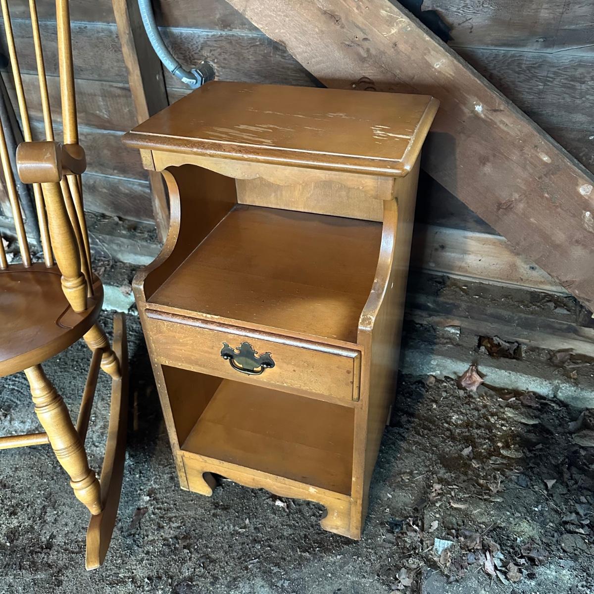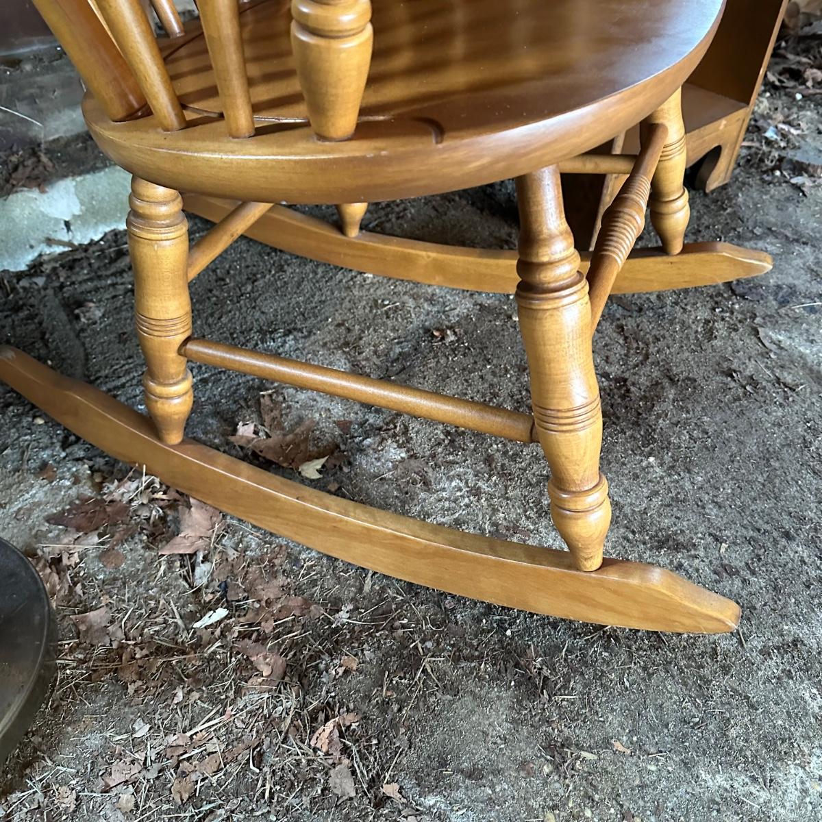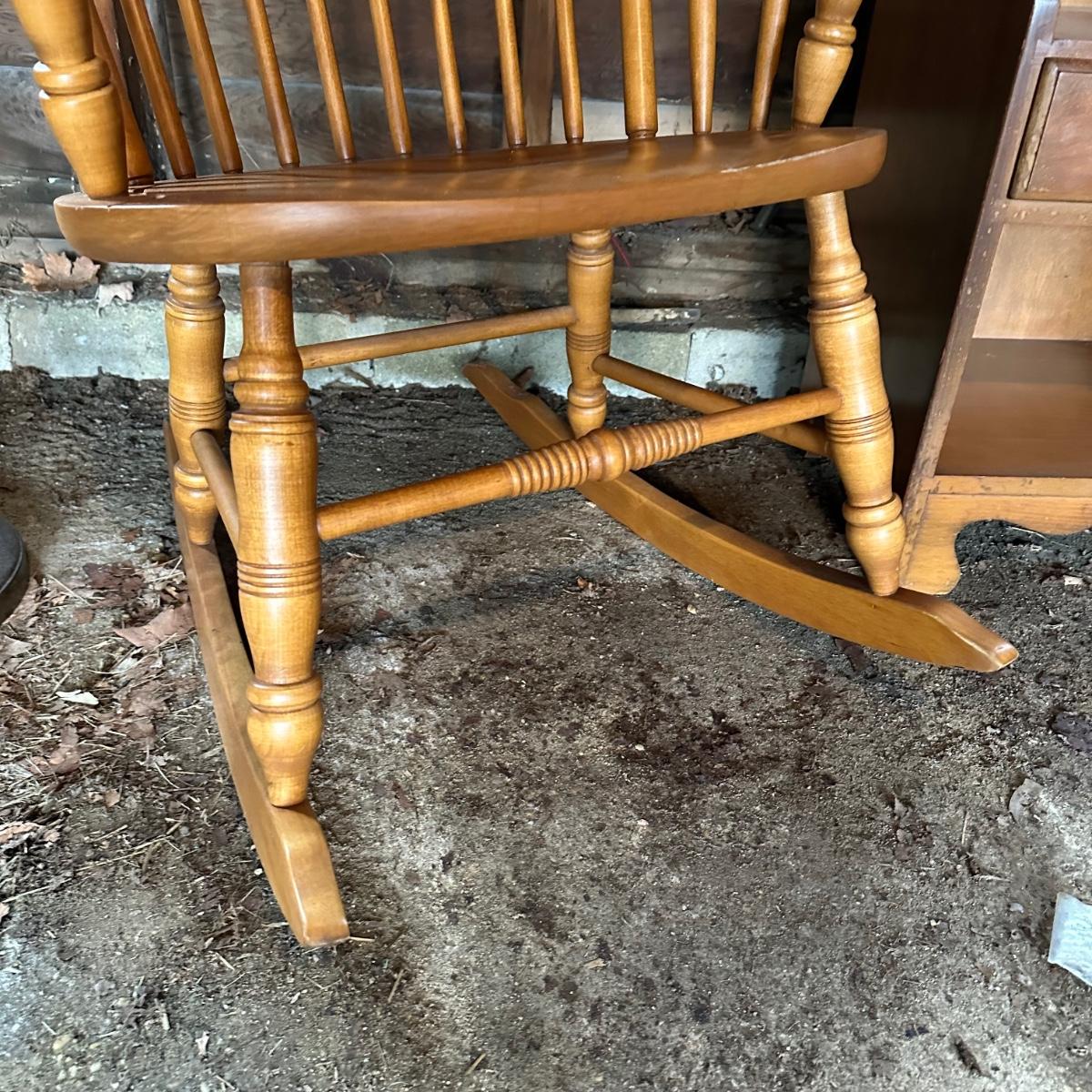LOT 181G: Moosehead Furniture Rocking Chair w/ Beals Side Table & Brass Lamp