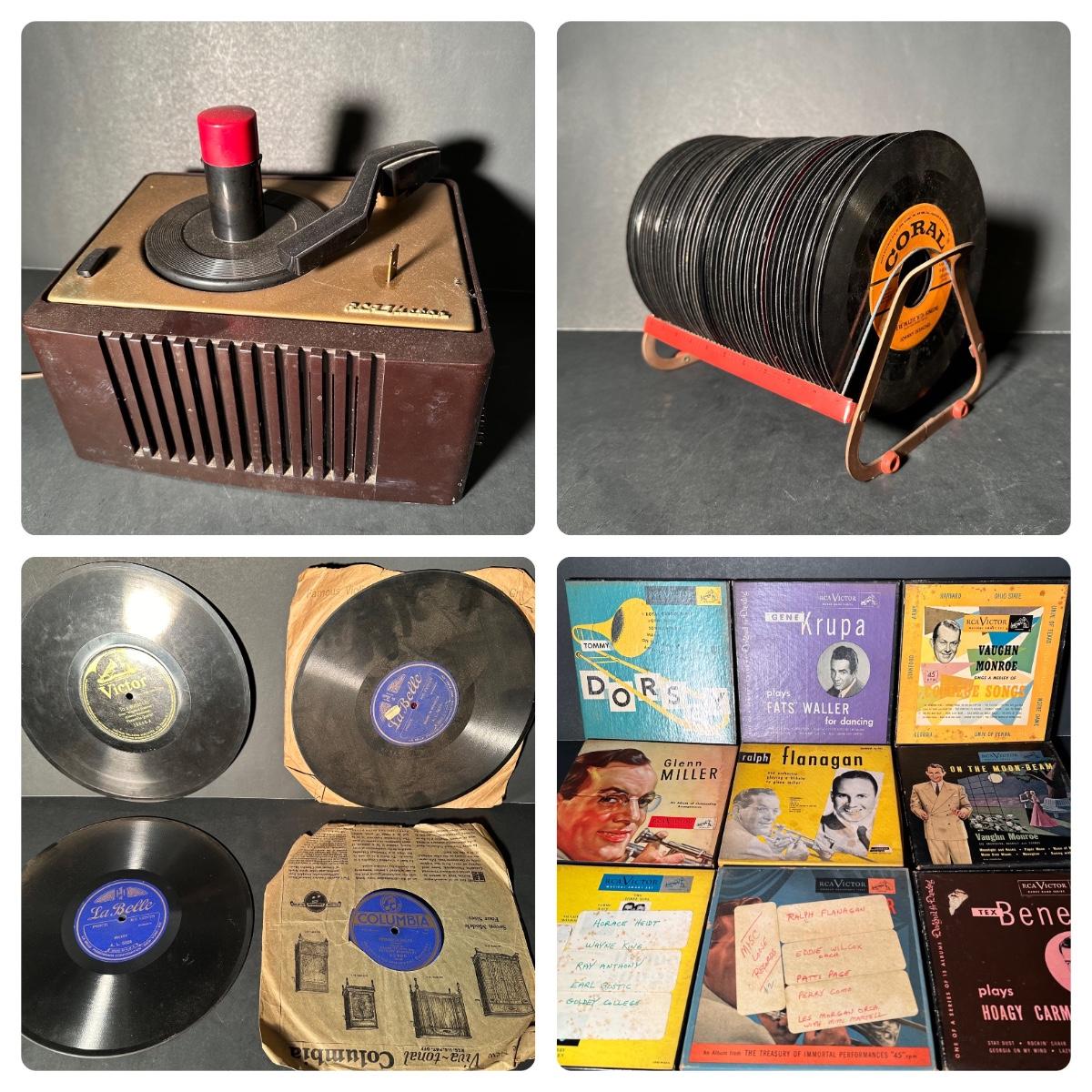 LOT 185L: RCA Victor 45 RPM Record Player Model 45-EY-2 w/ 45s & Record Collection