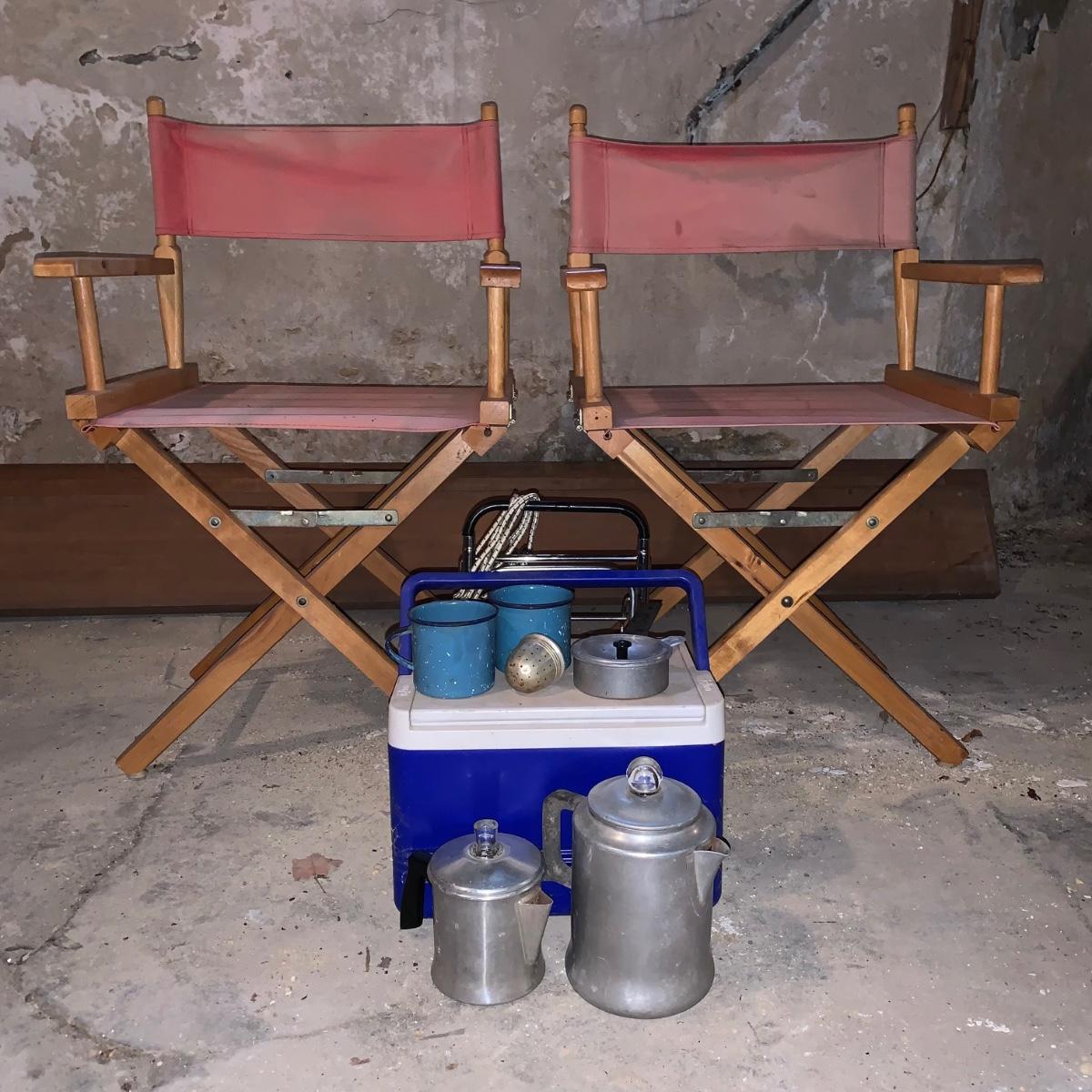 LOT 188 B: Camping Gear - Director Chair Style Folding Chairs, Portable Foldable Miniature Hand Truck, Igloo Legend 12 Cooler, Enamel Camping Mugs, & More