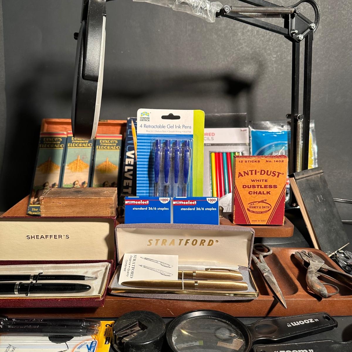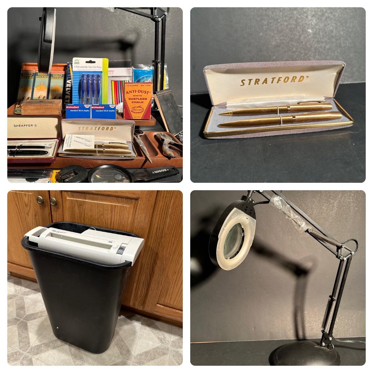 LOT 193L: Vintage Office Supplies - Stratford Pens, Desk Organizer, Paper Shredder & More