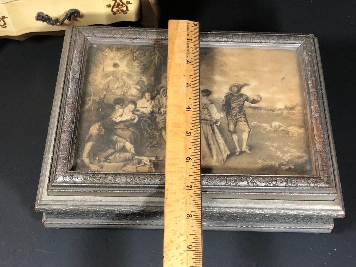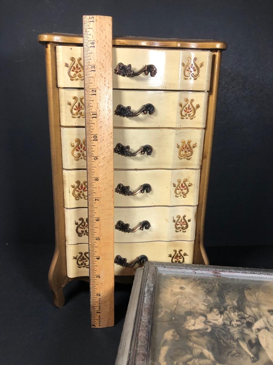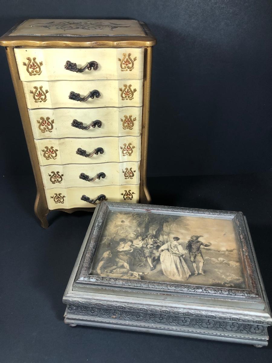 LOT 201L: Vintage Jewelry Boxes - Mini Dresser Music Box & Photo Frame Lid Box