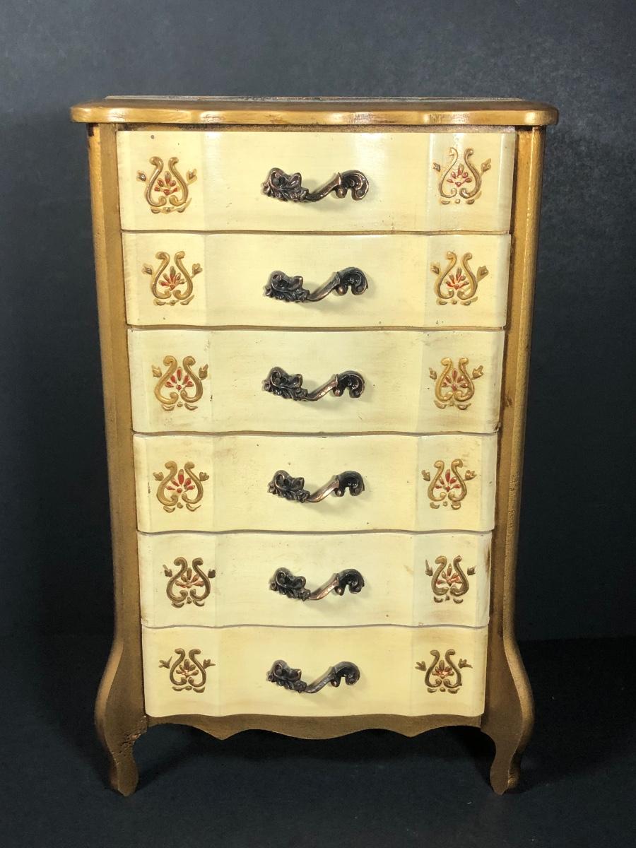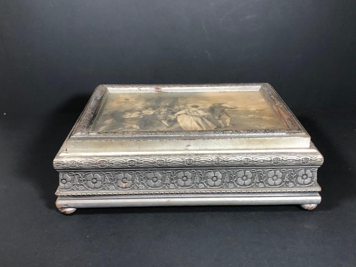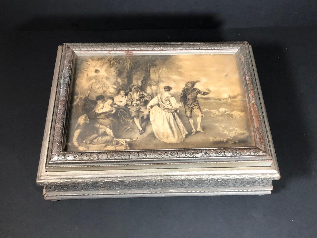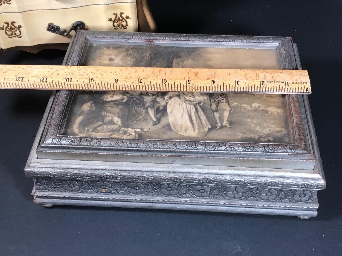 LOT 201L: Vintage Jewelry Boxes - Mini Dresser Music Box & Photo Frame Lid Box