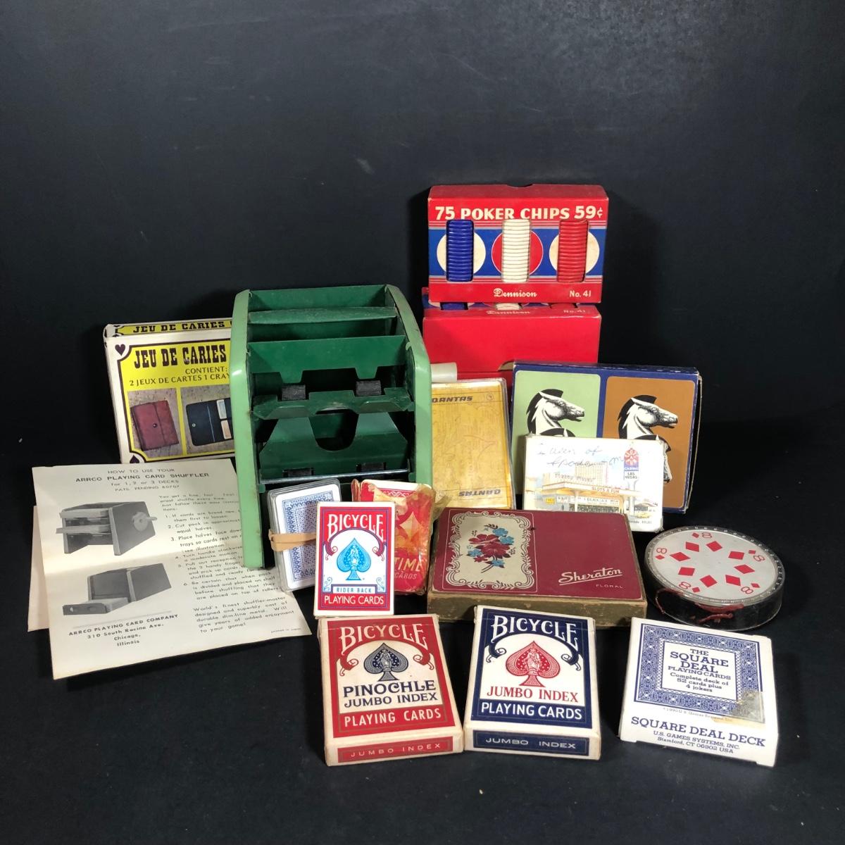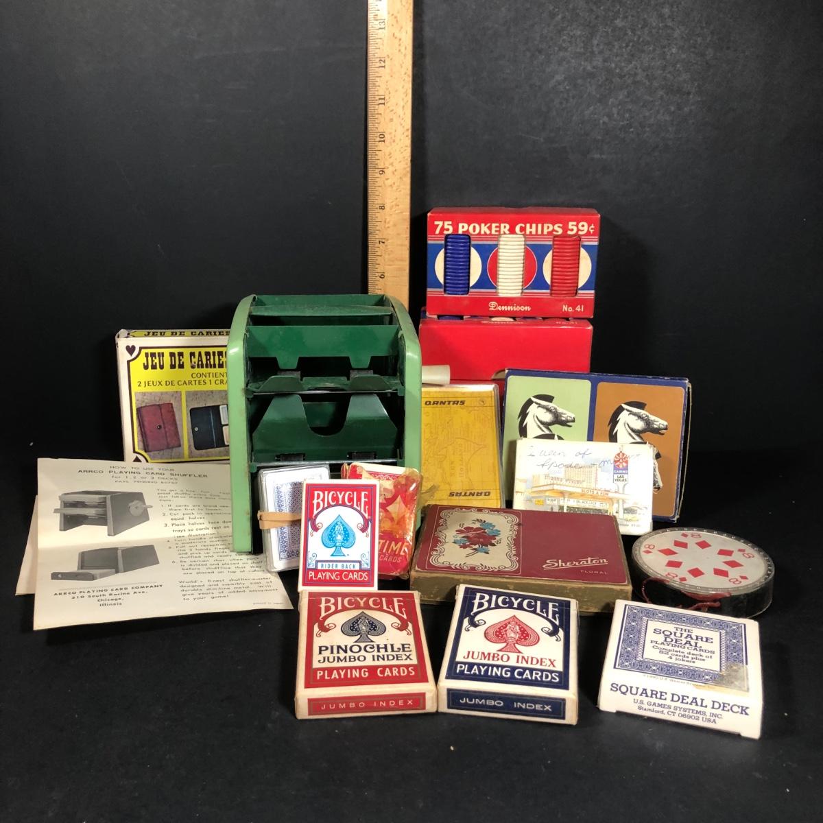LOT 204L: Vintage Cards, Poker Chips & Automatic Card Shuffler
