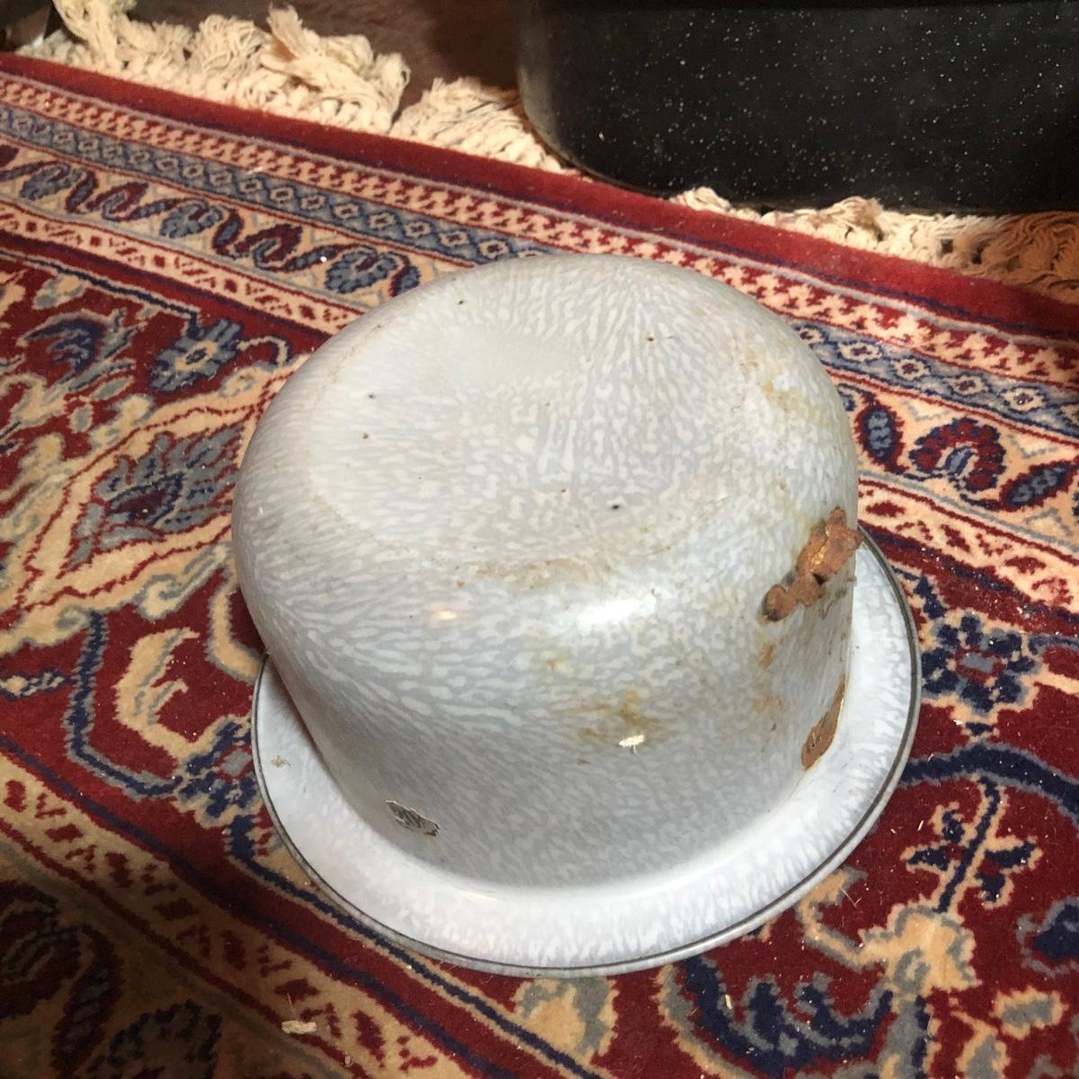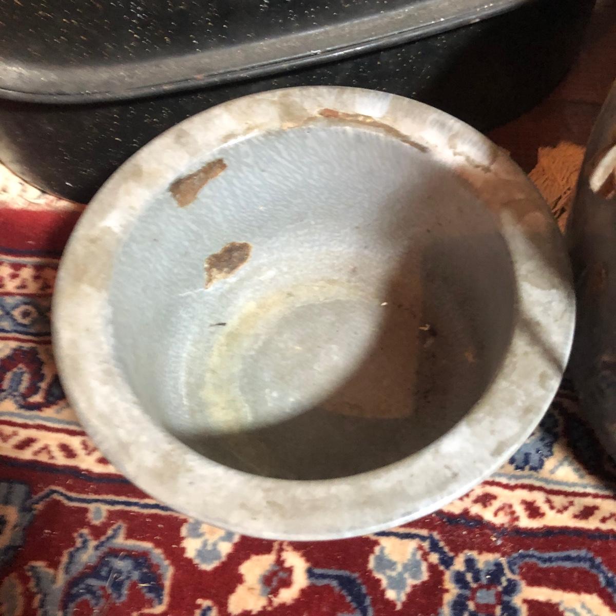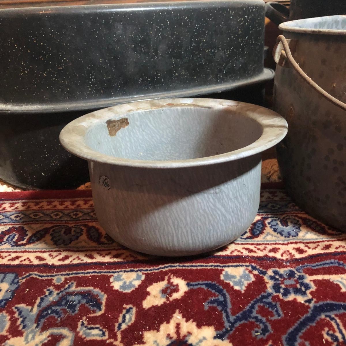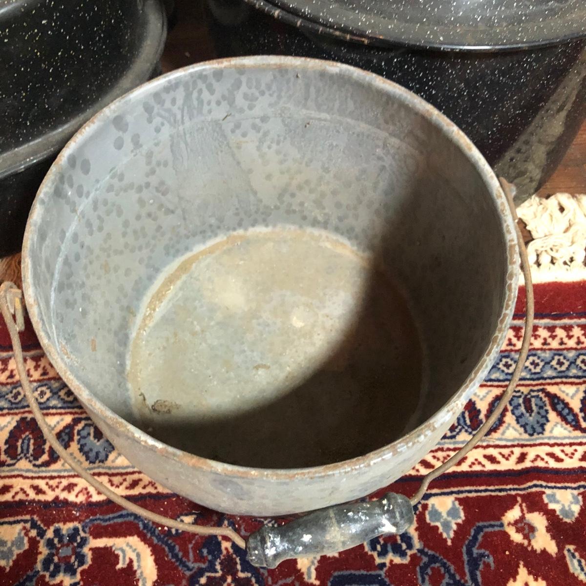 LOT 208L: Black Speckled Enamel Roasting Pan & Pot w/ Lid & More