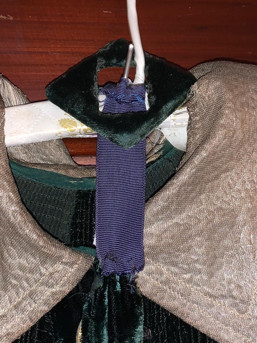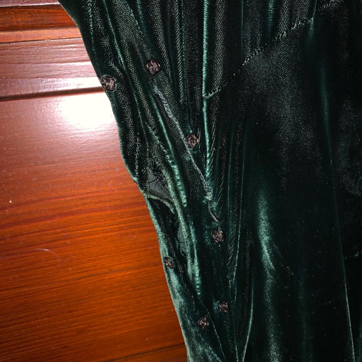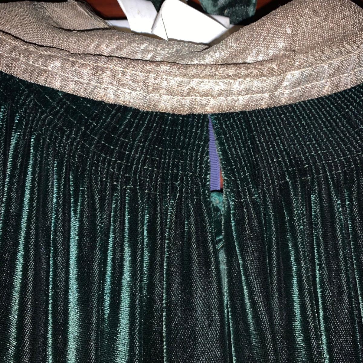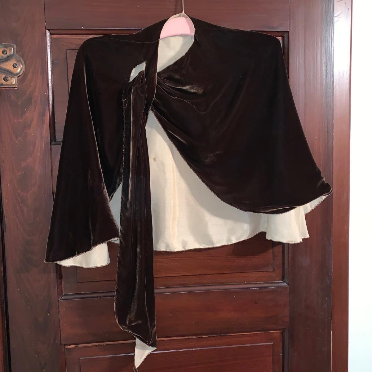 LOT 223 Y: Vintage Women's Emerald Velvet Dress W/ Belt & Dark Brown Shawl Wrap