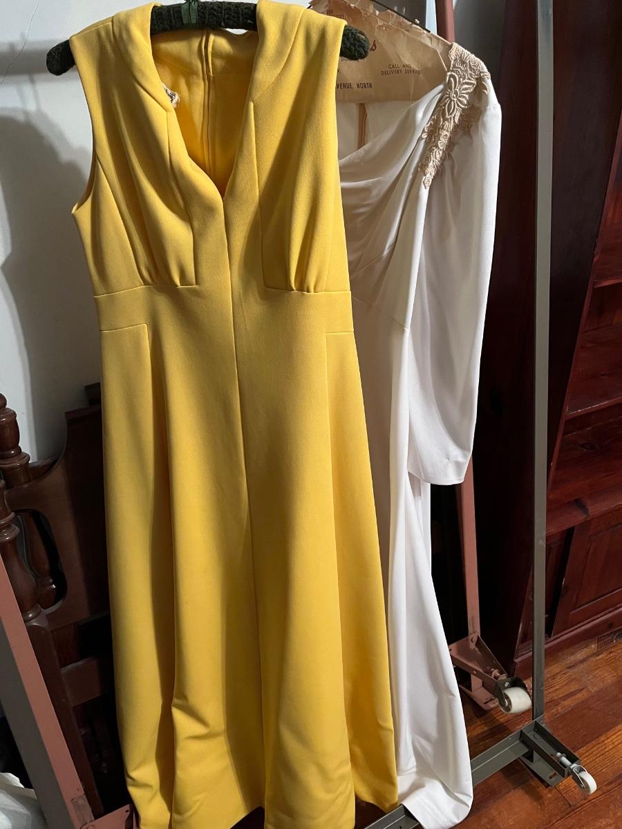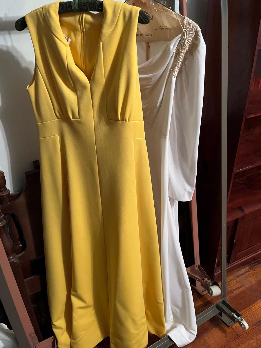 Sizes unknown. Yellow Dress is from Alison Ayres Originals