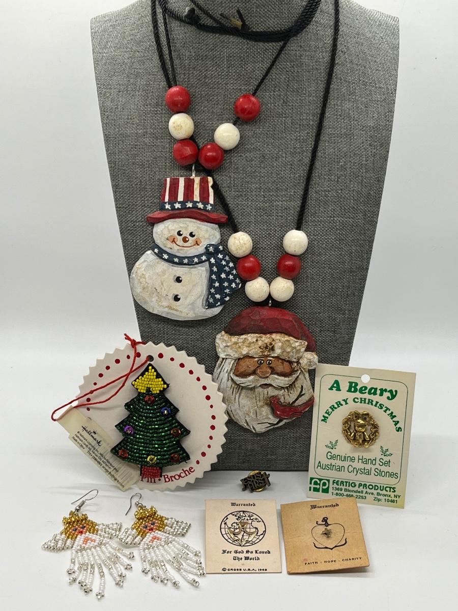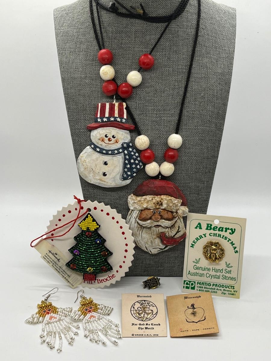 LOT 299J: Holiday and Religious Themed Necklaces, Pins and Earrings