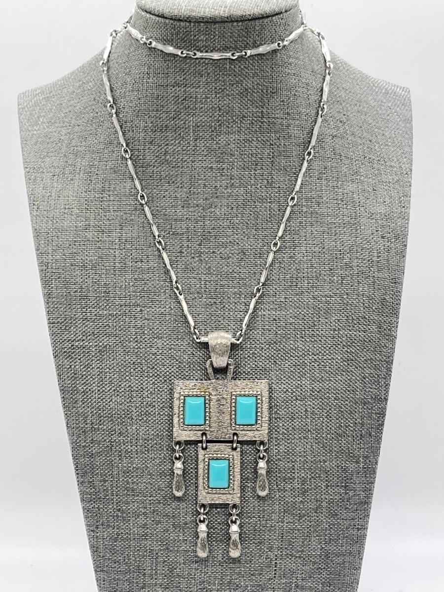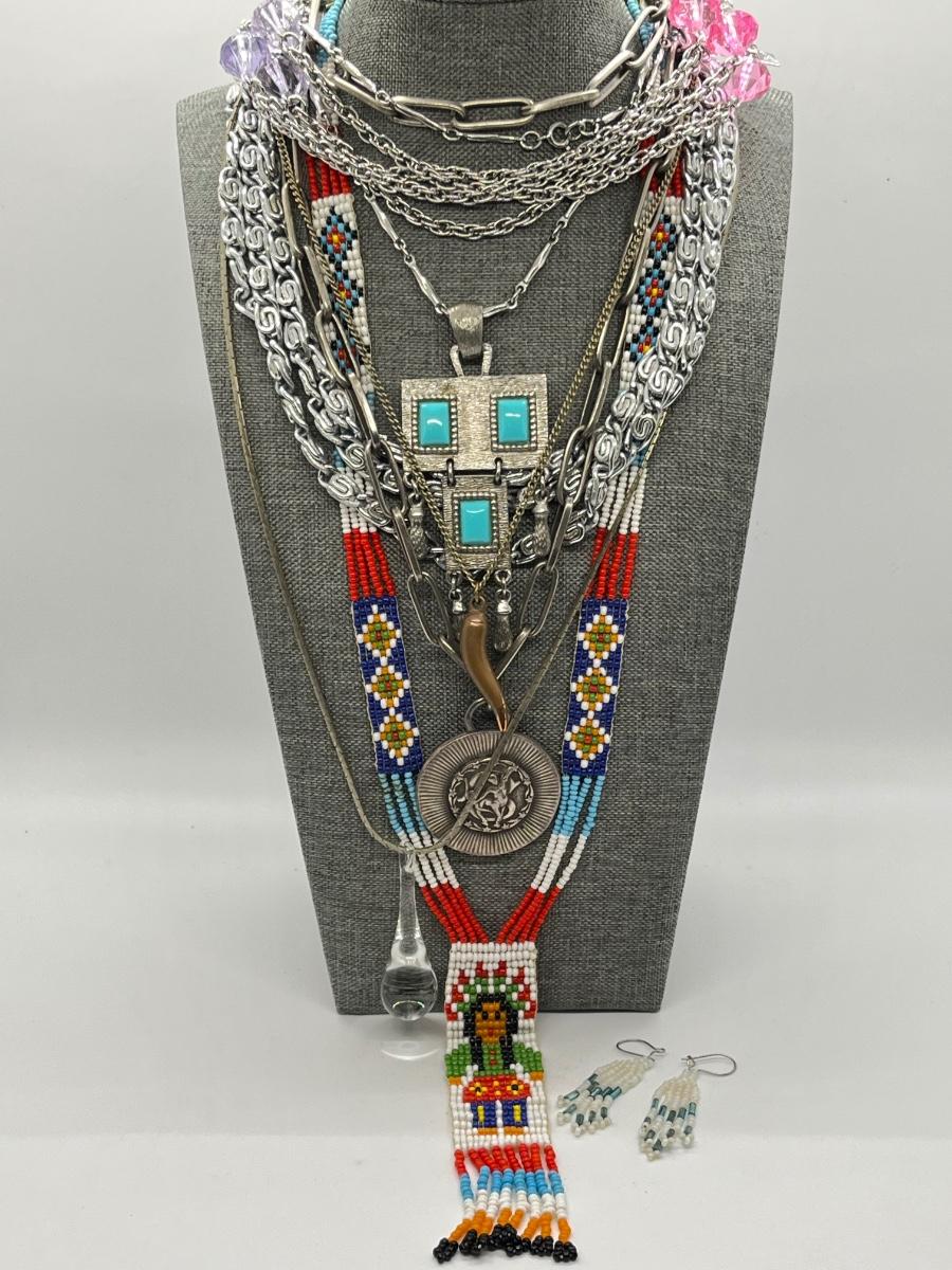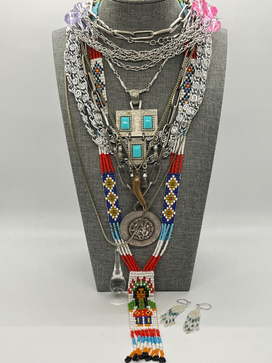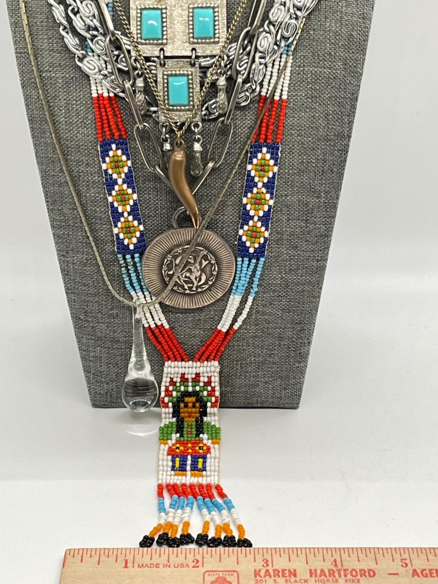 LOT 302J: Silvertoned and Beaded Necklaces with Large Unique Pendants: Sara Coventr, Native American and More