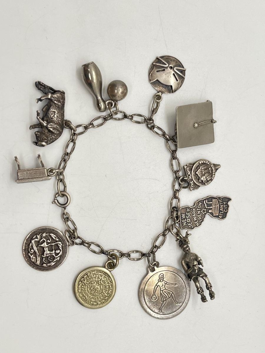 LOT 315J: Silver Charm Bracelet: Bracelet and Most Charms Marked Sterling - 43.43 GTW