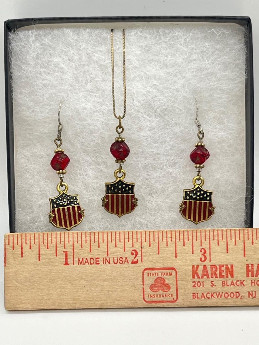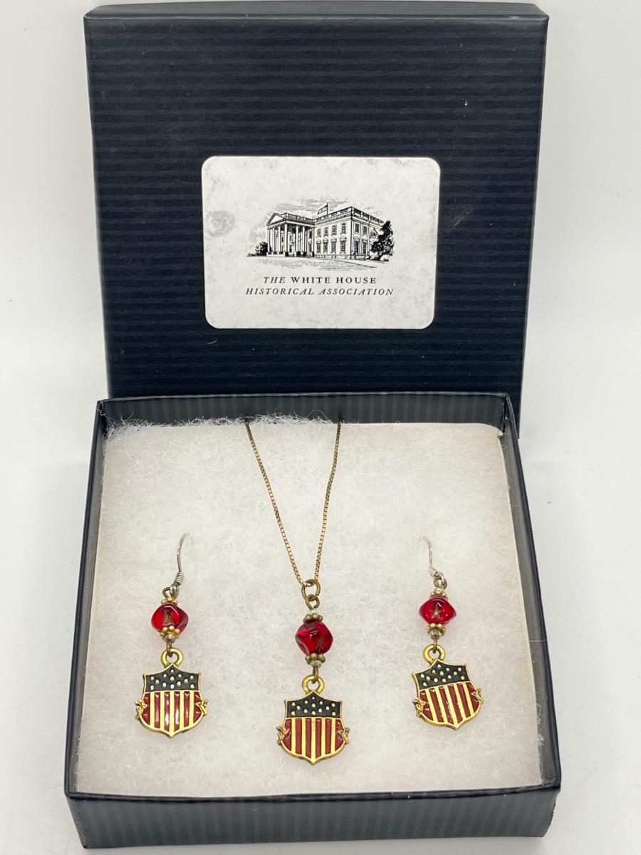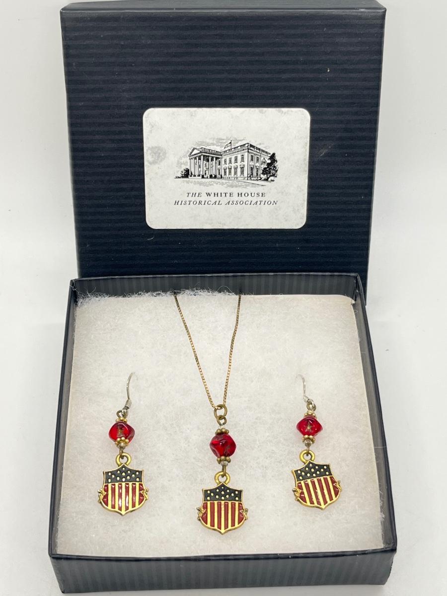 LOT 317J: White House Historical Association Earrings and Pendant Set on 14K Gold Chain