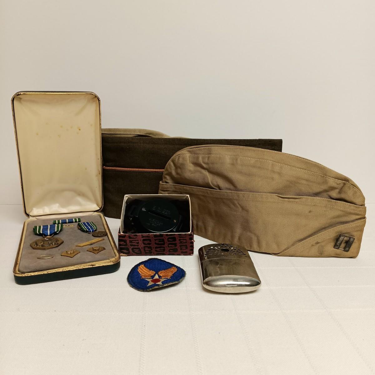 LOT:7: Vintage Militaria Including Garrison Caps, Metals, Patch, Pins and More