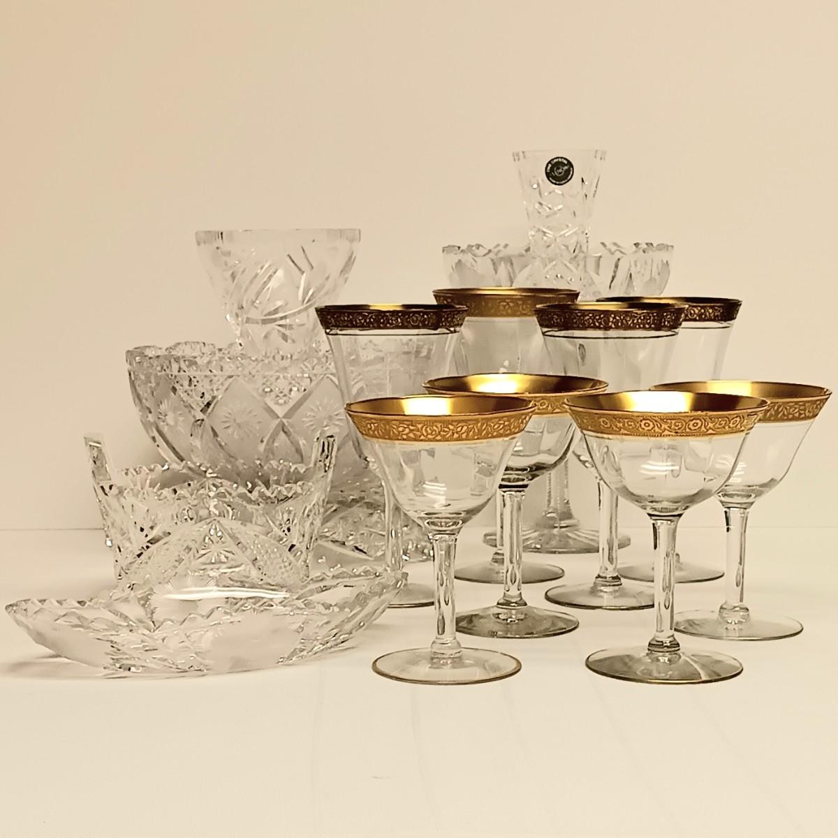 LOT:9: Beautiful Cut Glass Crystal Featuring a Lenox Vase and Gold Rimmed Steamwear