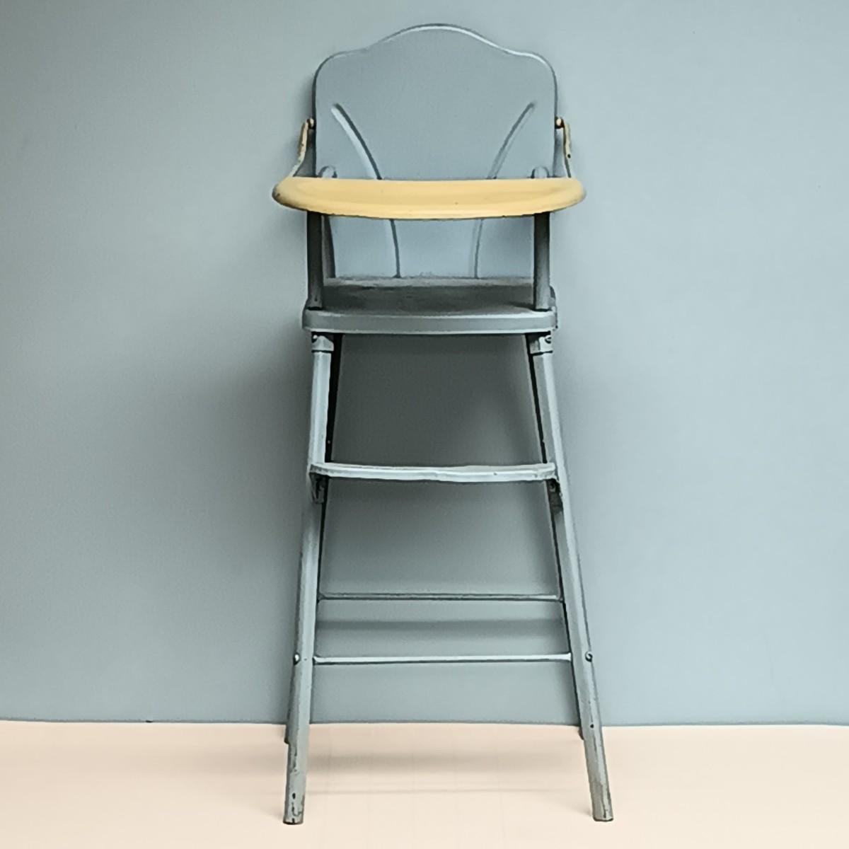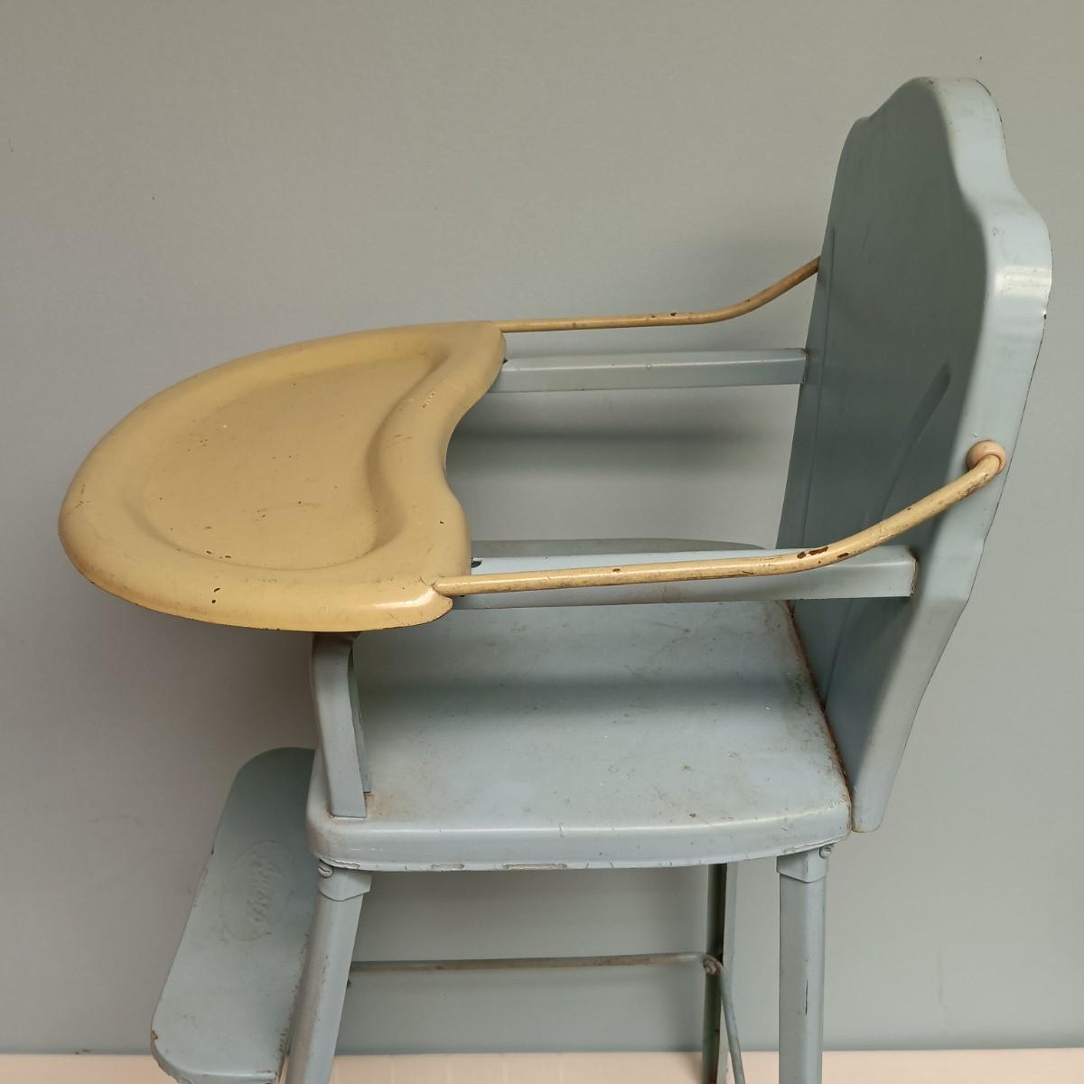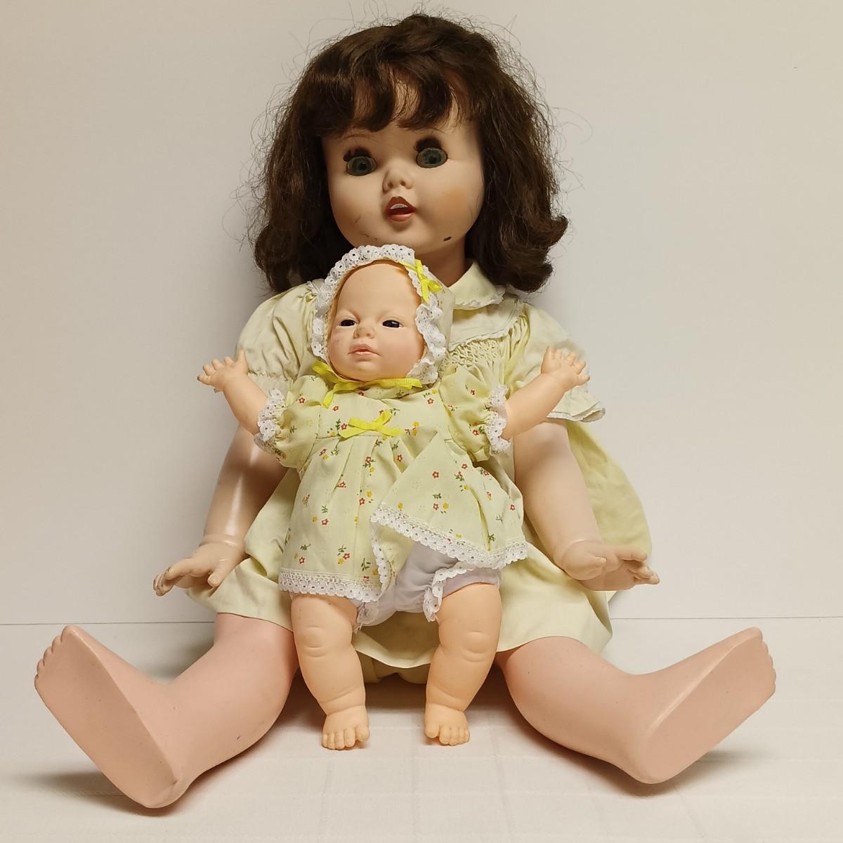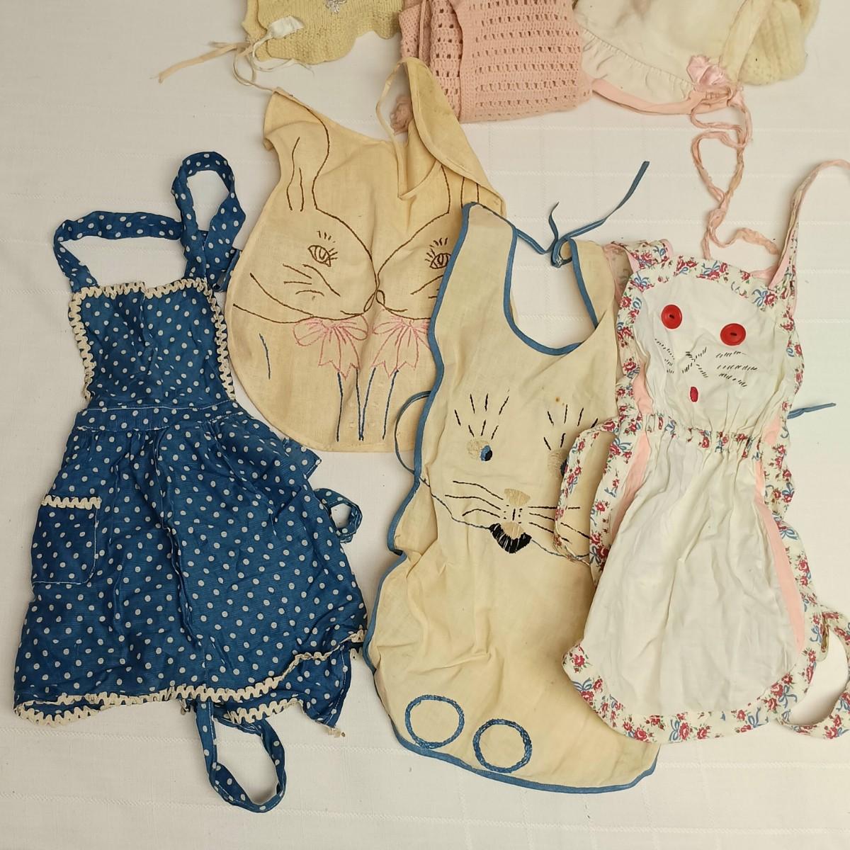 LOT:10: Vintage Baby Doll Collection with 2 Dolls, a Baby Bear, a Doll Highchair with Tray and Vintage Baby Clothing