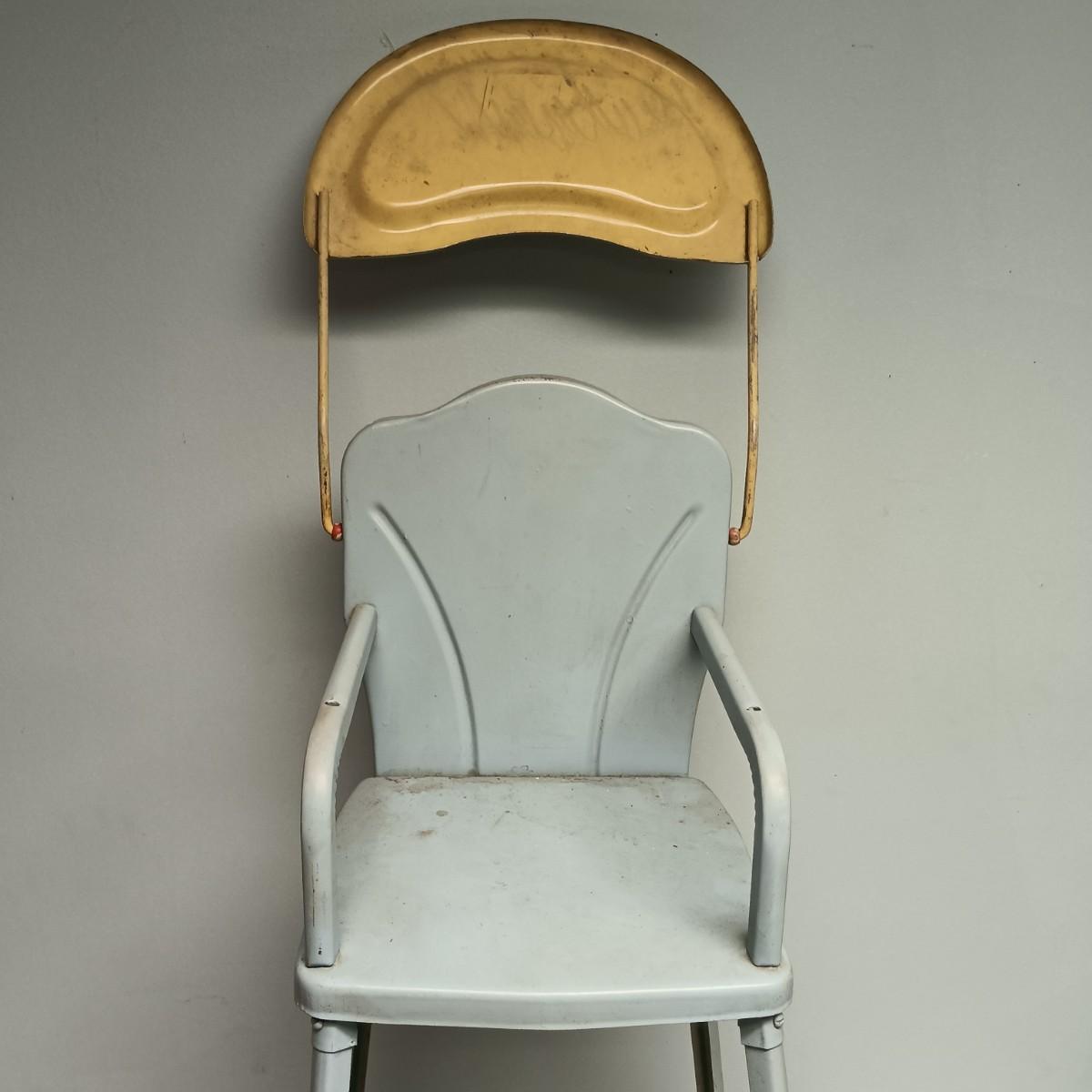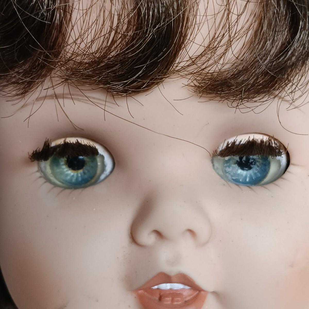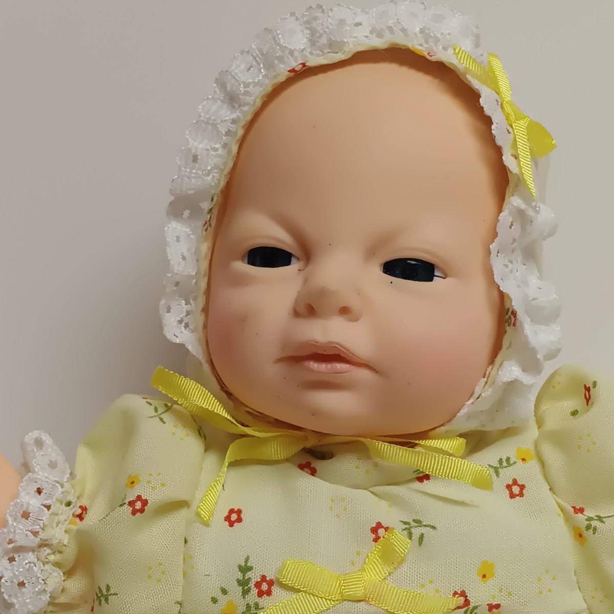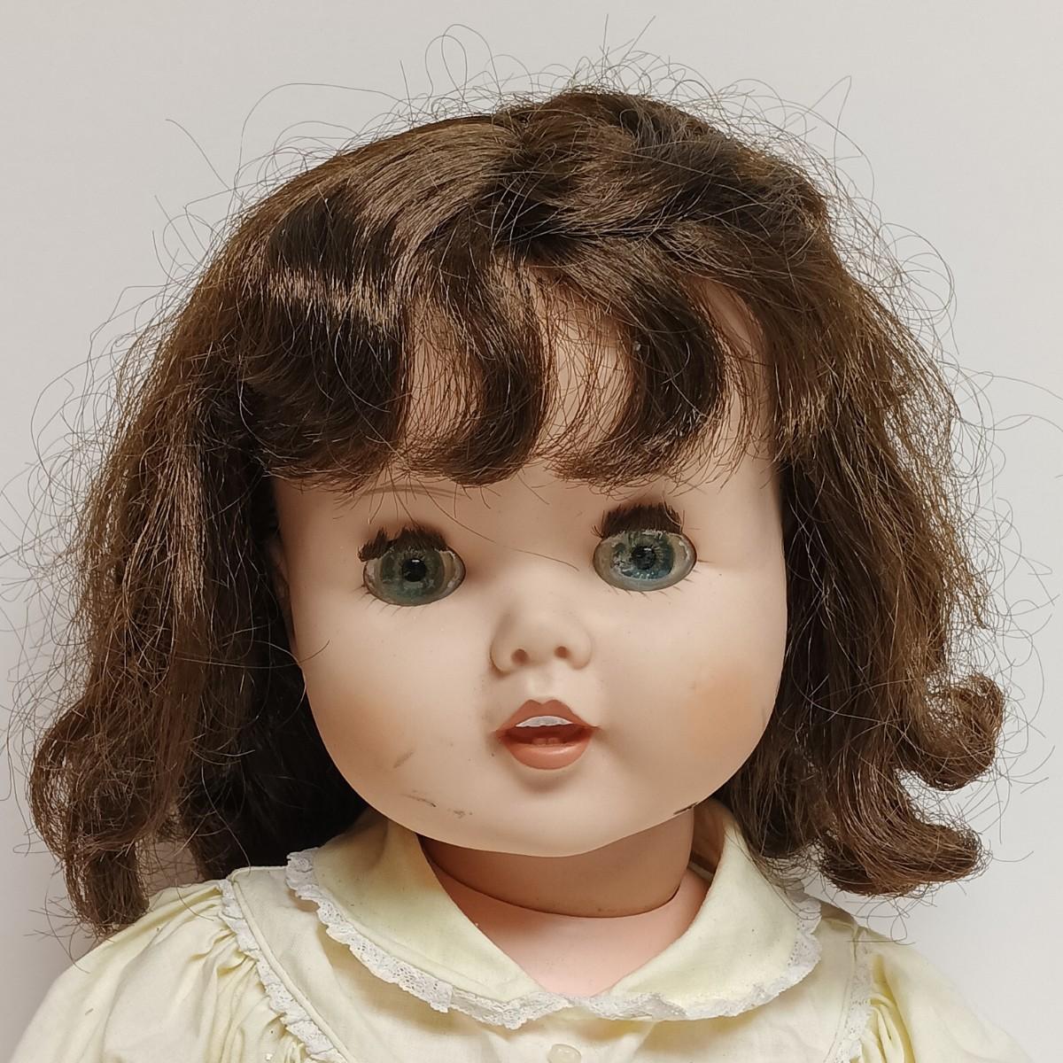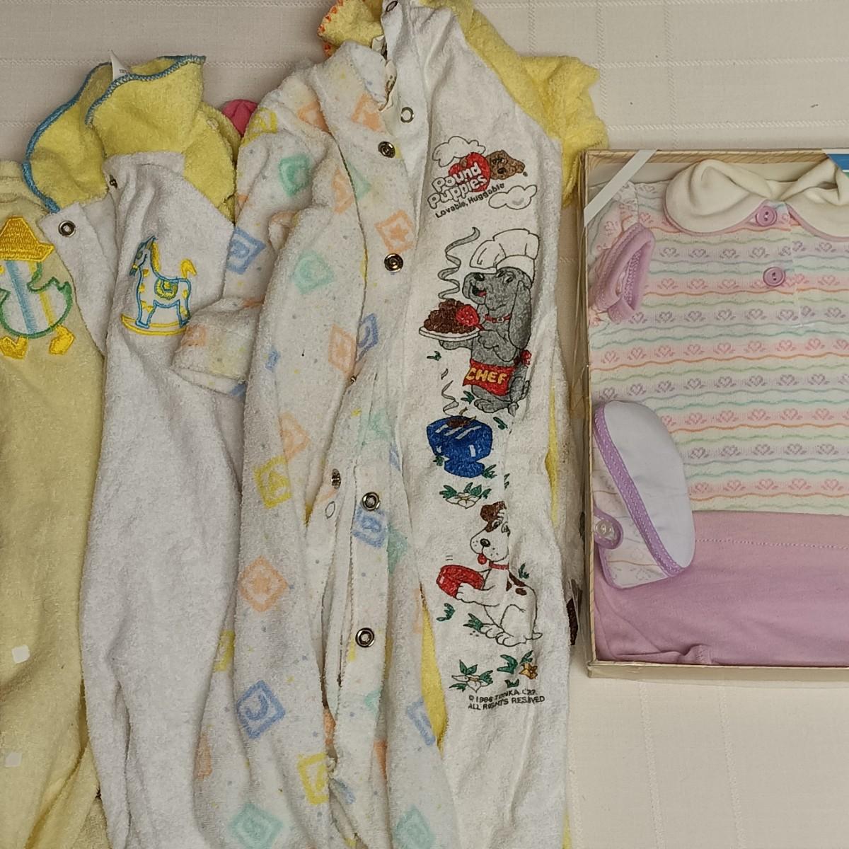 LOT:10: Vintage Baby Doll Collection with 2 Dolls, a Baby Bear, a Doll Highchair with Tray and Vintage Baby Clothing