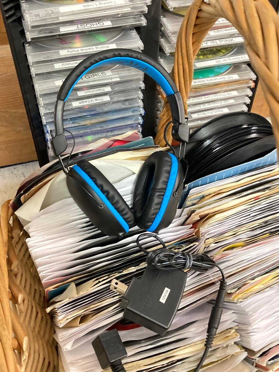 LOT 17: Large Collection of CD's, DVD's, 45's and Headphones