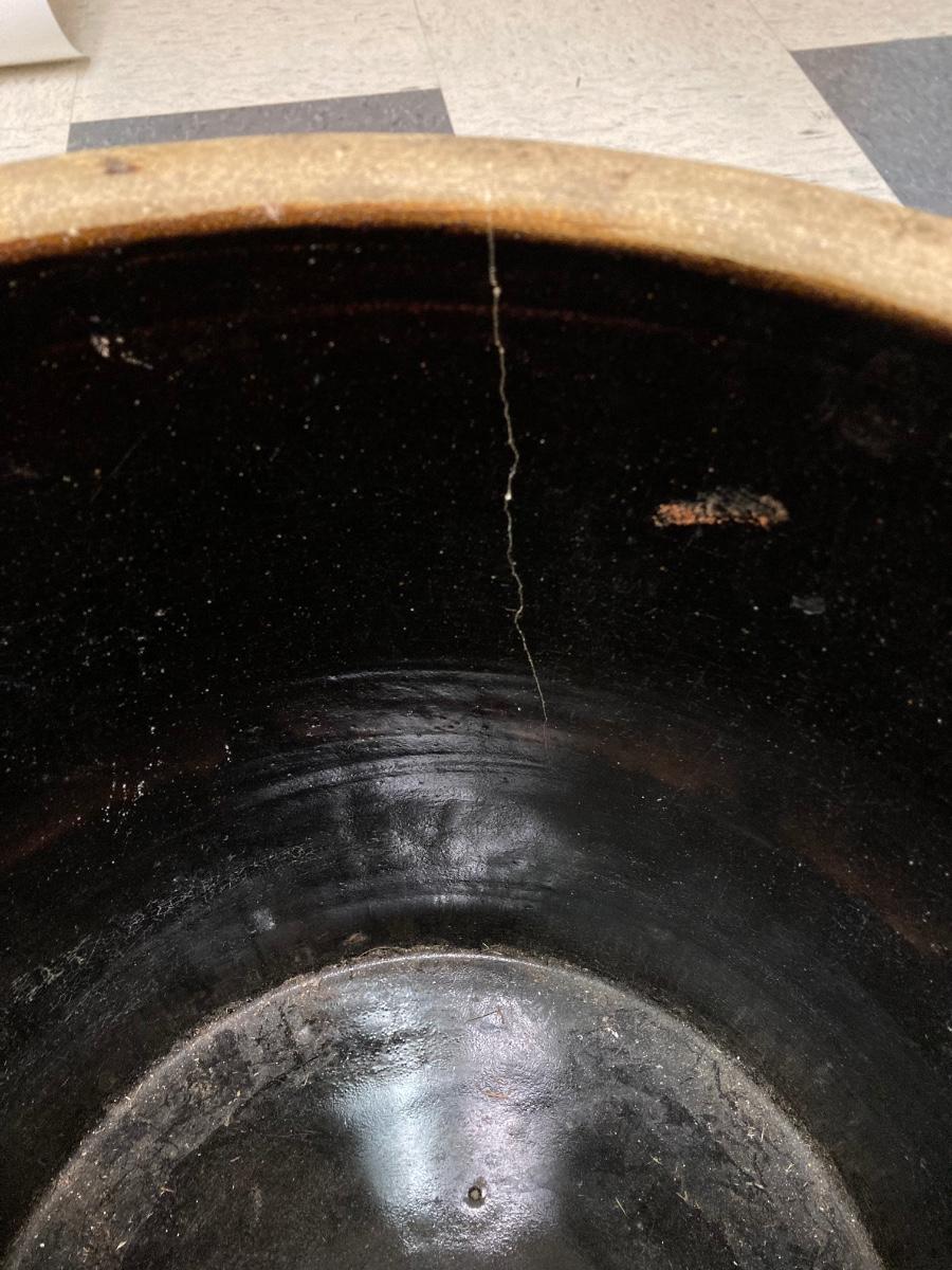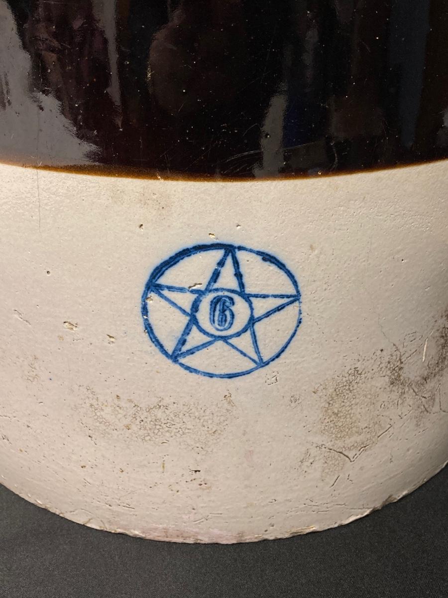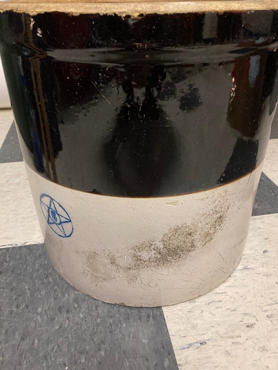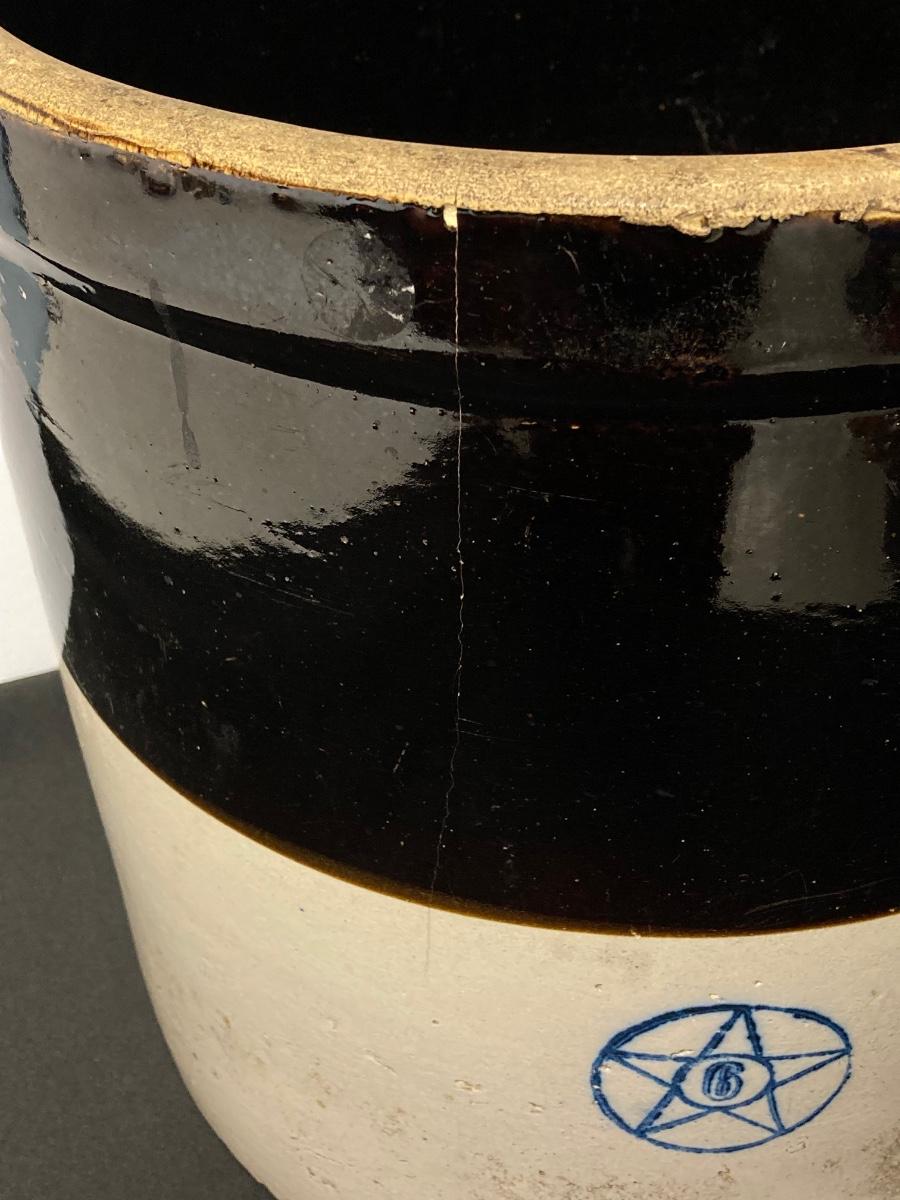 LOT 23: Large Salt Glaze Blue Star Stoneware 6 Gallon Crock and Stoneware Crock