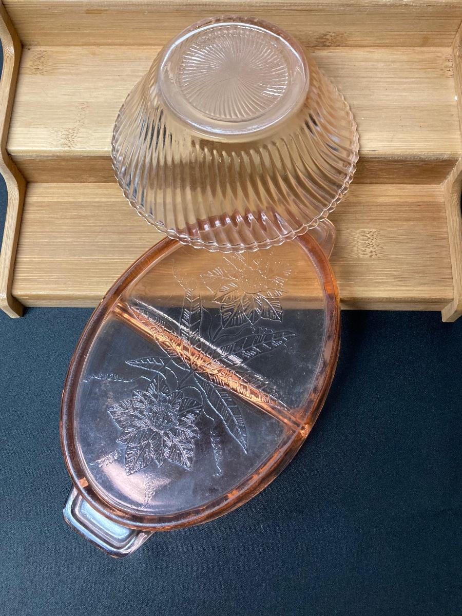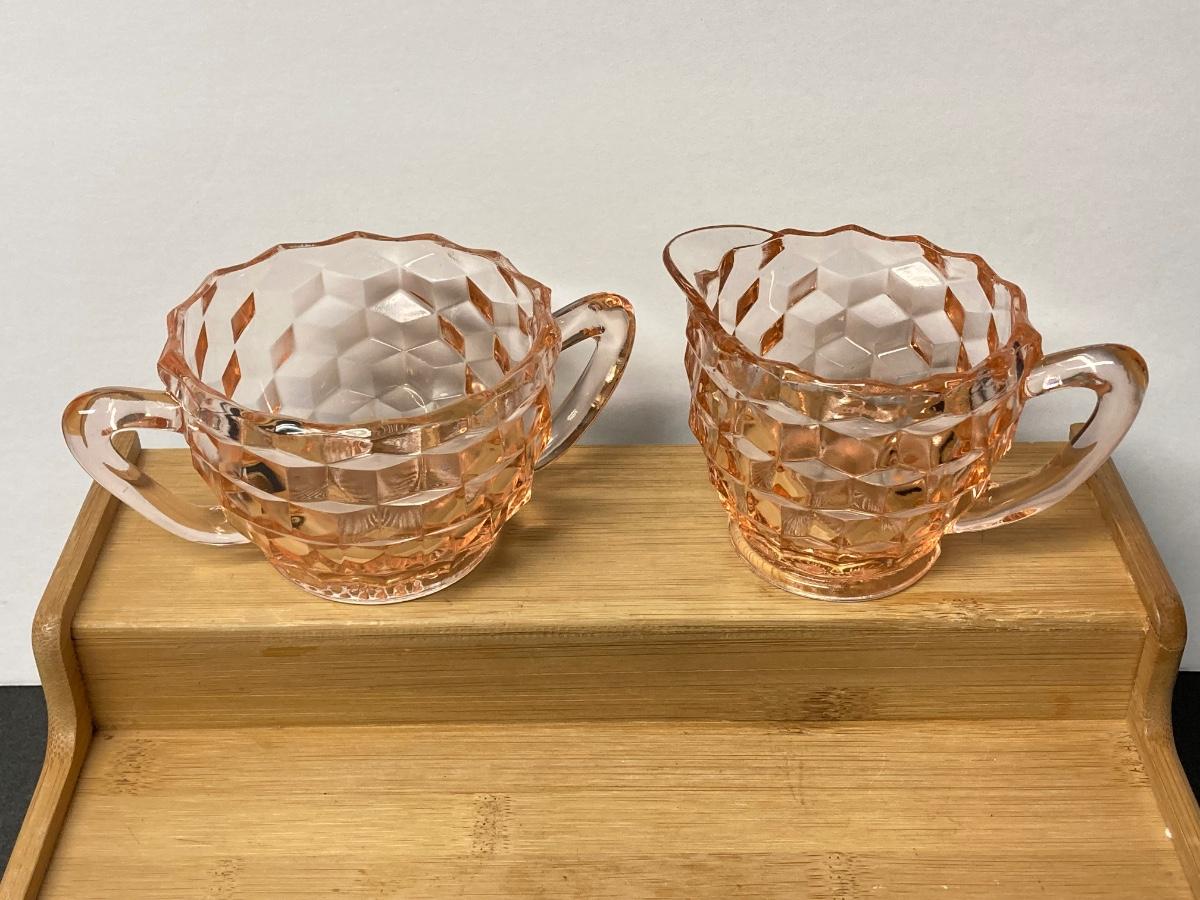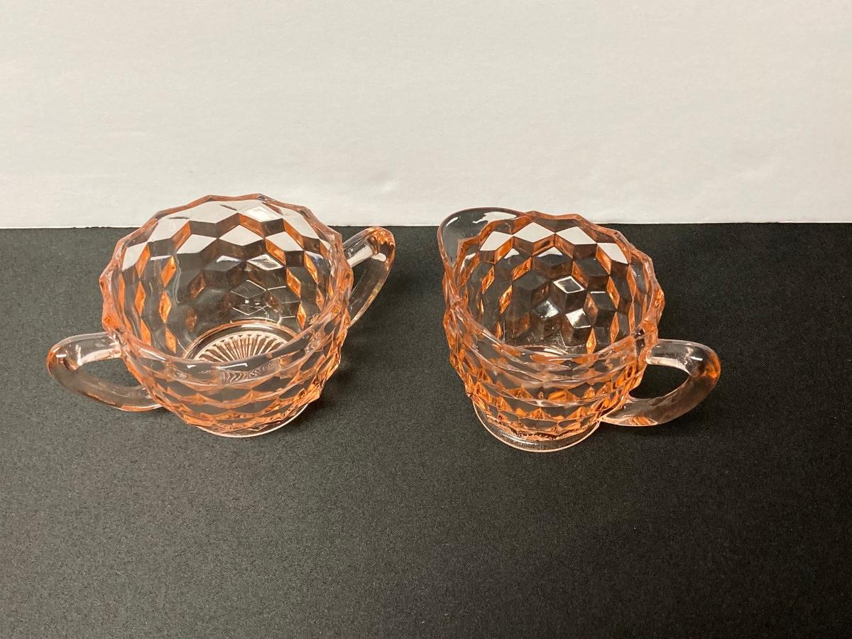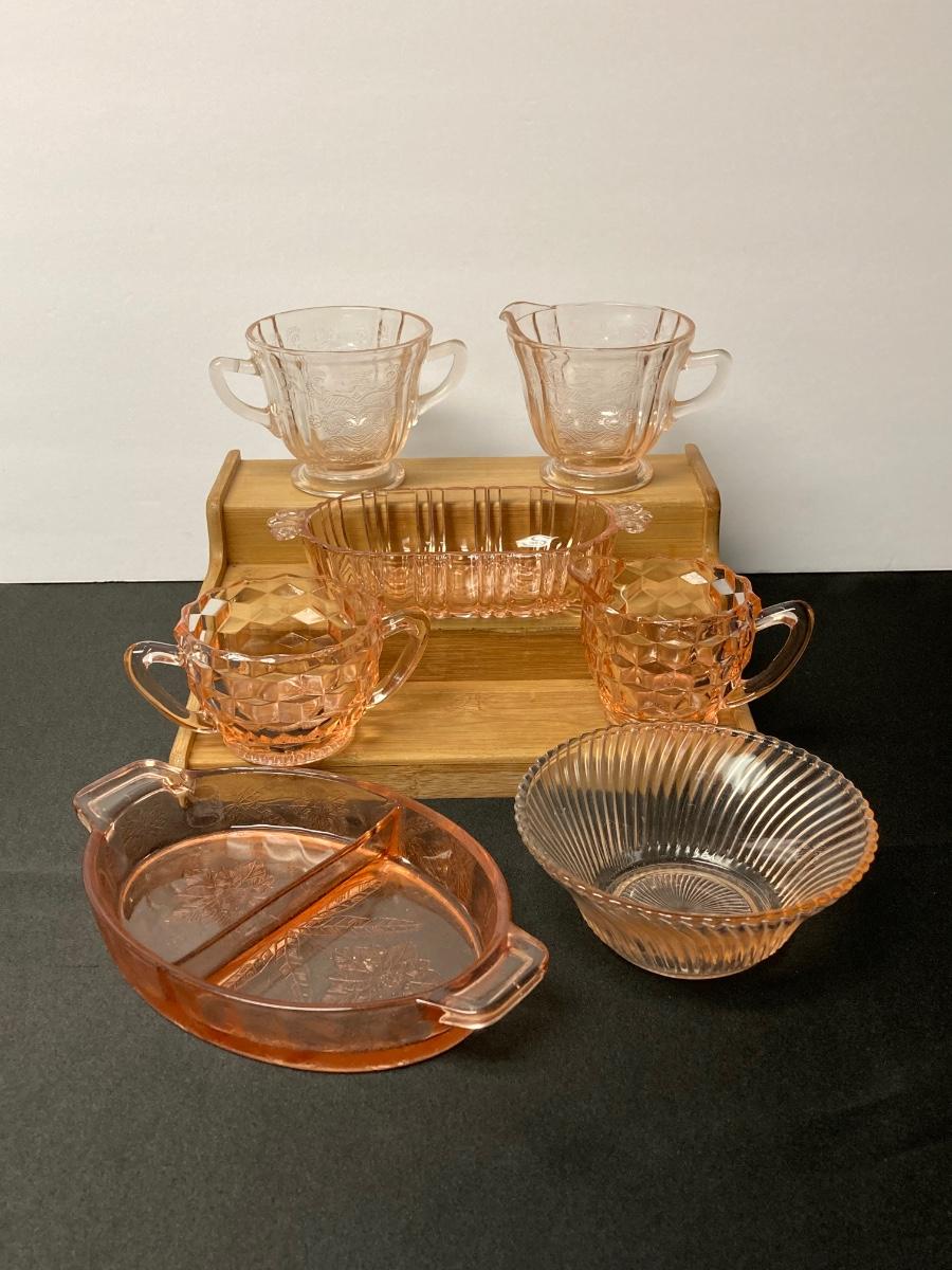 LOT 25: Collection of Pink Depression Glass - Cream & Sugar Bowls, "Old Cafe" and More