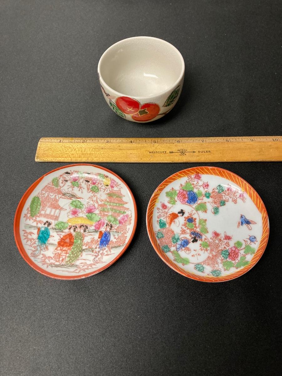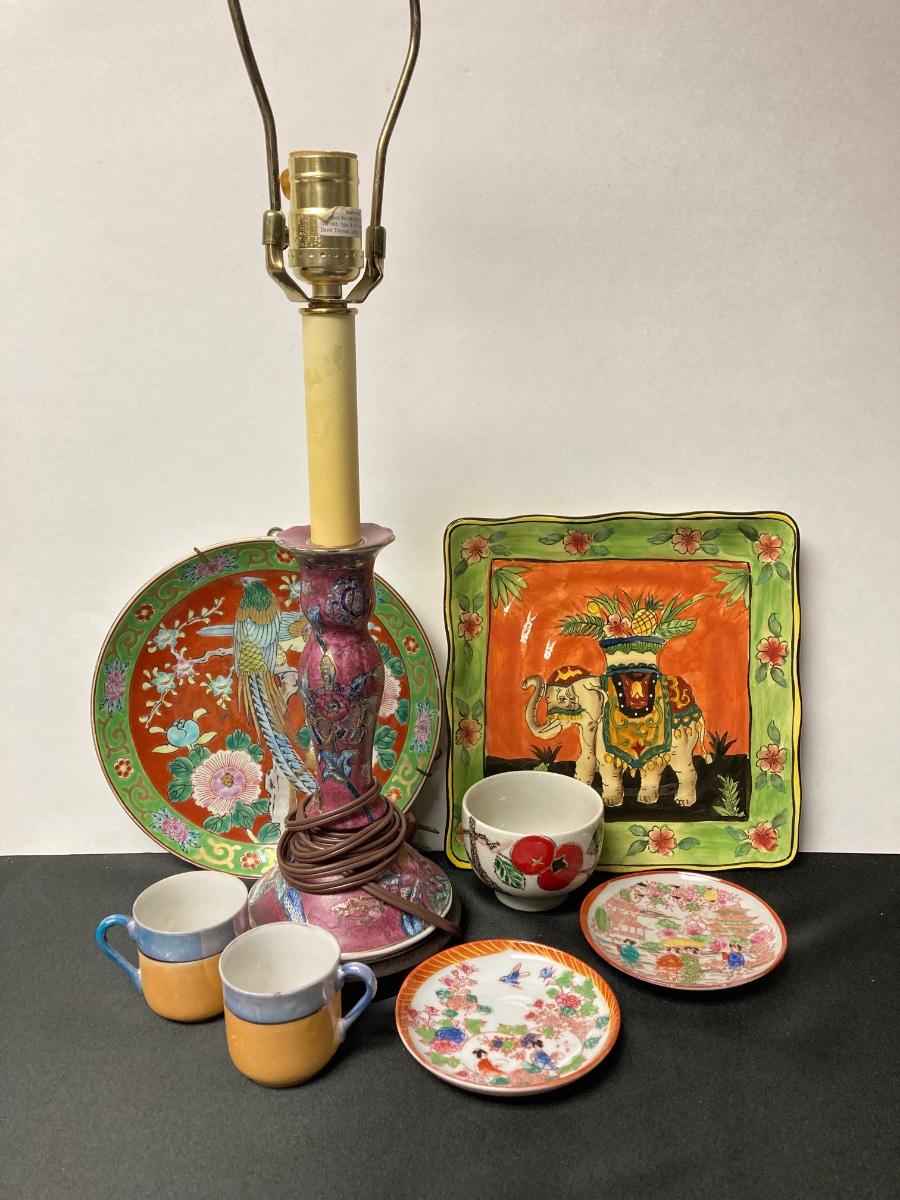 LOT 48: Hand Painted Collection of Plates, Cups and More