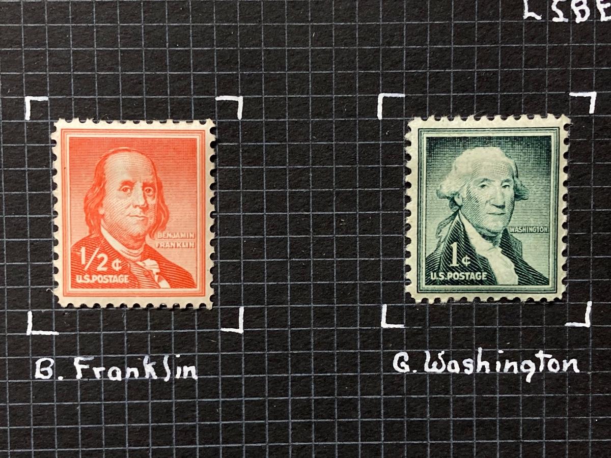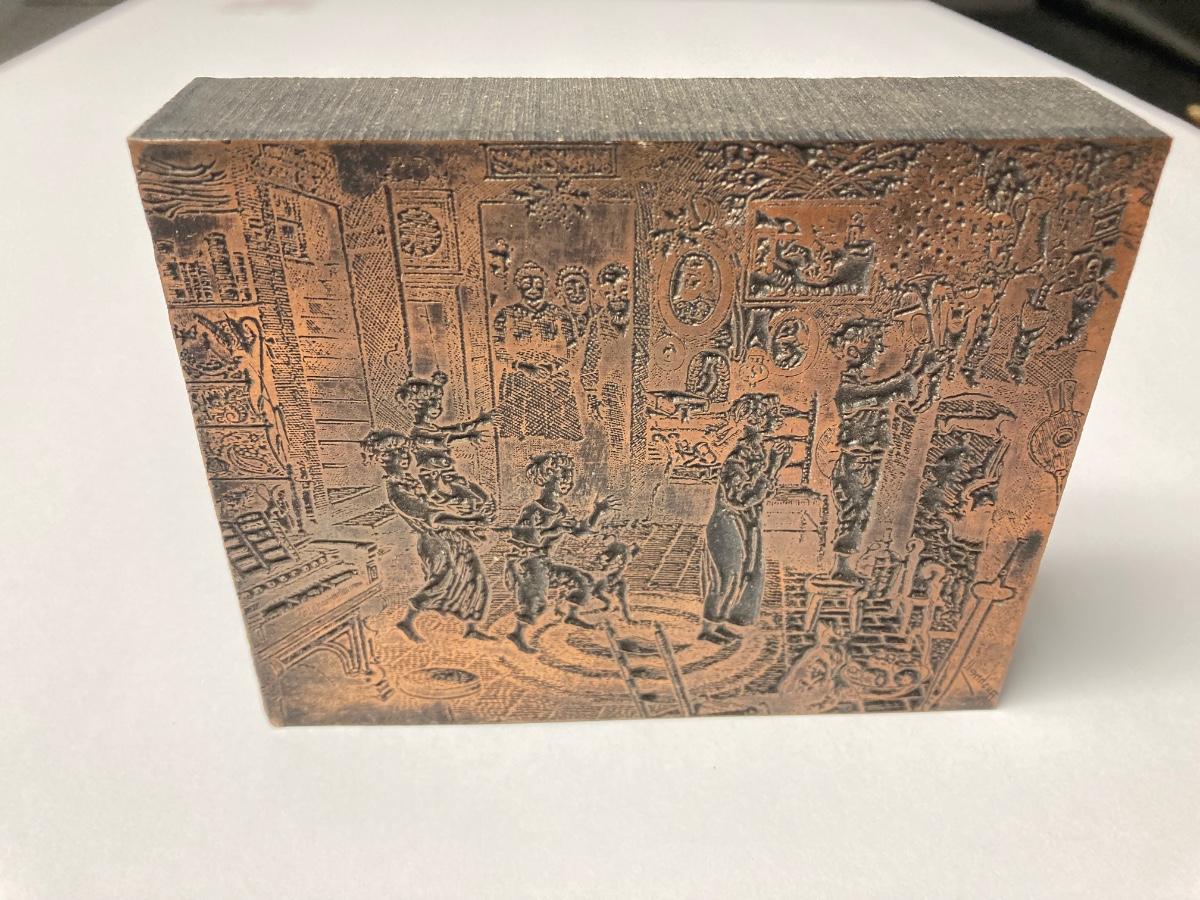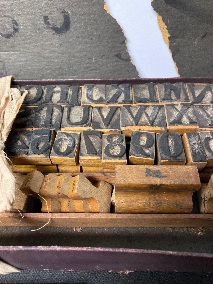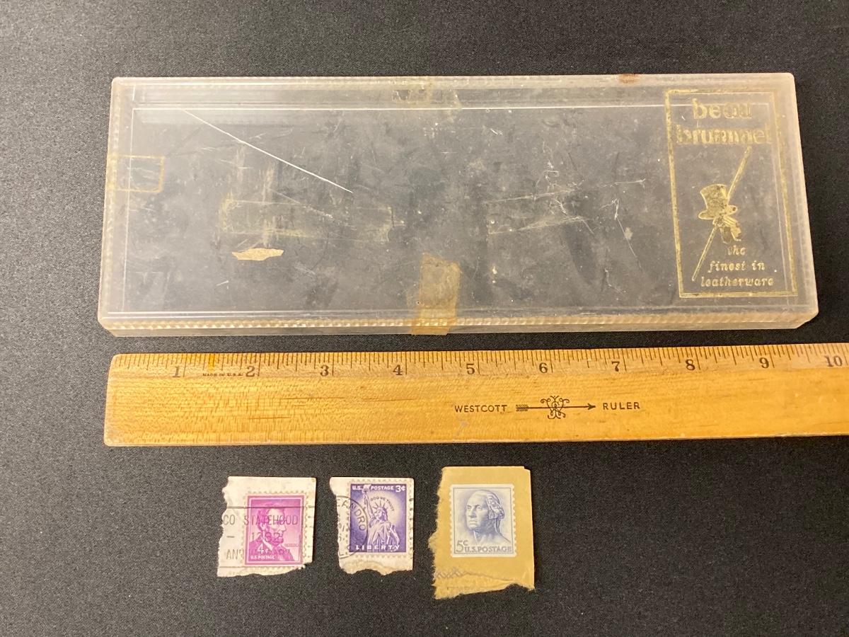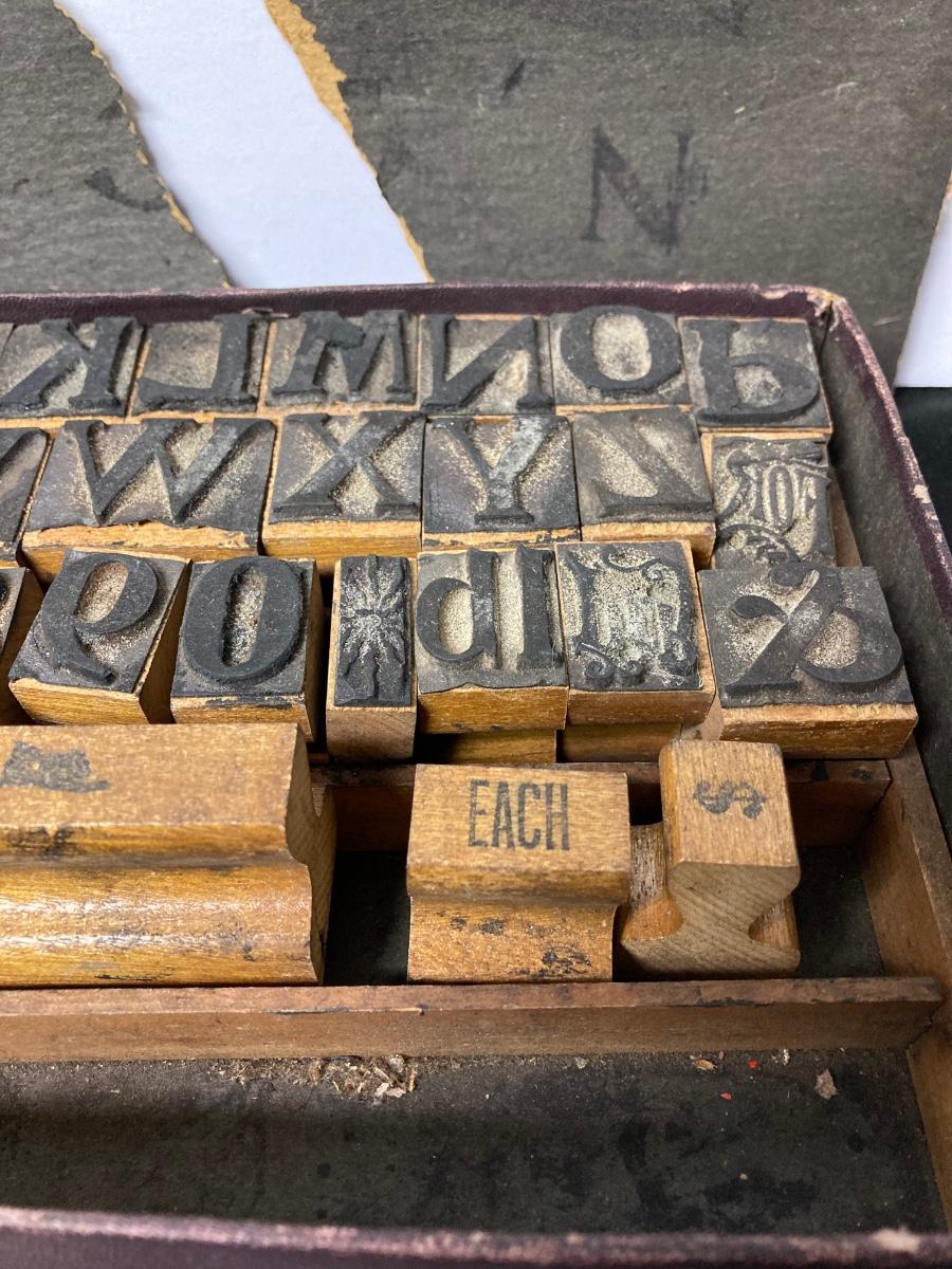 LOT 54: Antique Printer's Stamp Set & Block Stamp, Gold Foil Stamps: Richard Tucker, Rosa Ponselle, Lawerence Tibbet, Liberty Issue Stamps (in frame w/no glass)