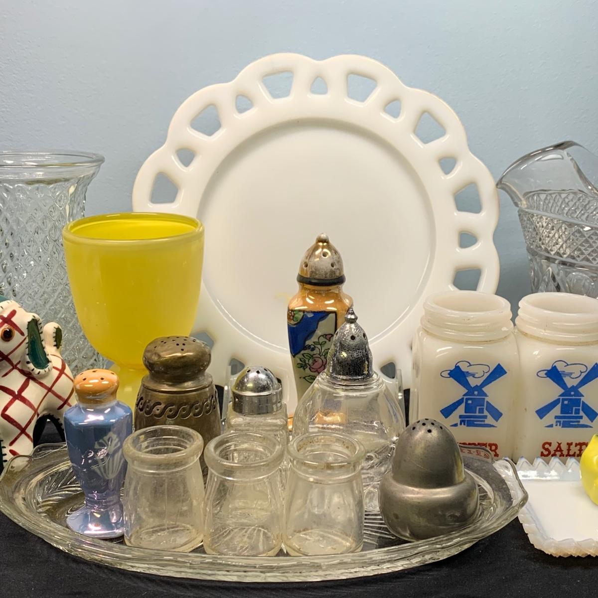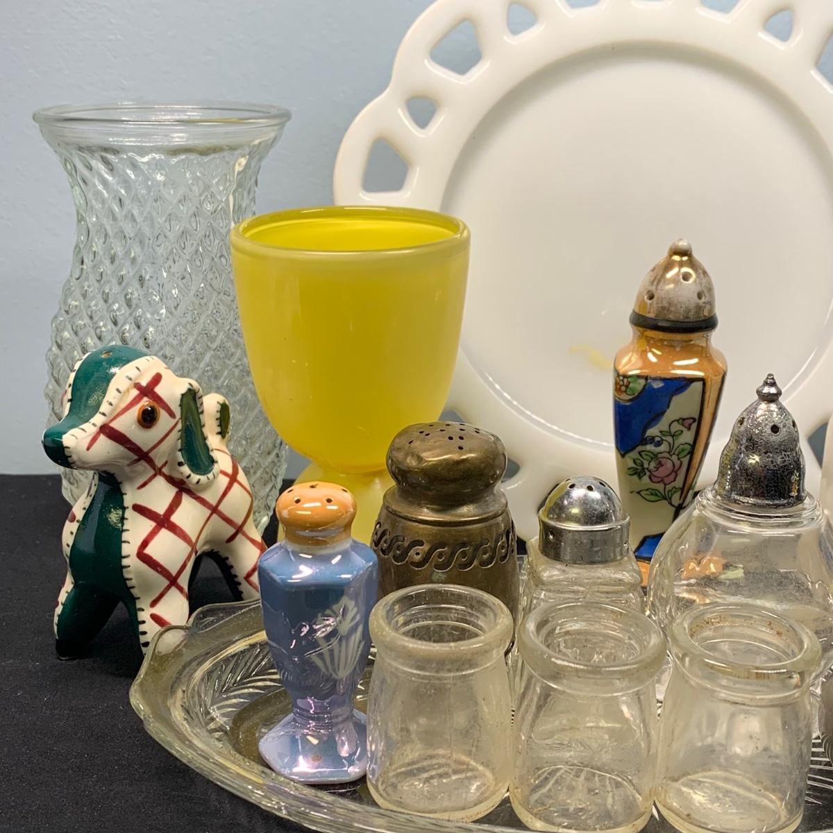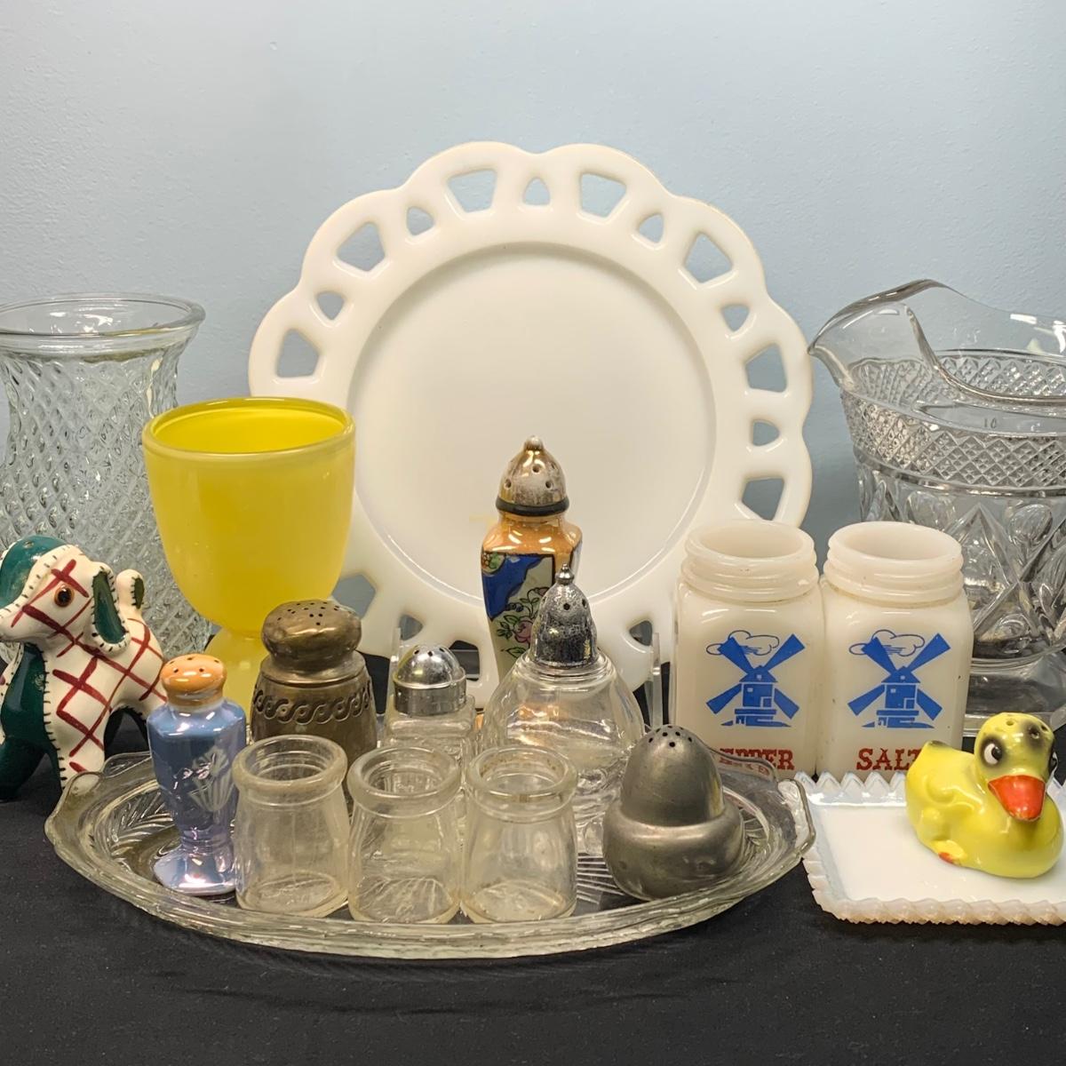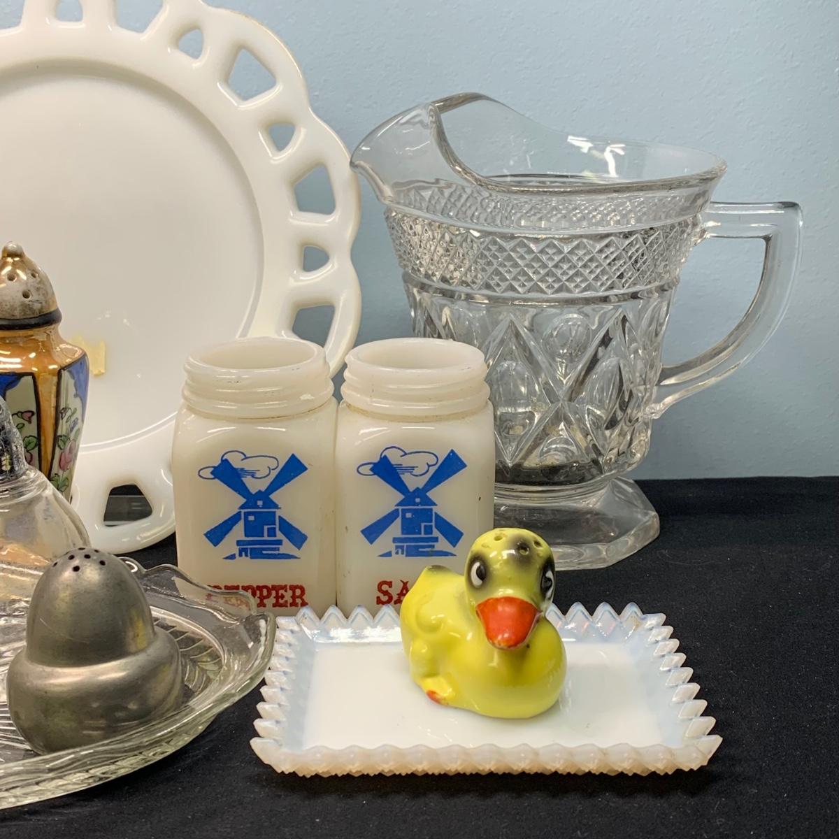 LOT 61: Milk Glass Salt/Pepper (no lids), Glass Restaurant Coffee Creamers, Egg Cups & More