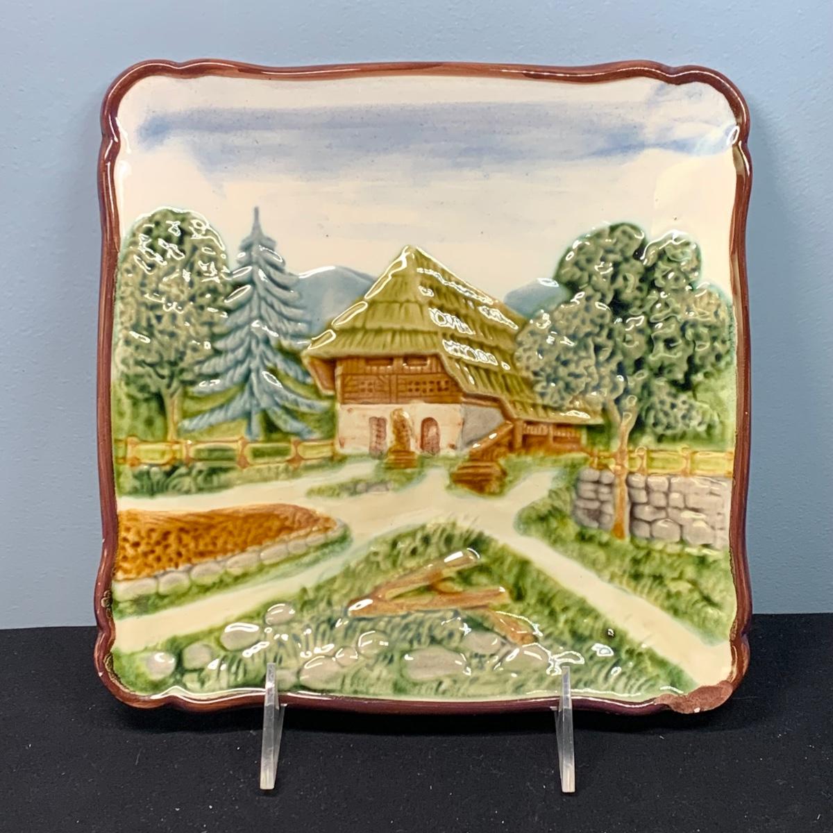 Square Majolica Plate is chipped as pictuted.