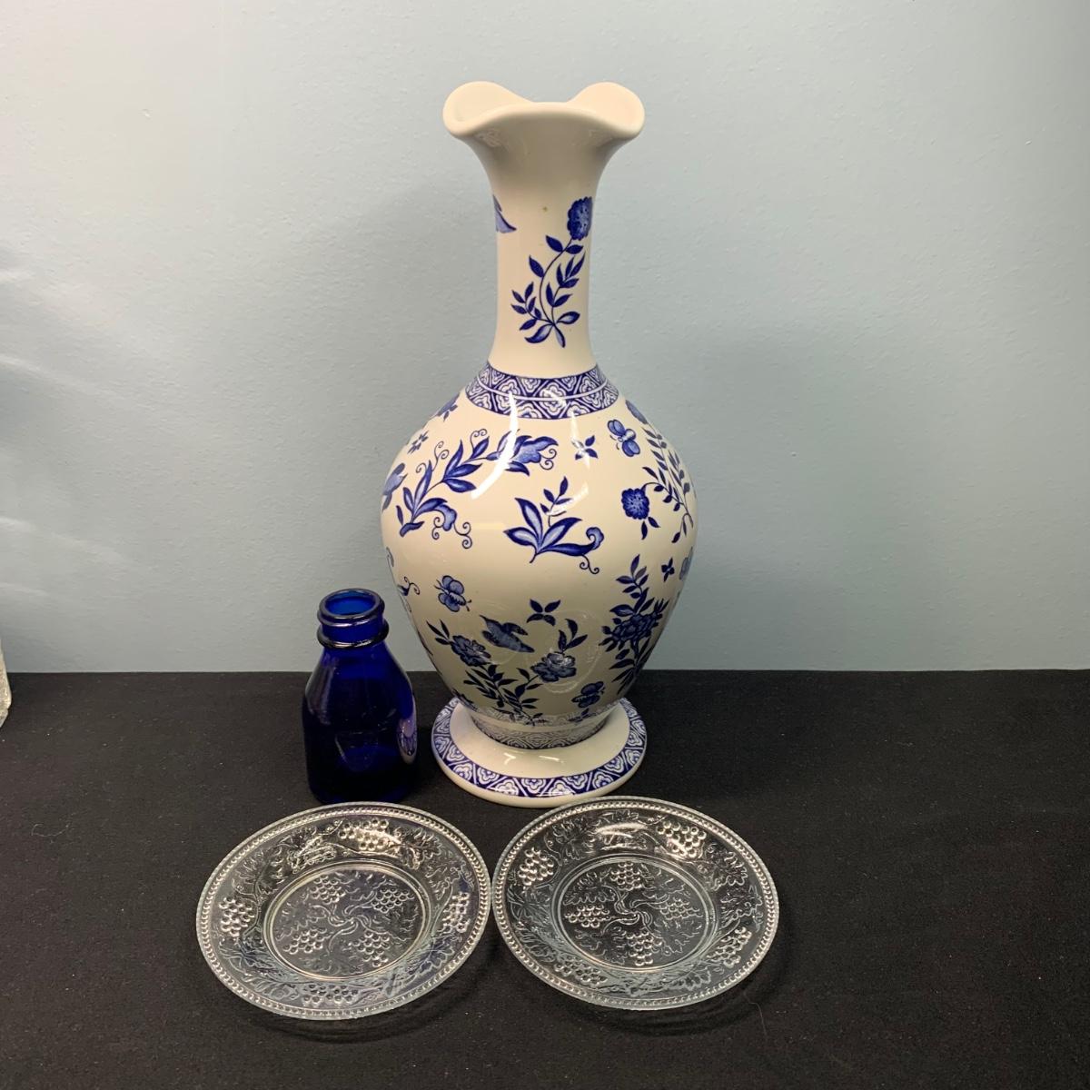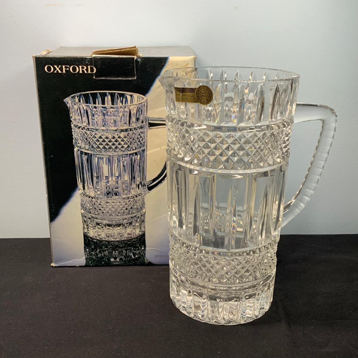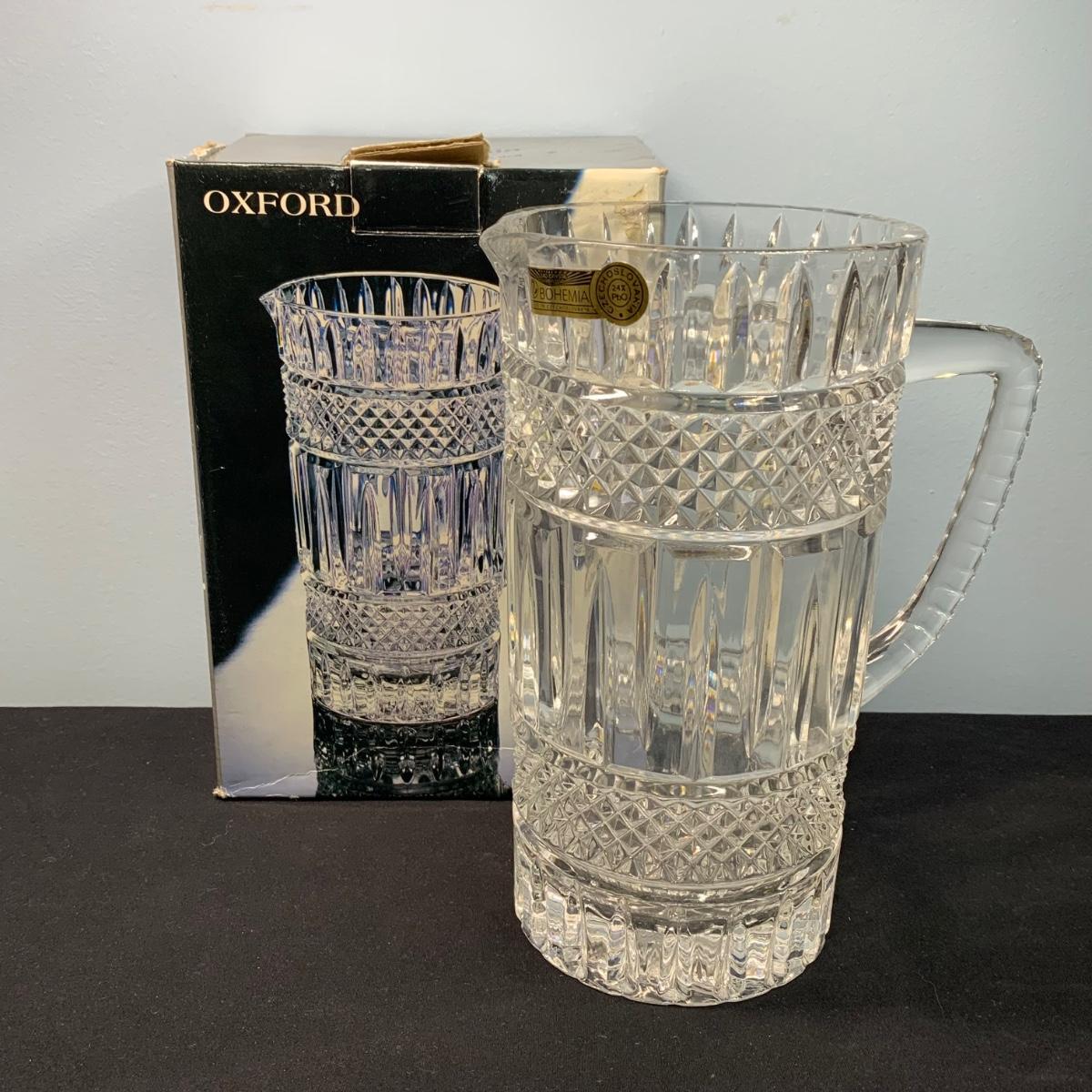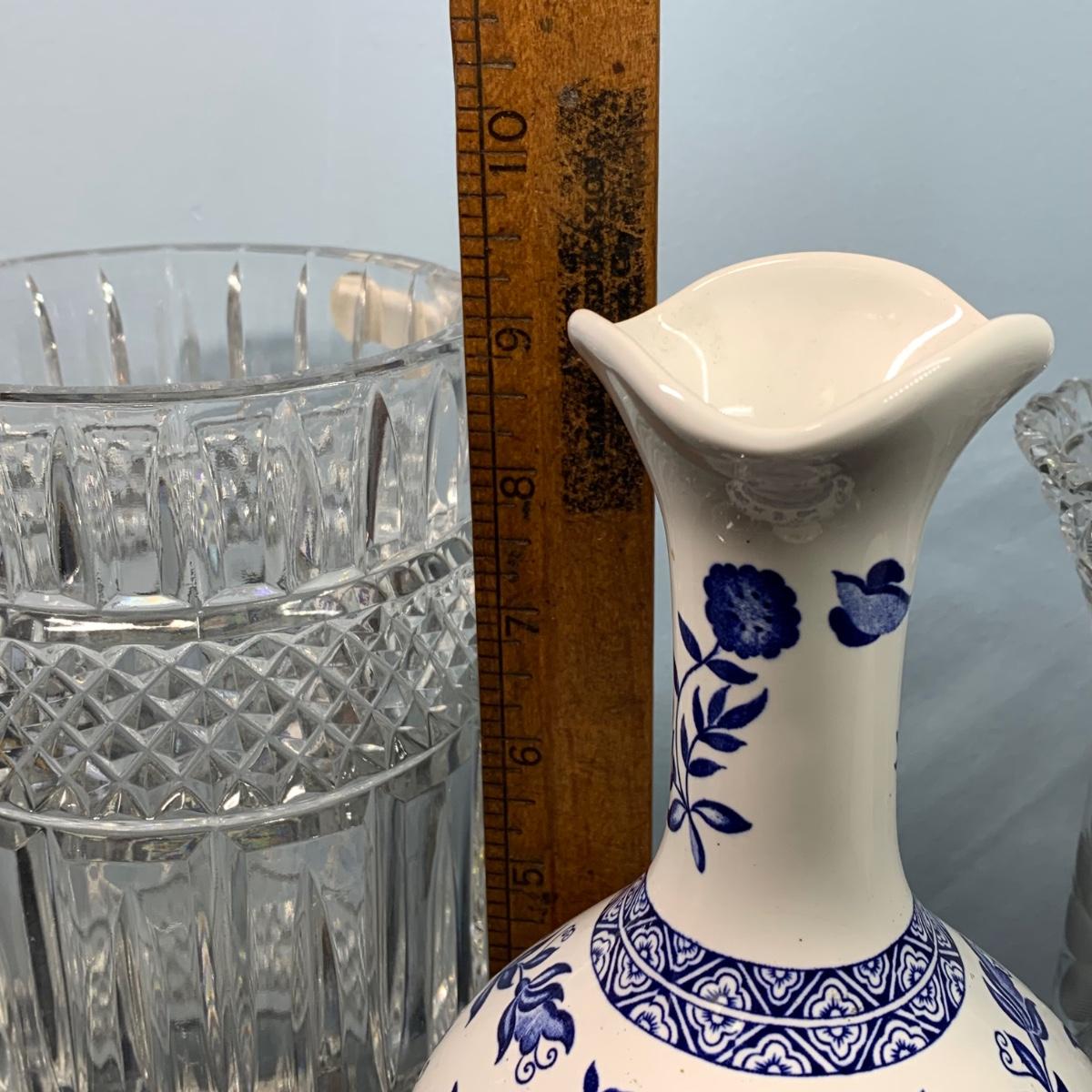 LOT 65: Blue Floral Coal Port Limited Edition Vase, Bohemia Crystal Pitcher, Gorham Cut Glass Bowl w/Silver Plate Rim & More