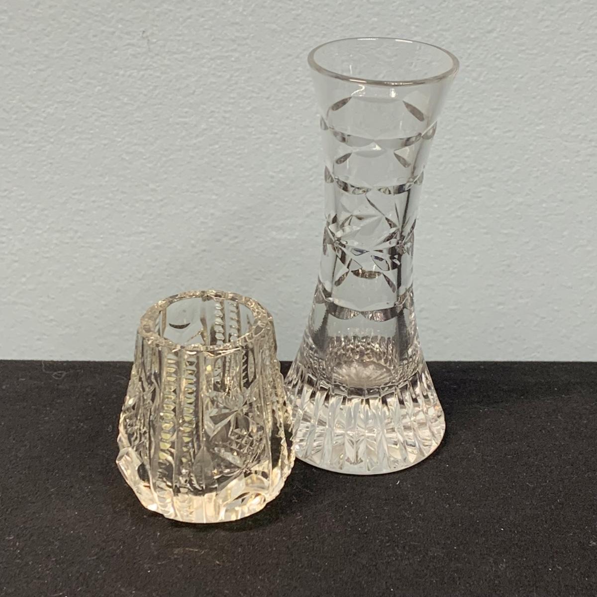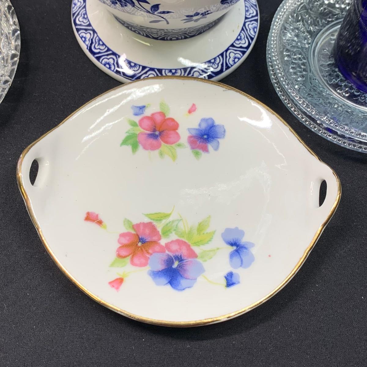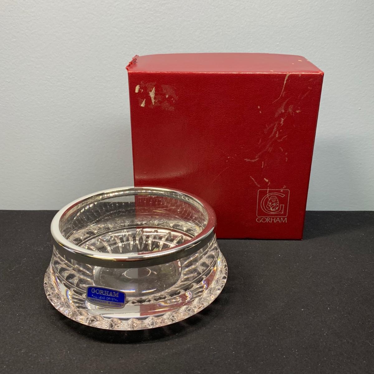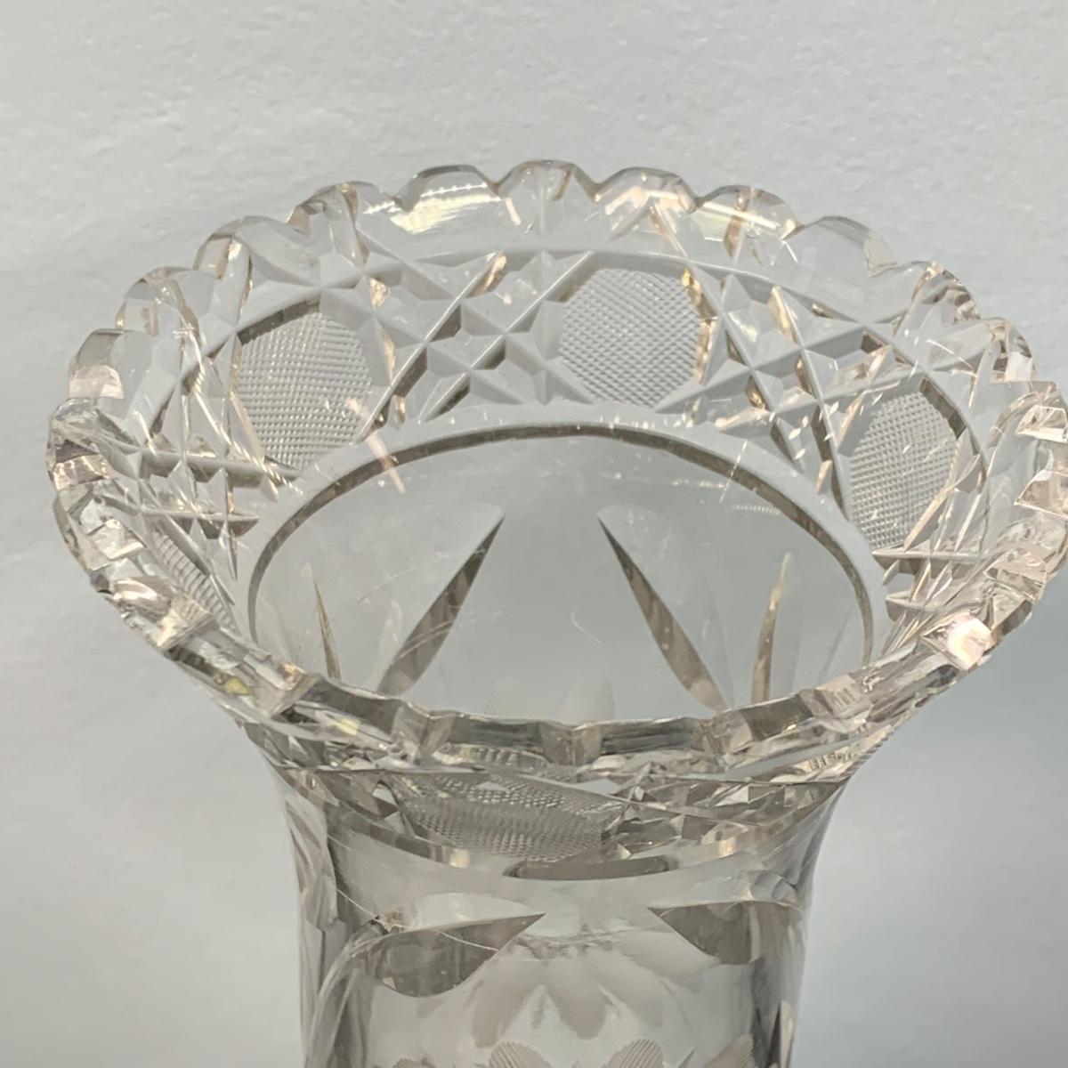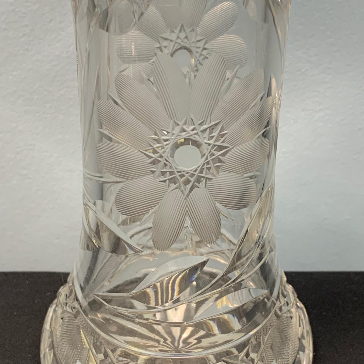 LOT 65: Blue Floral Coal Port Limited Edition Vase, Bohemia Crystal Pitcher, Gorham Cut Glass Bowl w/Silver Plate Rim & More